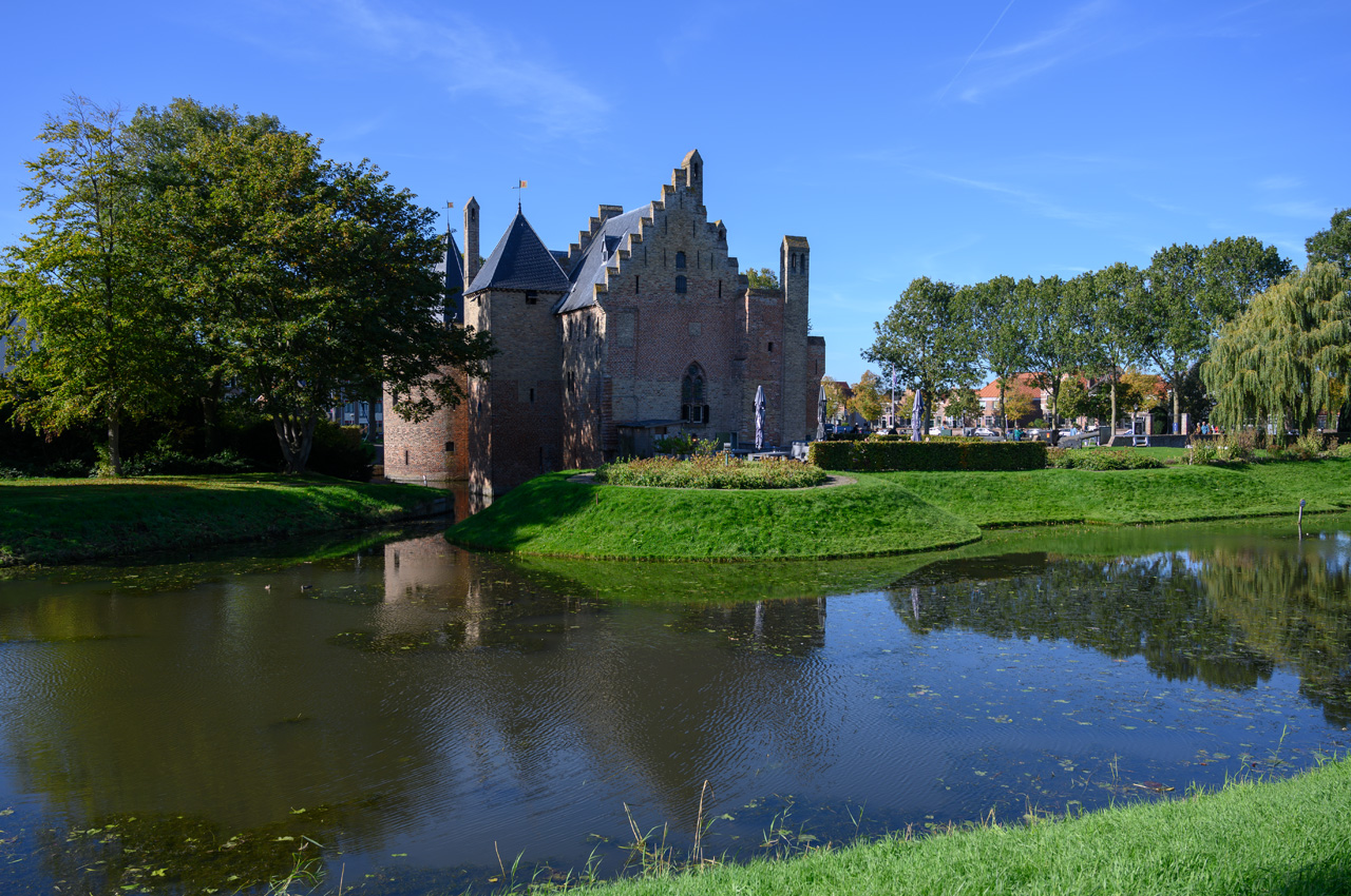 Wie vom Wetterbericht versprochen hat es heute am Morgen mal nicht geregnet und eine paar freche Sonnenstrahlen gab es auch. Ungewöhnlich war die Außentemperatur von 15°C für die Jahreszeit. Nach dem Frühstück habe ich den NIU ausgepackt und wir sind wieder zurück in die Niederlande nach Coervogen gefahren. Die 8 km waren schnell geschafft und wir haben unseren NIU am Marktplatz abgestellt. Etwas irritierend war, dass die Fußgängerzonen noch absolut leer waren und da ja auch Sonntag war, waren auch die Geschäfte geschlossen. Wir sind erst zu der Kirche Hervormde kerk Coevorden gegangen. Leider war sie verschlossen und kurioserweise fand auf dem Sonntag noch nicht einmal ein Gottesdienst statt. Nicht weit davon entfernt ist die St. Willibrord kerk. Hier bekamen wir die Gelegenheit auch das Innere der Kirche zu besichtigen. Über die nördliche Fußgängerzone sind wir dann zum Kastell Coevorden gelaufen. Ein sehr schönes Gebäude, leider aber mit abgeschnittener Historie, da das Gebäude als Hotell genutzt wird. Etwas weiter nördlich befindet sich der Van Heutsz Park. Eine Parkanlage, begrenzt durch im Zickzack verlaufende Wasserläufe. Besonders beeindruckend die extrem alten Laubbäume, mit teilweise sehr skurilen Formen. Ein sehr schöner Park. Südlich vom Marktplatz haben wir dann auch die Touristeninformation gefunden, die sogar heute geöffnet war.