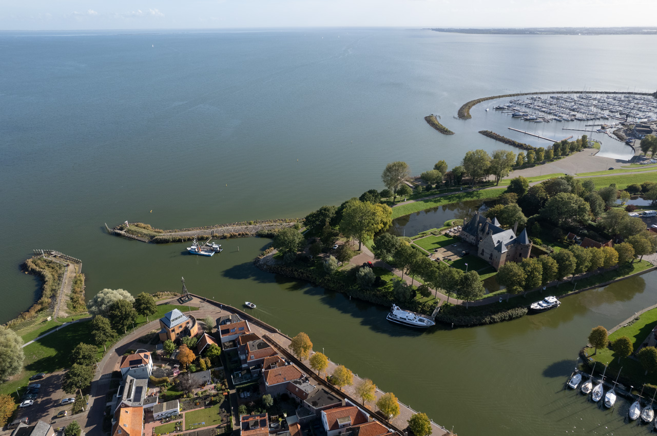 Unser Weg führte uns wieder durch typisch niederländische Landschaft, die wir so lieben. Ein besonderes Erlebnis war wieder eine Dammfahrt. Der Houtribdijk, auch bekannt als Markerwaarddeich wurde zwischen 1963 und 1976 errichtet und trennt das IJsselmeer vom Markermeer. Als Straße und Radweg verbindet der Damm mit 26km Straße die Städte Lelystad auf dem Flevopolder sowie Enkhuizen in der Provinz Nordholland. Die Siele und Schleusen, die sich jeweils an den Enden befinden, sind einfach gigantische Bauwerke.