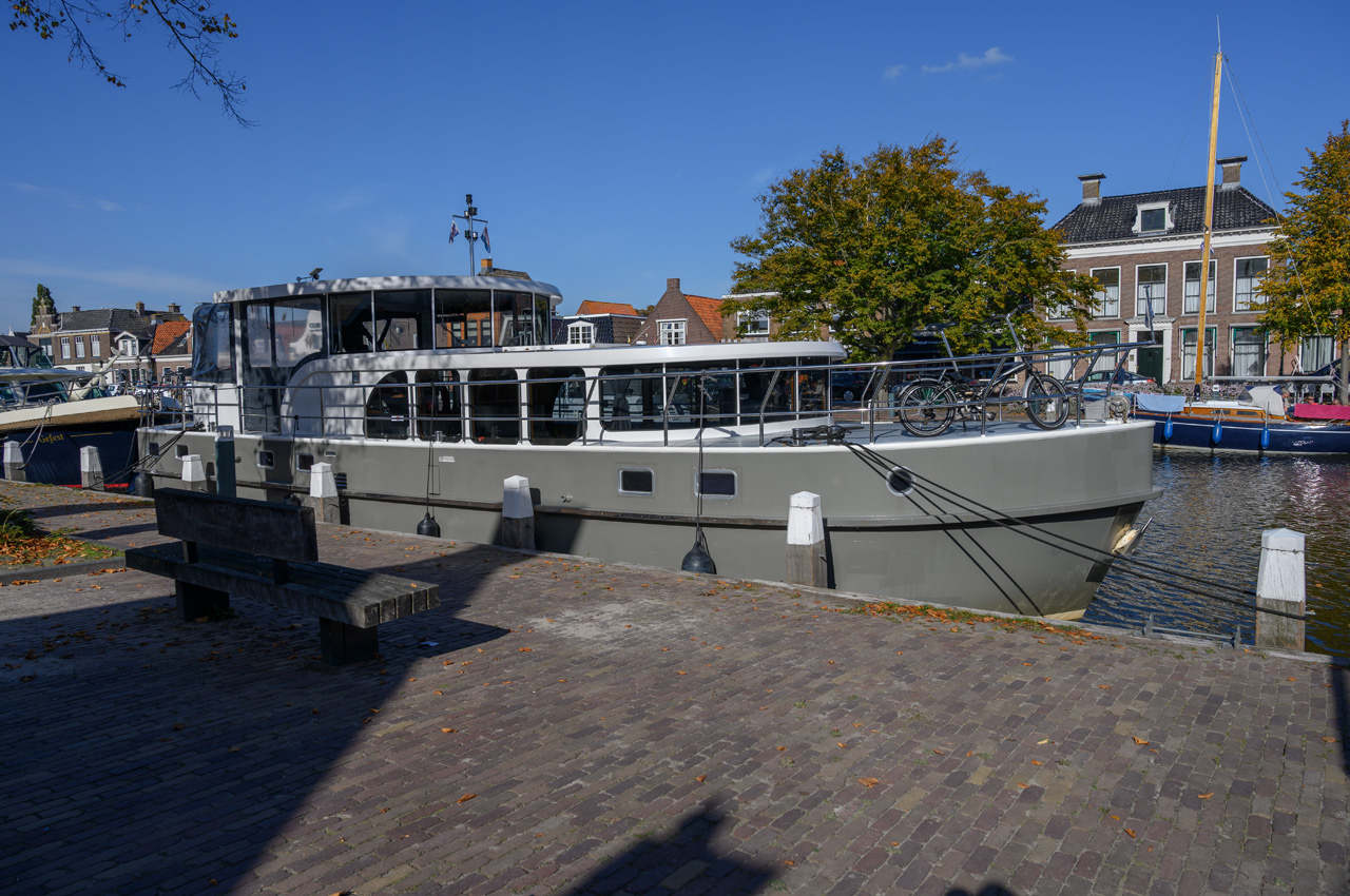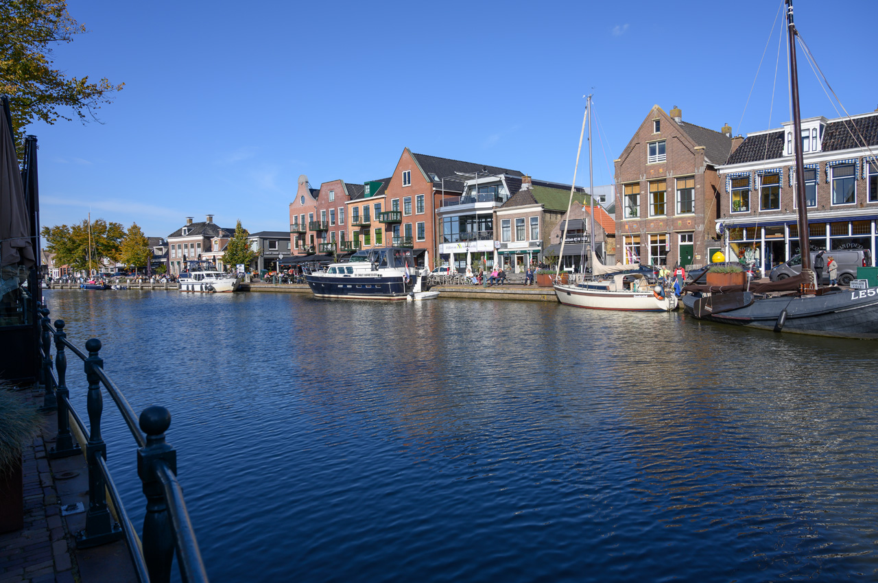 Nach unserem üblichen Zwischenkaffee gegen 12:00 Uhr sind wir dann in die Innenstadt aufgebrochen. Dort soll es auch einen ALDI geben, bei dem wir uns Brötchen holen wollen. Die Stadt hat uns sehr schnell begeistert. Mitten im Zentrum gibt es zwei große Yachthäfen, die nur durch eine Straße getrennt sind. Aber auch die Häuser rechts und links des Hafen vermitteln genau das Flair, das wir an den Niederlanden so lieben. An dem östlichen Yachthafen haben wir einen weiteren Stellplatz entdeckt. Im ALDI haben wir uns Frühstücksbrot gekauft und verschiedene Backwaren. Nachdem wir wieder am Womo ankamen haben wir den Hafenmeister aufgesucht. Jetzt war er auch da. Wir brauchten nur 60,-€ für drei Tage bezahlen.