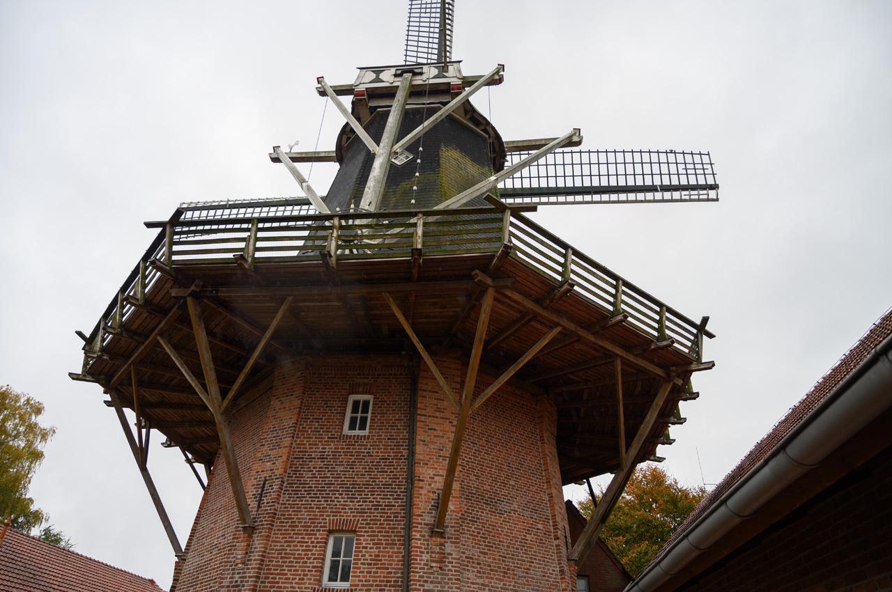 Nach dem üblichen Zwischenkaffee sind wir in den Ort gelaufen. Der Bäcker ist tatsächlich nur etwa 180 Meter entfernt und nicht viel weiter ist auch das ALDI. Das ist ja alles ganz schön, aber der Rest des Ortes reißt uns auch nicht vom Hocker. Das einzige Highlight ist die Mühle, die direkt neben dem Platz steht.
