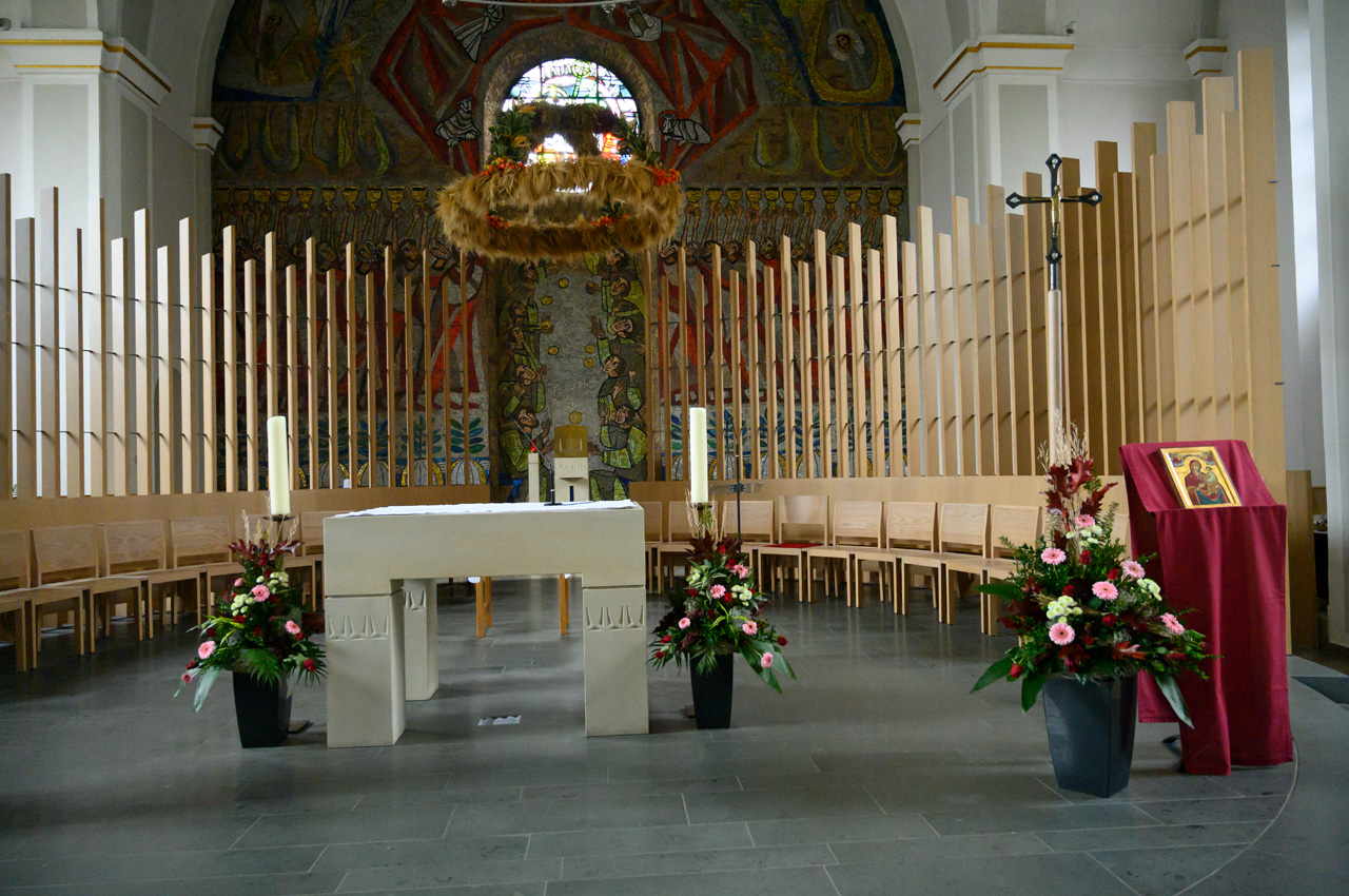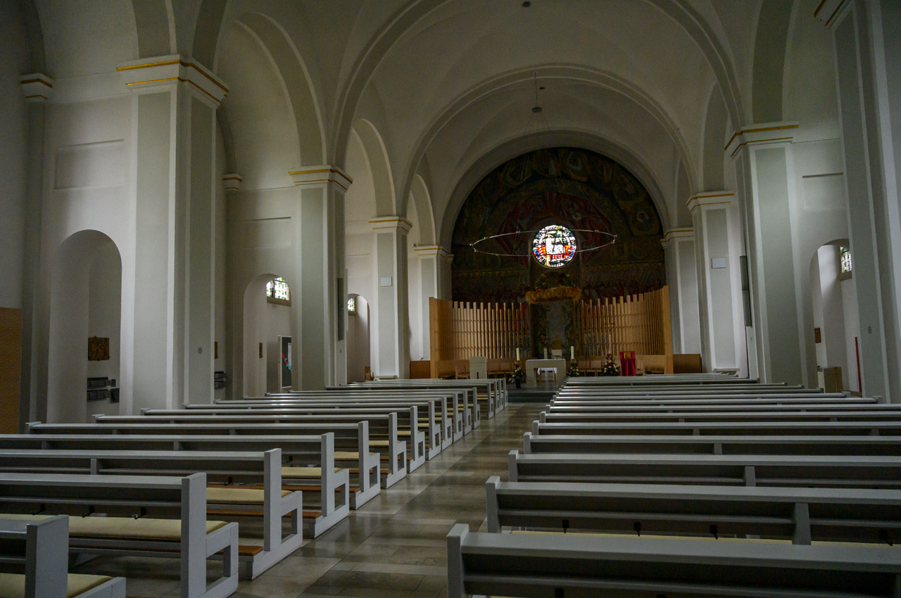 Gegen 16:00 Uhr hatte Susanne die Idee doch noch einnmal in die Stadt zu laufen. Sie meinte dort eine Postbank zu finden um Bargeld abzuheben. Das Rathaus ist ein modernes Gebäude, das ehemalige Einkaufszentrum steht fast leer und macht einen traurigen Eindruck. Es sieht so aus, als ob man es abreißen will. Die gegenüberliegende Kirche St. Sixtus war sogar offen, aber im Inneren stocke duster. Hier spart man offensichtlich schon Strom. Das haben wir auch bei vielen Geschäften beobachtet, viele haben keine Schaufensterbeleuchtung mehr an. Dieser Spaziergang hat unseren Eindruck allerdings auch nicht verbessert. Die Stadt ist im Vergleich zu den niederländischen Orten mit ihren historischen Altstadtbereichen ein echter Kulturschock.