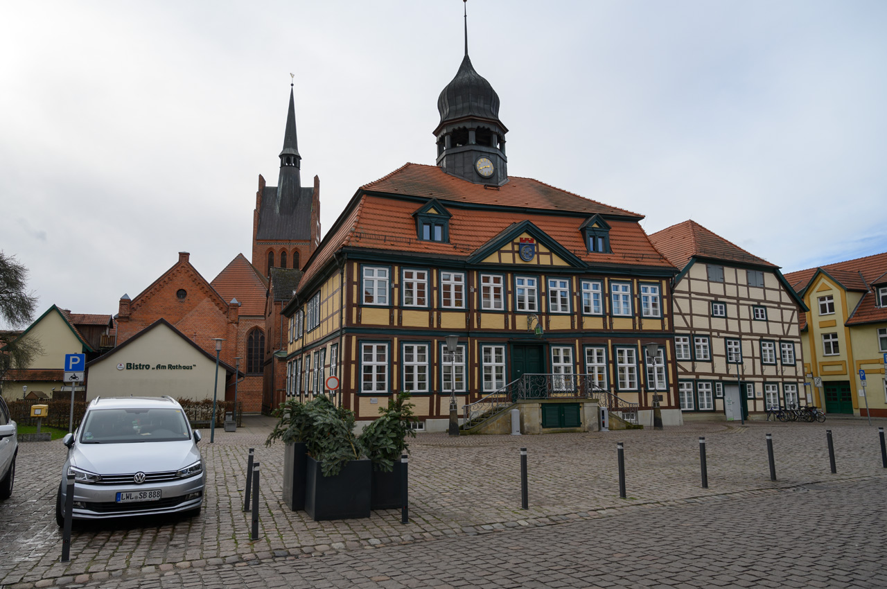 Unser Start zu Hause war reibungslos und verlief wie geplant. Auch die Abfahrt vom Abstellplatz verlief wie geplant, wir konnten sogar frostfrei Wasser bunkern. Unser Navi führte uns über Heiligengrabe, Pritzwalk von der A24 zur B5, die wir etwas nördlich von Pasewalk erreicht haben. Für das letzte Stück bis Grabow haben wir die A19 benutzt. In Grabow haben wir aus dem ALDI unseren Lebensmittelvorrat aufgestockt.