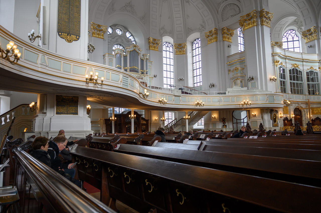 für unseren Spaziergang durch das Zentrum war der Weg das Ziel. Wir haben uns wieder begeistert an den schönen historischen Gebäuden mit den unterschiedlichsten Architekturstilen. Sehenswert sind auch einige alte Gebäude, die mit modernen An- bzw. Aufbauten versehen wurden. Das ist nach unserem Empfinden mal gut, mal weniger gut gelungen. Bevor wir in die St. Michaeliskirche gegangen sind, haben wir in dem gegenüberliegenden Café Am Michel, eine Tasse Kaffee getrunken und ein Stück Kuchen gegessen. Susanne musste auf Toilette und da passte es ganz gut. Die Kirche St. Michaelis ist eine sehr beeindruckende Kirche mit einer barocken Innenausstattung. Wir haben sie uns in 2017, fast zur gleichen Jahreszeit, angesehen!