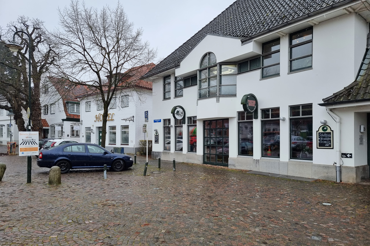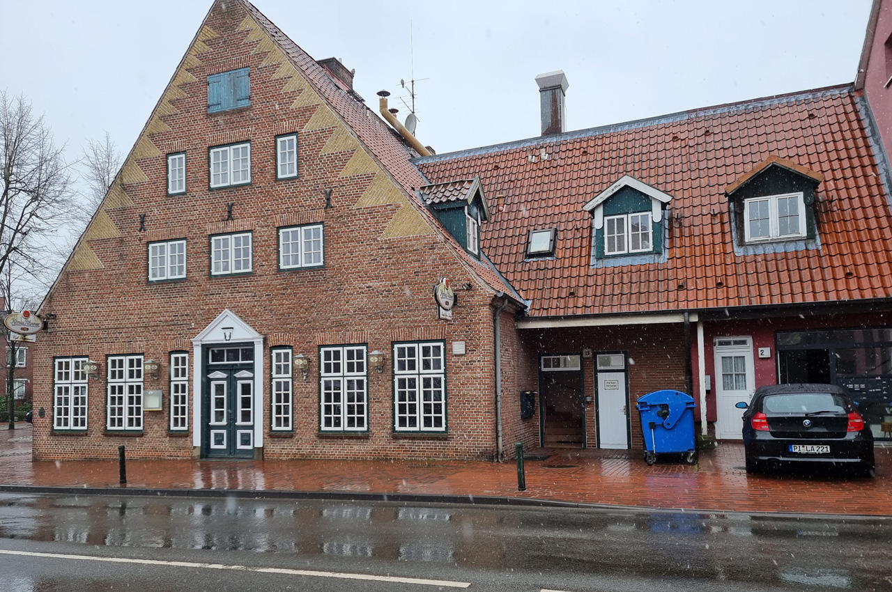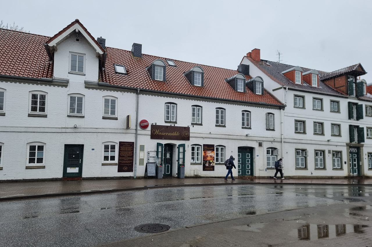 Wir haben einen ersten Spaziergang in den Ort gemacht, um nochmals nach dem Bäcker zu sehen, von dem ich morgen früh frische Brötchen holen werde. Dazwischen waren wir aber noch im EDEKA, Susanne brauchte gesalzene Butter. Auf dem Rückweg zum Womo haben wir in der Touristeninfo im Plattenhof aktuelle Unterlagen von Schleswig geholt.