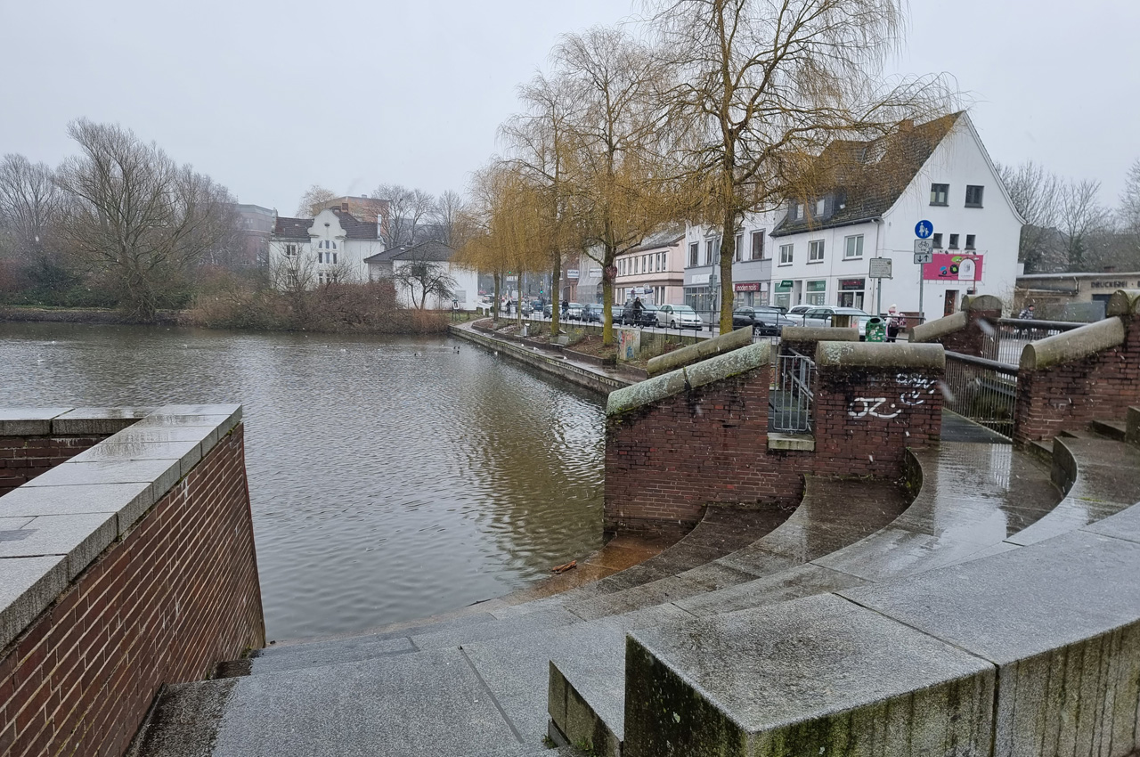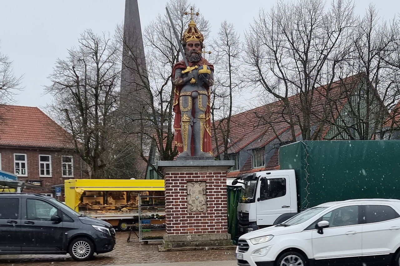 Heute lag eine leichte Schneedecke, die aber schon am Abtauen war. Ich habe wieder die leckeren Brötchen von Dallmeyer am EDEKA besorgt. Schon während des Frühstücks fing es wieder an zu schneien und der Wetterbericht gab keine Aussicht, dass es heute im Laufe des Tages besser werden sollte. Unser Spaziergang durch die Altstadt von Wedel stand unter keinem guten Stern. Susanne hatte wie zu erwarten, durch die Einnahme von Antibiotika, kräftigen Durchfall und wollte nicht so wirklich längere Zeit außerhalb vom Womo verbringen. Gegen Mittag bin ich darum alleine aufgebrochen. Das Schneien war gerade mal etwas moderat. Ich habe zum Fotografieren auch nur das Handy mitgenommen. Ich bin in die Altstadt gelaufen wo sich die Kirche und der Roland befinden. Die Kirche war sogar zugänglich. Sie hat eine sehr moderne Innengestaltung. Vorbei an der alten Wassermühle bin ich zum Bahnhof gelaufen und von das aus weiter in Richtung EDEKA. In der Apotheke kurz vor dem EDEKA habe ich für Susanne ein Mittel gegen den Durchfall besorgt und im ALDI Bananen. Ich bin dann weiter die Einkaufsstraße in Richtung Elbe gelaufen. Eigentlich wollte ich zum Welcome Höft, dass habe ich mir aber dann verkniffen, da durch den Bau einer Hochwasserschutzeinrichtung und einer großen Wohnungsbaustelle, ich fast bis zum Yachthafen hätten gehen müssen. Ich bin direkt quer durch den Freizeitpark Elbmarschen zurück zum Womo gelaufen. Ich hatte bei Ankunft dann auch fast 11.000 Schritte auf meiner Uhr.