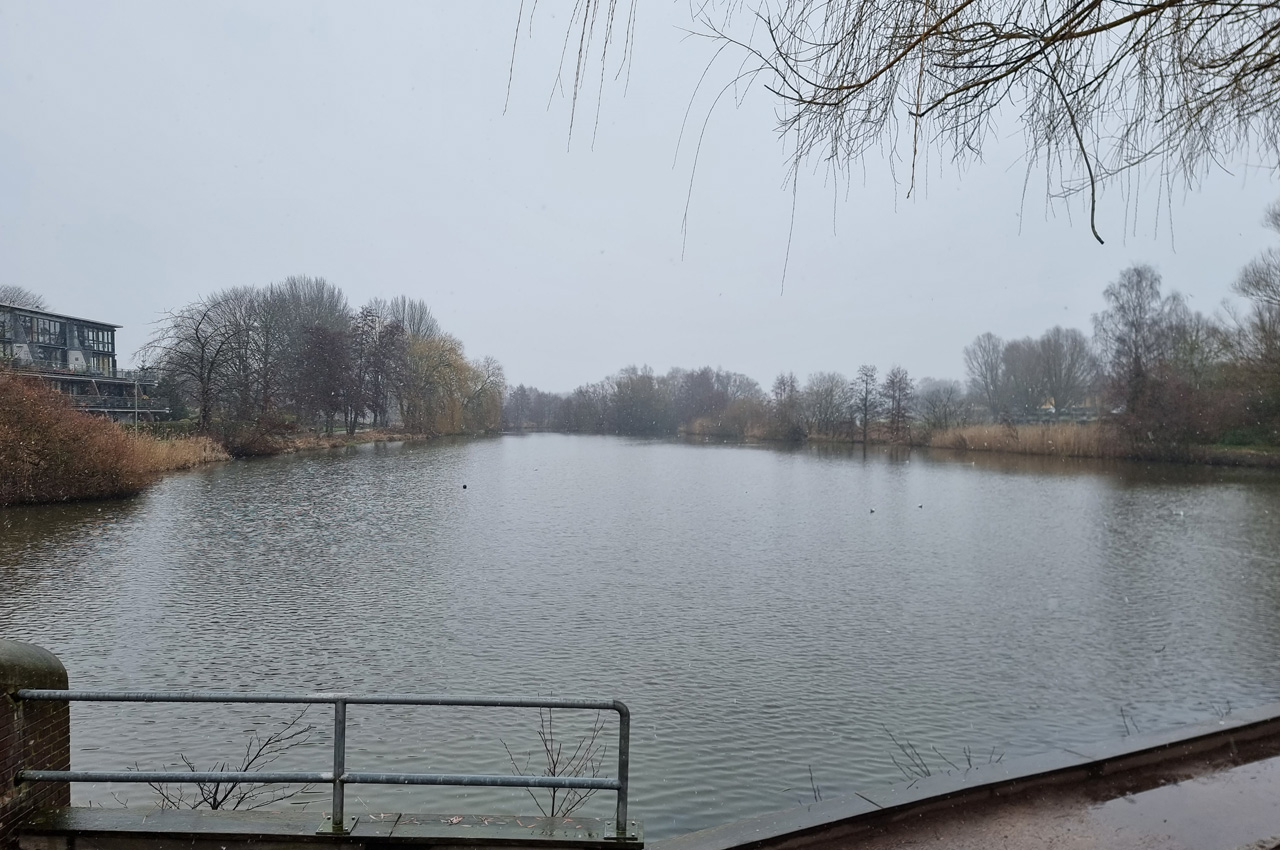 Auf dem Stellplatz angekommen haben wir unseren Zwischenkaffee genossen und sind dann in das EDEKA gelaufen. Susanne wollte Mayonnaise besorgen, um uns noch einmal Eiersalat zu machen. Ich habe Susanne im Womo noch kurz geholfen die Sachen zu verstauen, dann bin ich nochmal zu einem Spaziergang aufgebrochen. Ich bin zu dem Kalkberg an der Festwiese gelaufen. Neben der interessanten Natur, man kommt sich in dem ehemaligen Kalkbruch vor wie in der sächsischen Schweiz, habe ich eine interessante Entdeckung gemacht. In dem Kalkbruch gibt es am Boden einige Risse, in denen sich Wasser staut. In zwei dieser Ritzen habe ich Molche entdeckt. Hierher muss ich unbedingt nochmal mit der GoPro kommen. Von dem Gipfel des Kalkberges, man kann ihn nur über viele Treppenstufen erklimmen, hat man einen tollen Ausblick auf Lüneburg. Kurz bevor ich wieder beim Womo war, fing es an zu schneien und das mit richtig großen Flocken.