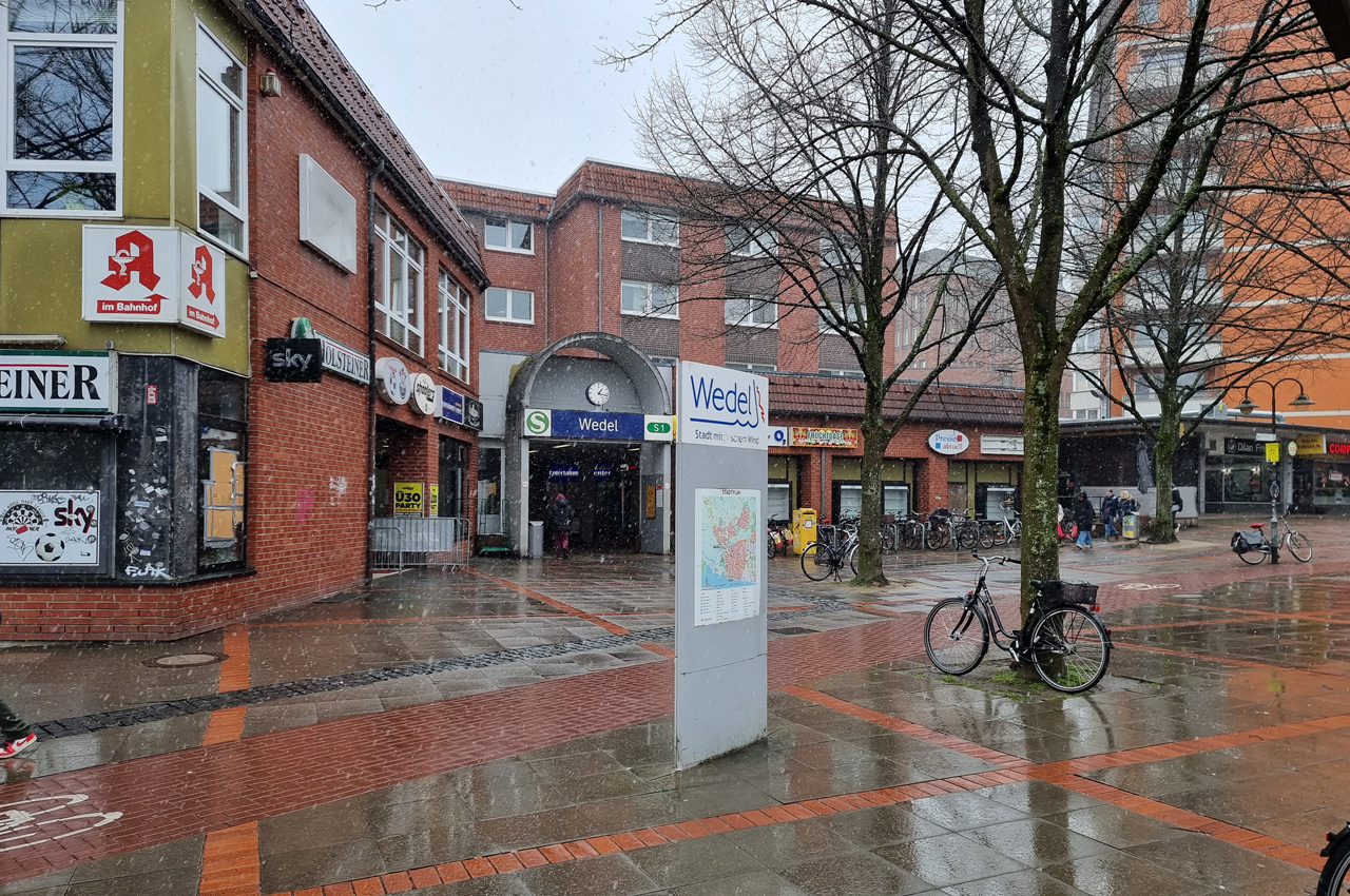 Nun ging es mit der S-Bahn wieder zurück nach Wedel. Bevor wir zum Womo gegangen sind, haben wir uns beim EDEKA Bäcker für den zweiten Kaffee zwei Franzbrötchen gekauft.