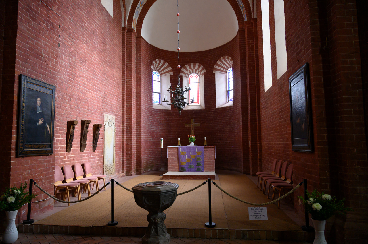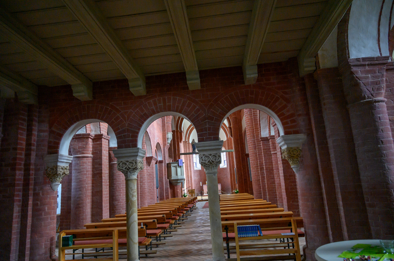 Gegen Mittag sind wir zum Holm gelaufen, die Fischersiedlung von Schleswig. Eine sehr romantische Ecke, weil rund um den zentralen Platz, sich die kleinen historischen Fischerhäuser befinden. Der Platz ist ein Friedhof der sogenannten Holmer Beliebung, eine Gilde die schon 1650 von den Fischern gegründet wurde und noch heute exisitiert. Am Ostende des Holmens befindet sich das ehemalige St.-Johannis-Kloster, eine der am besten erhaltenen mittelalterlichen Klosteranlagen von Schleswig-Holstein. Leider war die Klosterkirche nicht zugänglich, aber durch einen Zufall hatte ich die Möglichkeit den Remter zu betreten, da jemand seine Musikinstrumente abgeholt hat.