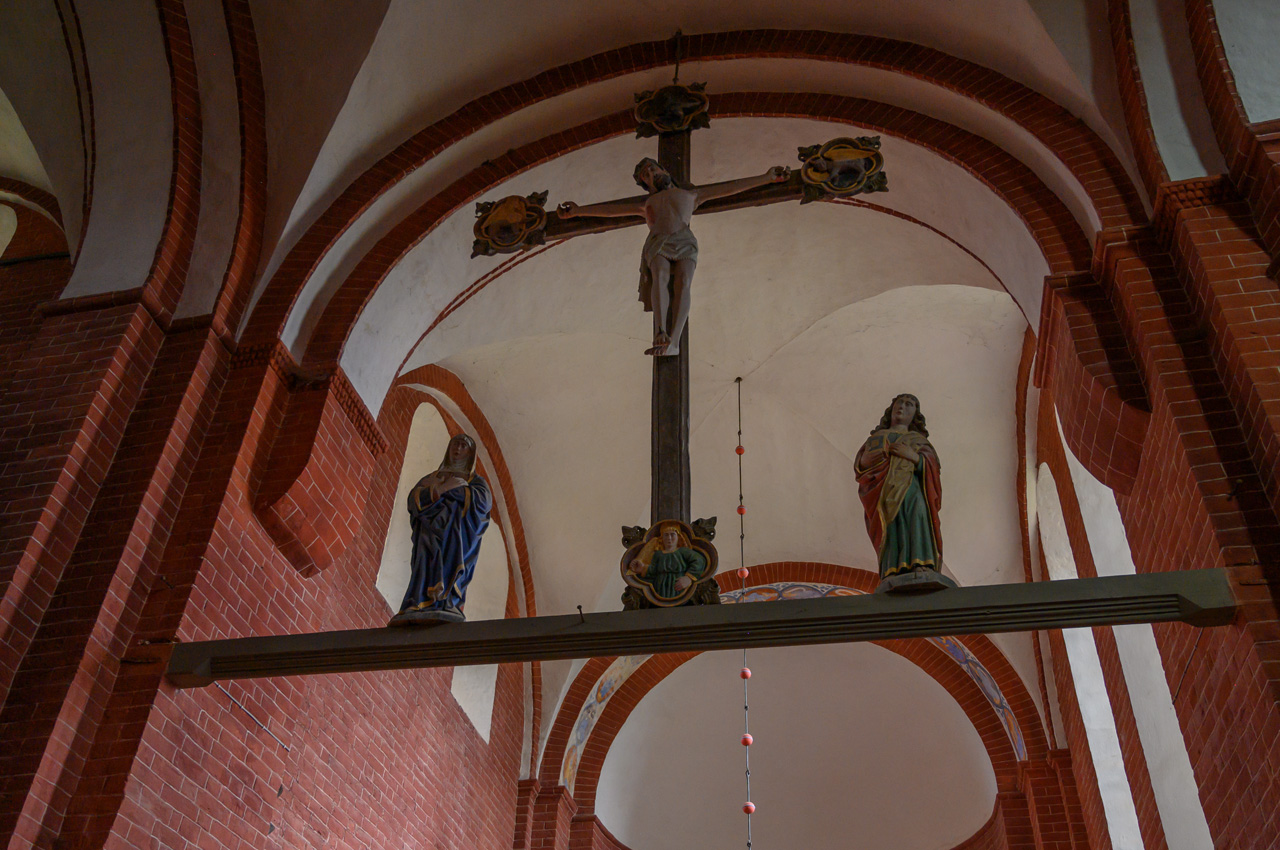10:28 Uhr starteten wir mit dem Bus der Linie 12 in die Innenstadt von Lübeck. Wir sind am Heiligen-Geist-Hospital ausgestiegen und von da aus die Königsstraße gelaufen, vor bei am Willy Brandt Haus bis zur Mühlenstraße. Von da aus schräg durch, vorbei am Palais Rantzau steht man schon fast vor dem Zeughaus an das im Süden der Dom angrenzt. Den Dom betritte man aus dem sogenannten Paradies, einem representativen Vorbau an der Nordseite des Domes. Beeindruckend ist sofort die typische Deckenhöhe solcher großen Kirchen, umgesetzt aber in romanischem Architekturstil. Eine Besonderheit dieses Domes ist der im gotischen Stil angesetzte große Chor, der den ursprünglichen, weitaus kleineren Chor, umschließt. In diesem Chor befindet sich auch die Gruft der Herzöge von Schleswig-Gottorf-Holstein. Dieser Chor ist so riesig in seinen Ausmaßen, dass man sich darin etwas verloren vorkommt. Die eingezogenen Segeltücher dämpfen dieses Gefühl etwas. Im zentralen Punkt des Chores befindet sich das Grabmal des Bischofs Heinrich v. Bocholt. Leider ist durch die Zerstörung des Domes im zweiten Weltkrieg viel von der historischen Ausstattung des Chores verloren gegangen. Faszienierend ist dabei sowieso, dass bei dem Grad der Zerstörung, von dem Dom standen nur noch die Außenwände, speziell der Lettner mit der Uhr erhalten geblieben ist und das riesige Holzkreuz mit der Jesusfigur, das sogenannte Triumpfkreuz. Beides ist von handwerklich unschätzbarem Wert. Auffällig sind auch die vielen Seitenkapellen, speziell an der Südseite des Langschiffes, die ausnahmslos Grabkapellen sind. Hier liegen viele adlige aus dem Schleswig-Holsteinischen Umfeld und von Lübeck selbst. Obwohl wir uns den Dom bereits ein zweites mal angesehen haben, waren wir wieder aufs Neue beeindruckt. Schade, dass der Kreuzgang nicht zugänglich ist, er wird von dem Naturkundemuseum mitgenutzt.