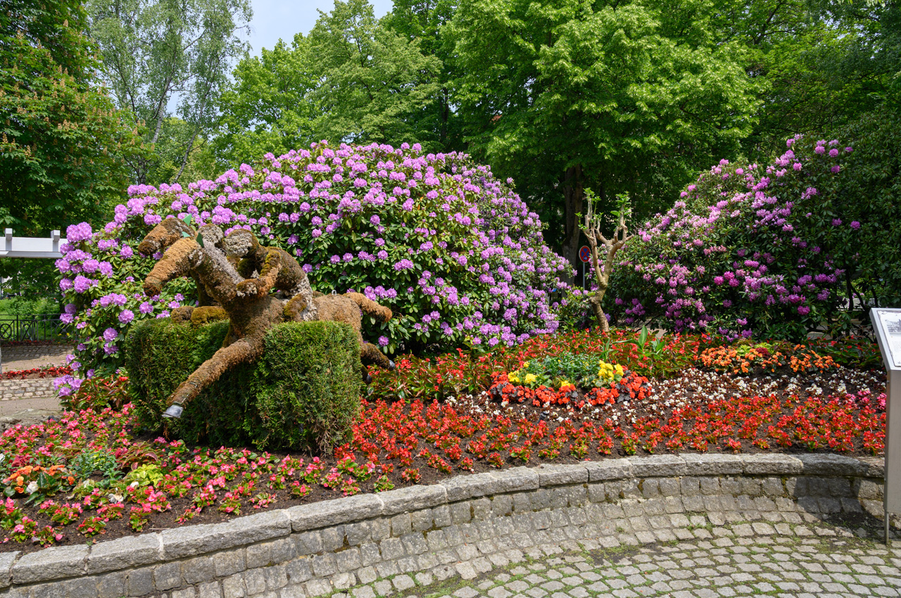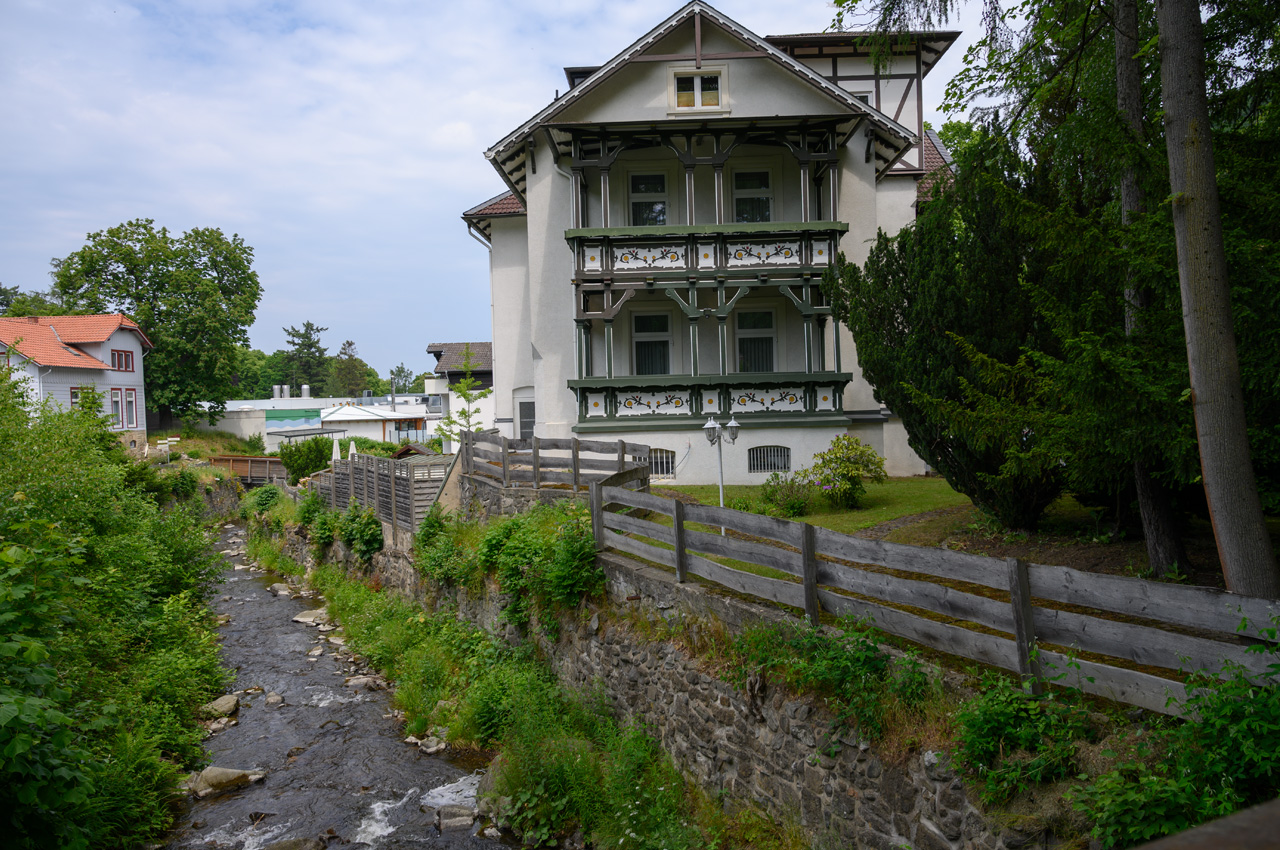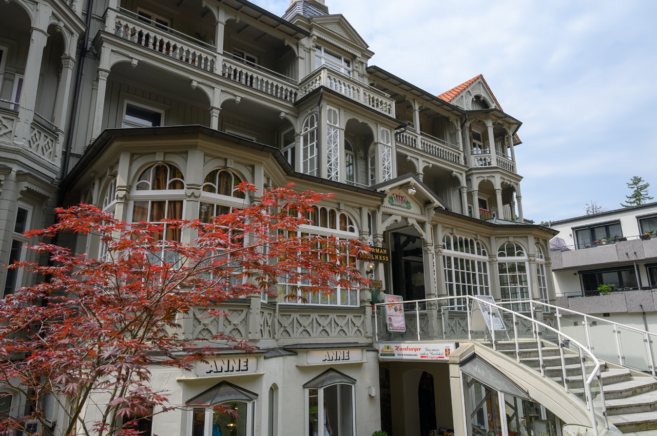 Nachdem wir uns mit dem Platz vertraut gemacht haben und unseren Zwischenkaffee getrunken haben, sind wir in Richtung Kurpark aufgebrochen. Nur ca. 200 Meter vom Stellplatz entfernt befindet sich die Touristeninfo. Hier hat Susanne unseren Stellplatzbeleg vorgelegt und daraufhin haben sie uns eine Gästekarte ausgestellt, mit der man die öffentlichen Verkehrsmittel kostenlos benutzen kann. Unmittel bar hinter der Touristeninfo beginnt der Kurpark. Wenn man den ca. 500 Meter durchläuft, landet man direkt in der Fußgängerzone von Bad Harzburg. Diese Fußgängerzone ist mal ganz anders, sie ähnelt eher einer Parkallee mit Geschäften und nennt sich darum auch Bummelallee. Wir haben uns schon im Kurpark für den Ort begeistert, was sich in der Fuzo noch steigert. Alles sehr gepflegt und toll gestaltet. Der Tourist scheint überall wichtig zu sein und offensichtlich schätzt er es auch, der Ort ist richtig quirlig. Auf dem Rückweg haben wir ein leckeres Eis gegessen. Die Wandelhalle schließt leider schon ab 14:00 Uhr, wir konnten sie uns nur von außen ansehen.