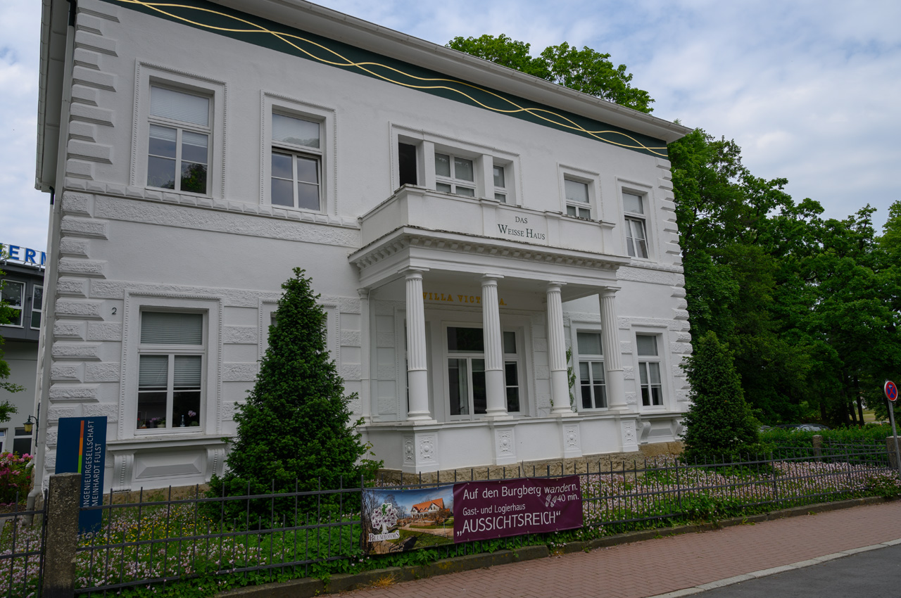 Wieder ein Frühstück mit aufgebackenen Brötchen und trotzdem lecker. Über Nacht hatte es sich merklich abgekühlt, das Termometer verriet uns eine Aßentemperatur von 16°C. Wir haben uns darum erst mal im Womo beschäftigt. Gegen 11:30 Uhr habe ich mich auf den Weg gemacht zu einer Wanderung. Susanne wollte es sich im bzw. vor dem Womo gemütlich machen. Sie muss aufpassen, dass sie ihre Kniee nicht überfordert. Mein Ziel war der Büraberg mit der auf dem Gipfel befindlichen Ruine der Büraburg. Entlang der Elde stromaufwärts führte mein Weg bis zum Stauwerk. Ich war gestern schon hier, allerdings auf der anderen Seite. Aus der Sicht die ich jetzt habe verstehe ich auch, das Stauwehr und wie die Eder fließt. Hier gibt es am Rande des Wehrs eine Spirale, die durch das durchfließende Wasser zur Drehung gebracht wird, wodurch über einen Generatur Strom erzeugt wird. Damit sollen mehr als 140 Haushalte mit Strom versorgt werden. So etwas habe ich in der Form noch nie gesehen. Der Vorteil dieser Turbinenanlage liegt bei den Fischen, die ungehindert die Einrichtung durchschwimmen können. Nach dem Überqueren der Eisenbahn und der Straße, begann der Aufstieg auf den Büraberg. Es ging durch einen dichten Laubwald mit mehreren seitlichen Taleinschnitten. Das erste Prozessionshäuschen kündigte die Pilgerkirche auf dem Bergplateau an. Die Kirche war natürlich verschlossen. Der Friedhof wird noch von der Gemeinde genutz, es gibt auch sehr frische Gräber. Von dem Ortsteil Ungedankt von Fritzlar, führt eine Straße hier hoch. Die habe ich dann auch für den Abstieg in den Ortsteil Ungedankt benutzt. Von der ehemaligen Büraburg gibt es nur noch ein Stück von der Außenmauer, nichts aufregendes. In dem Ort Ungedankt, gibt es sehr schöne, moderne Einfamilienhäuser mit tollen Ausblick in das Edertal. Dabei kam mir der Gedanke, was würde man den Menschen eigentlich antun, wie teilweise bereits laut angedacht, den Bau von Einfamilienhäuser aus Umweltgründen zu verbieten. Unten angekommen im Ort habe ich entlang der Bahnstrecke den Heimweg begonnen. Wieder vorbei am Stauwehr ging es dann zurück zum Womo. Jetzt hatte ich ca. 13000 Schritte auf meiner Fitnesuhr und es ging mir so richtig gut, Susanne aber wohl auch. Es war nun auch Zeit für unseren Nachmittagskaffee. Vorher gab es noch eine nette Plauderei mit unseren Nachbarn. Sie haben zwei Australien Shepherd Hunde und eine Maine-Coon-Katze. Da gab es viel auszutauschen, zumal die Hündin von den Australien Shepherd Hunden aus Brieselang stammt.