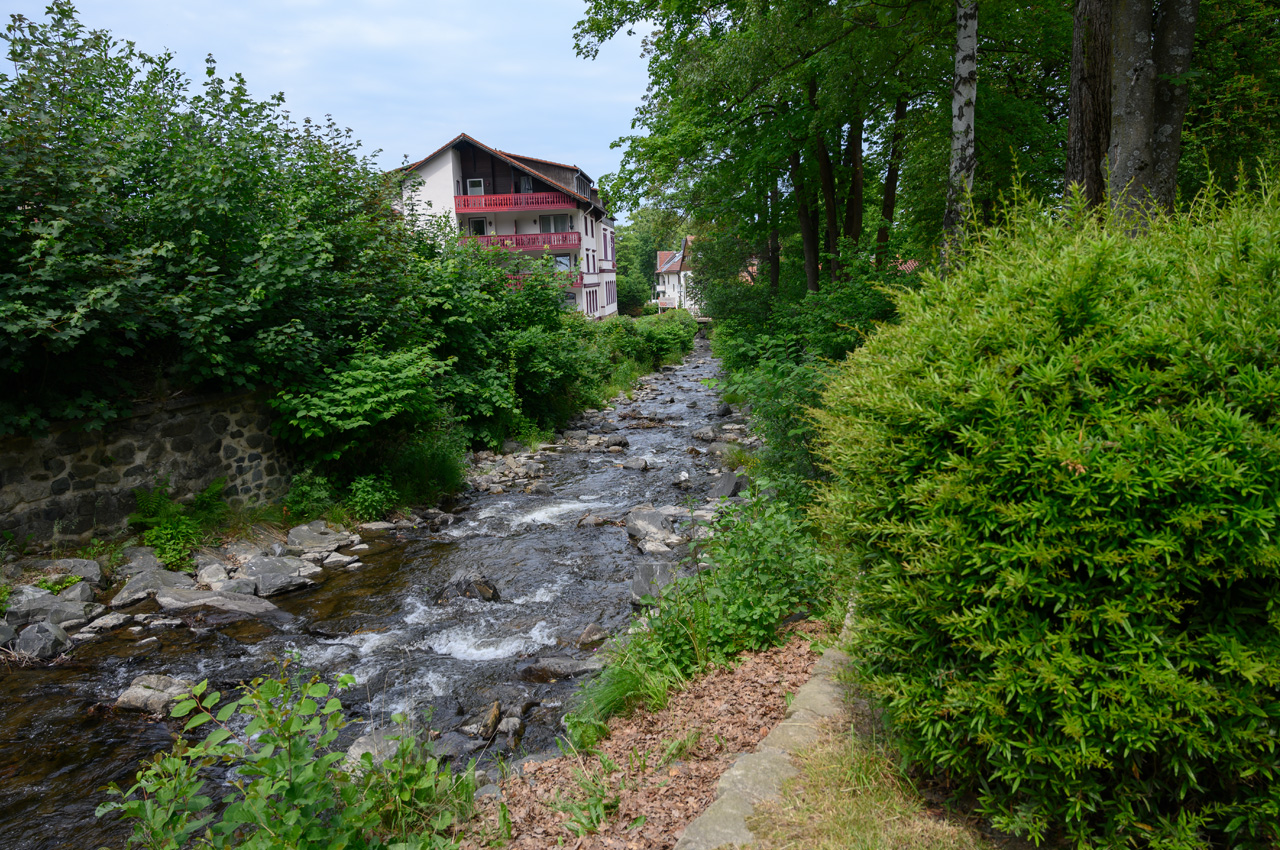 Kurz vor dem Abendbrot habe ich alleine noch einen kleinen Spaziergang in Richtung Braunlage gemacht. Im Wald bin ich anscheinend irgendwo falsch abgebogen. Der Weg wurde imm schmaler und ging durch eine Brennesselwiese entlang an einem Grundstück, endete dann aber wieder auf der erhofften Straße. Allerdings gab es weder rechts noch links von der Straße einen Gehweg. Es war aber glücklicher Weise nur ein kurzes Stück zu dem großen Parkplatz des Baumwipfelpfades, von dem aus ich den Stellplatz wieder erreicht habe.