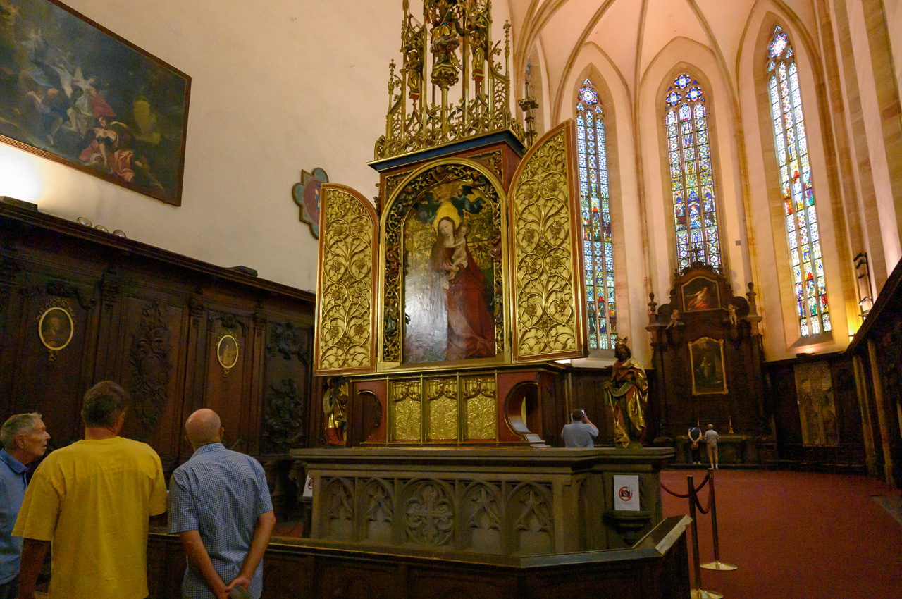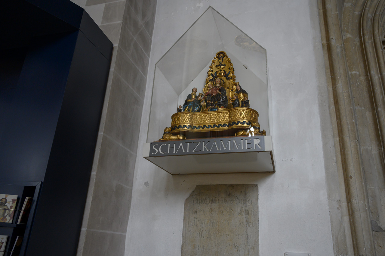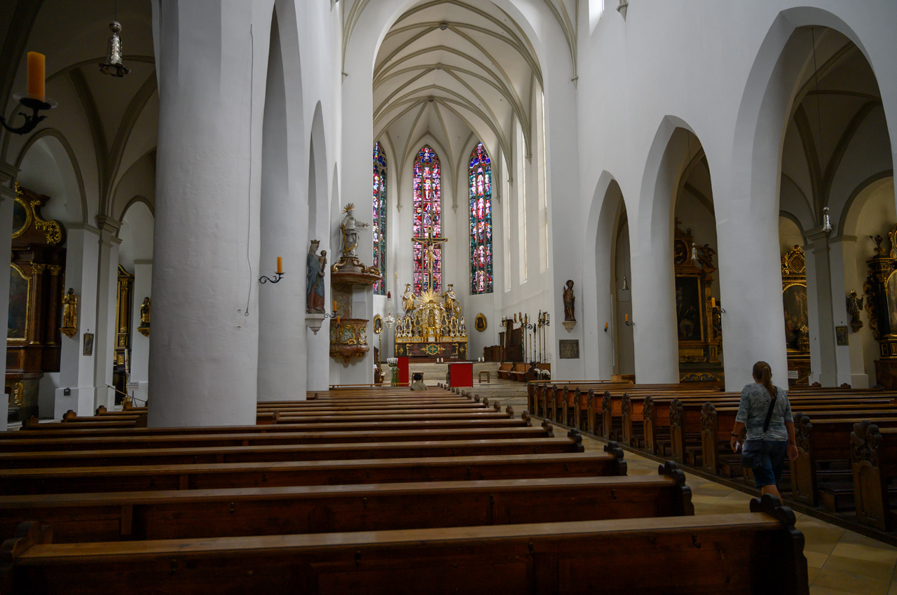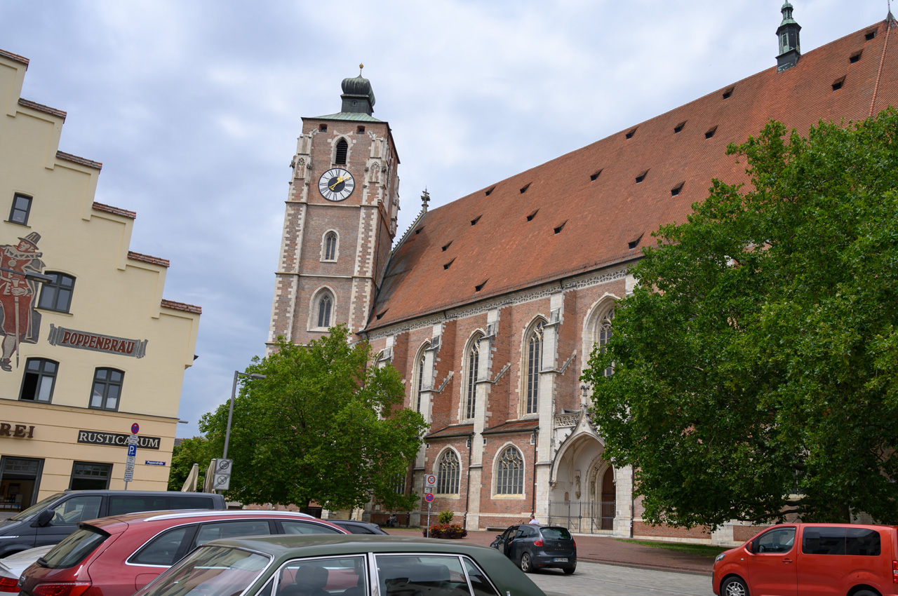 Nach einem gemütlichen Zwischenkaffee, es hat in der Zwischenzeit geregnet, sind wir zu einem ersten Ausflug in die Altstadt gelaufen. Wir konnten uns schon mal das Liebfrauenmünster ansehen. In der südwestlichen Turmhalle befindet sich sogar ein Raum mit den Schätzen des Münsters, die man sich ohne Eintritt zu zahlen ansehen kann. Das Liebfrauenmünster ist ein extrem hohes Gebäude mit einem großen Mittelschiff und ebenso großen Seitenschiffen. Man kommt sich ob der Größe dieses Gebäudes etwas verloren darin vor. Weiter durch die Fußgängerzone sind wir zum Rathaus gelaufen, hier befindet sich die Touristeninformation, die aber leider an Montagen geschlossen hat. Das finden wir für so eine Stadt wie Ingolstadt eigentlich sehr dürftig. Am Rathausplatz haben wir uns dann gleich noch die St. Moritz Kirche angesehen. Um die mussten wir allerdings erst einmal fast komplett herumlaufen, um den Eingang zu finden. Danach sind wir zurück zum Womo gelaufen.