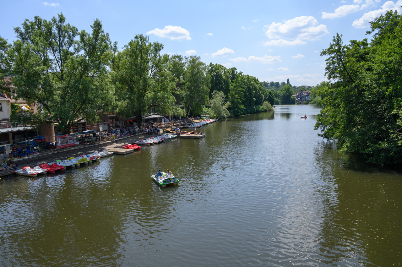 Unser Navi führte uns ostwerts auf die A9 und auf der sind wir bis Triptis geblieben. Von da aus ging es nordöstlich über die B2 nach Gera. Teilweise sehr schmale Straßen, aber in gutem Zustand. Der Stellplatz in Gera war gut ausgeschildert, obwohl wir laut Eigentümerin von der falschen Seite gekommen sind. Der Platz war fast leer, also wir konnten uns wieder einen für uns passenden auswählen. Der Platz macht einen guten Eindruck, es ist alles da was wir brauchen,gut gestaltet und gepflegt. Die Eigentümerin war sehr zugänglich und hat sich viel Zeit genommen uns Informationen über Gera zu geben.