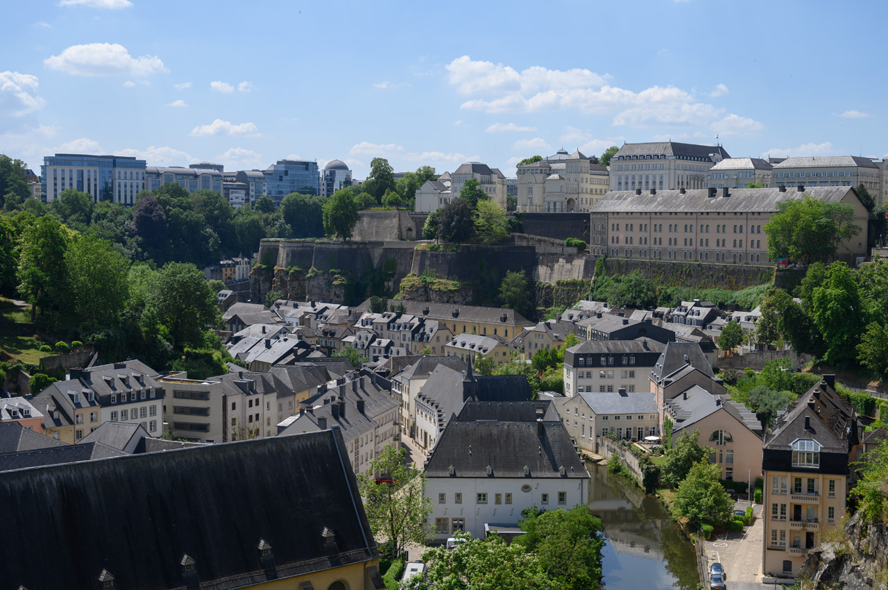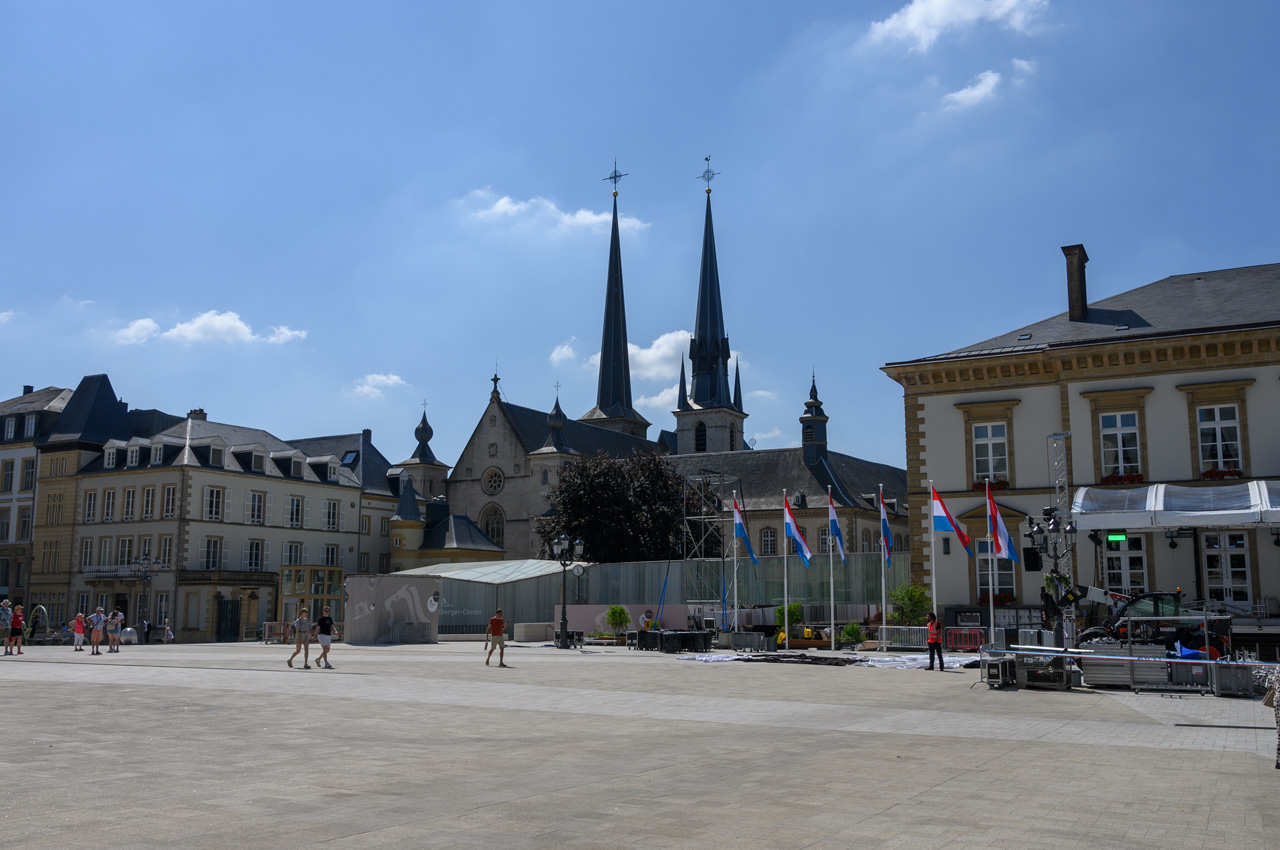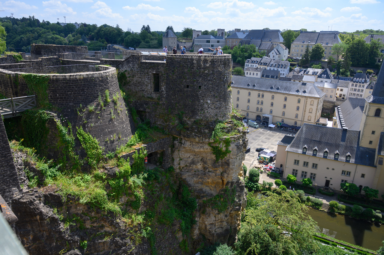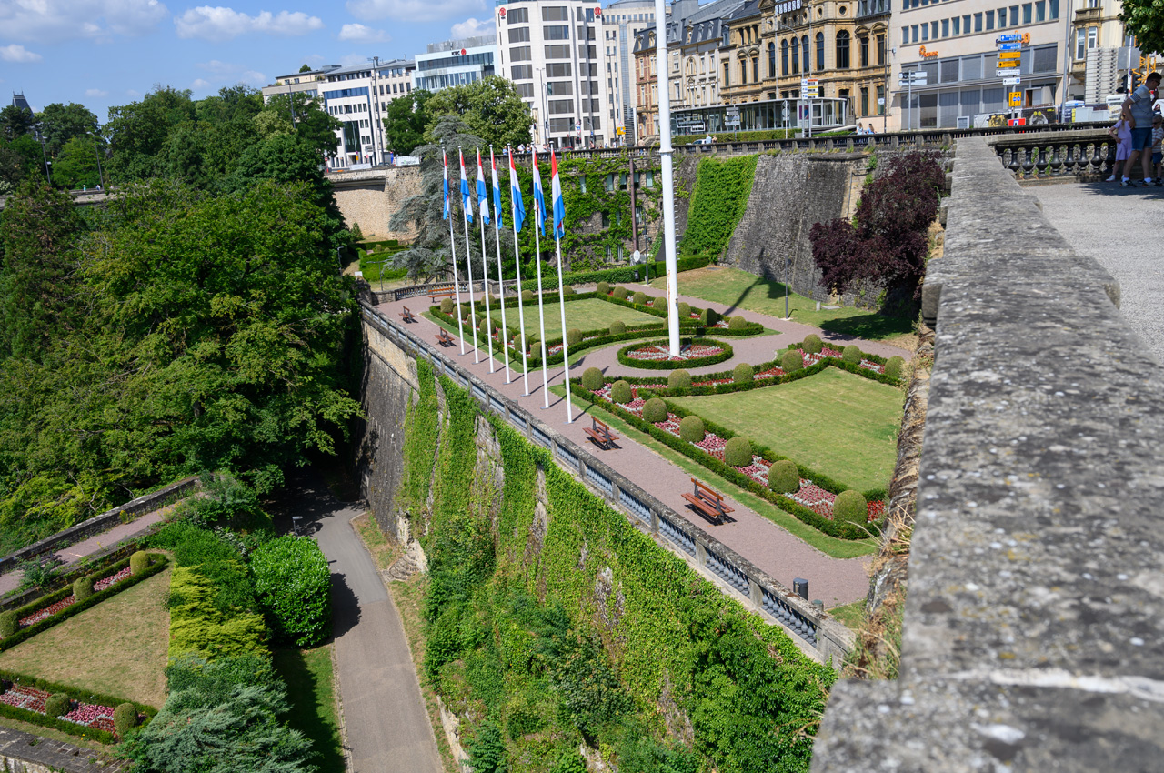 So etwas darf eigentlich nicht passieren. Beim Bäcker gab es um 09:00 Uhr schon keine Brötchen mehr. Baguett, was sie noch im Angebot hatten, hatten wir aber selbst noch im Womo. Also bin ich heute ohne Brötchen zurückgekehrt. Das Frühstück war trotzdem sehr gut. Über Nacht hat es sich merklich abgekühlt und es wehte ein schon fast kühler Wind. Das war sehr angenehm und gut für unsere nächste Stadtrunde. Wir sind wieder mit Bus und Straßenbahn in die Oberstadt gefahren, dieses mal mit der GoPro-Ausstattung. Wir sind wieder über den Place Guillaume II gelaufen, vorbei am Rathaus und dem Reiterstandbild von Kaiser Wilhelm dem II. Danach waren wir am Palais Grand-Ducal, dem Großherzoglichen Palast, der Residenz und der Abgeordneten Kammer. Weiter ging es dann zur Michaelskirche, die wir auch bei der ersten Tour uns schon angesehen haben. Kurz dahinter haben wir die verschiedenen Ausblickmöglichkeiten auf den Stadtteil Grund und der Abtei Neumünster. Von hier aus sind wir in die Casemates du Bock, die Kasematten der Stadt Luxemburg gegangen. Das hat Susanne mir zur Liebe auf sich genommen, weil es schon wieder viele Treppen zu überwinden galt. War aber auch sehr interessant, hatte man doch von den vielen Öffnungen nach draußen nochmals andere Einblicke auf Grund und auf das Pfaffenthal. Wieder am Tageslicht angekommen sind wir nun zurück zum Großherzöglichen Palaise gelaufen, dieses mal von hinten durch die kleinen Gassen. Weiter ging es dann zur Michaelskirche, die wir auch bei der ersten Tour uns schon angesehen haben. Man durfte trotzdem in das Innere der Kirche, es war nur ein kleiner Bereich um den Chor abgesperrt. Der Pastor hätte sein Geld auch mit seinem Gesang verdienen können, er hatte eine ausgesprochen tolle Stimme. Dieses mal war ich auch in der Krypta dieser Kirche, die auch sehr sehenswert ist. Susanne hat vor der Kirche gewartet, weil es hier schon wieder viele Treppenstufen zu überwinden gab. Wenn man den Hinterausgang benutzt, ist man schon fast auf dem Place de la Constitution, Platz der Verfassung. Hier haben wir nochmals die Gëlle Fra bewundert und die Ausblicke in das Petrustal genossen. Hier haben wir eine längere Pause gemacht, weil wir mit Vivien-Sara telefoniert haben. Sie hat uns von der gestrigen Grundstücksbesichtigung mit Angelika und Andreas in Caputh berichtet und uns zu unserer Meinung über das Projekt gefragt. Weiter ging es nun zur Straßenbahnhaltestelle und zwar sind wir mit ihr mal in entgegengesetzte Richtung gefahren. Wir wollten Sightseeing mit der Straßenbahn machen. Wir haben dadurch mal den modernen Bereich von Luxemburg (Stadt) gesehen. Hier befinden sich ausschließlich moderne Gebäude wie die Universität, ein Europaparlementsgebäude und eine Philharmonie. Das war sehr bequem für uns und da das Straßenbahnfahren nichts kostet, auch noch sehr preiswert. Zurück sind wir dieses mal auch nicht am Bahnhof ausgestiegen, sondern an der Endhaltestelle der Straßenbahn, das ist auch nur zwei Haltestellen weiter. Hier konnten wir ganz bequem in den Bus 511 einsteigen, ohne den ganzen Bahnhof überqueren zu müssen. Das war ein schöner Abschiedstag von Luxemburg.
