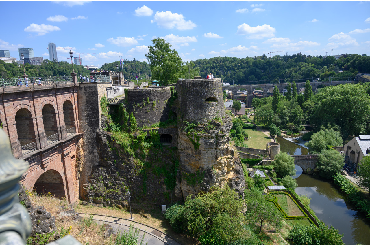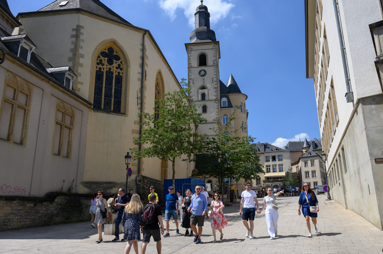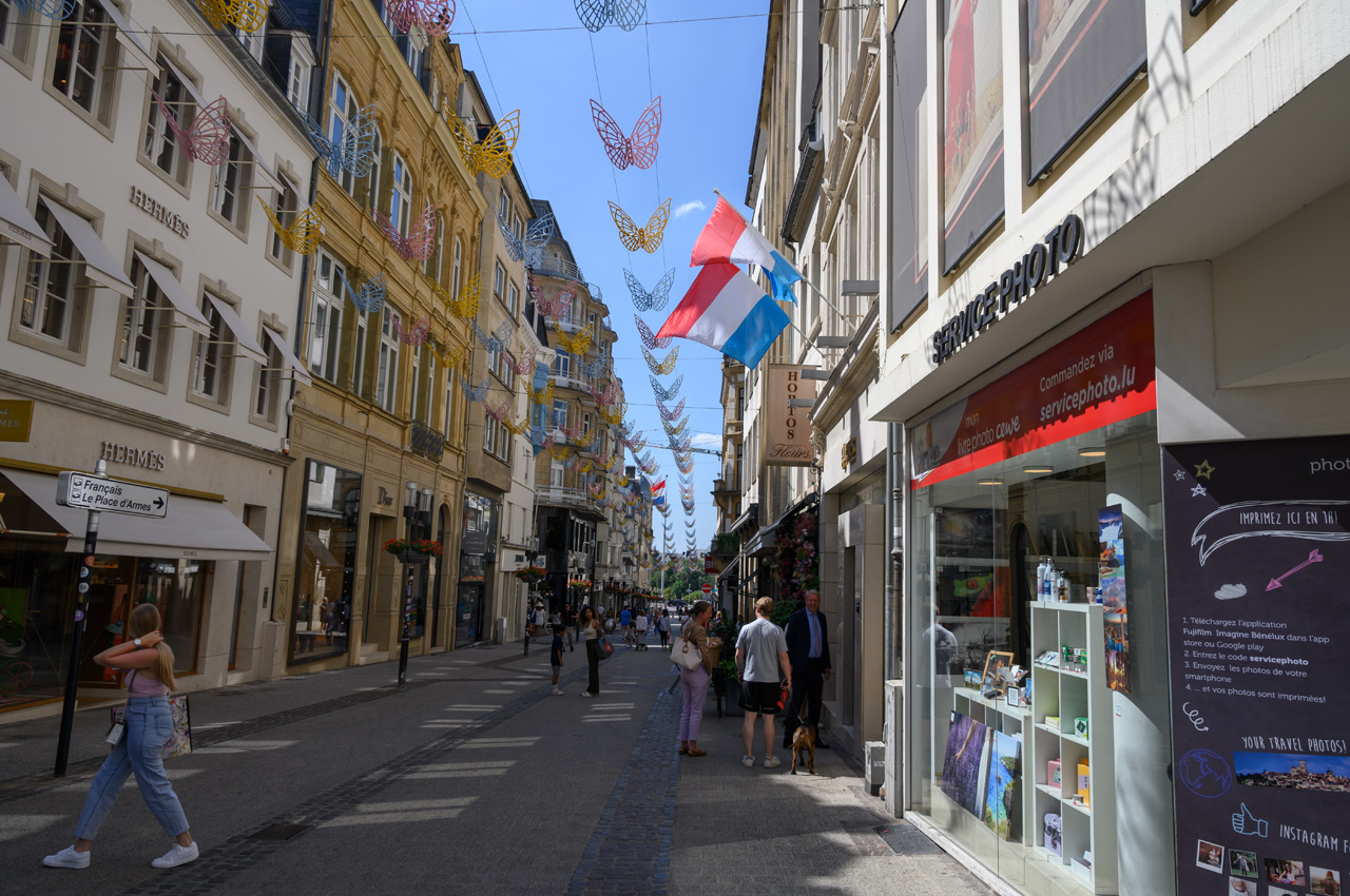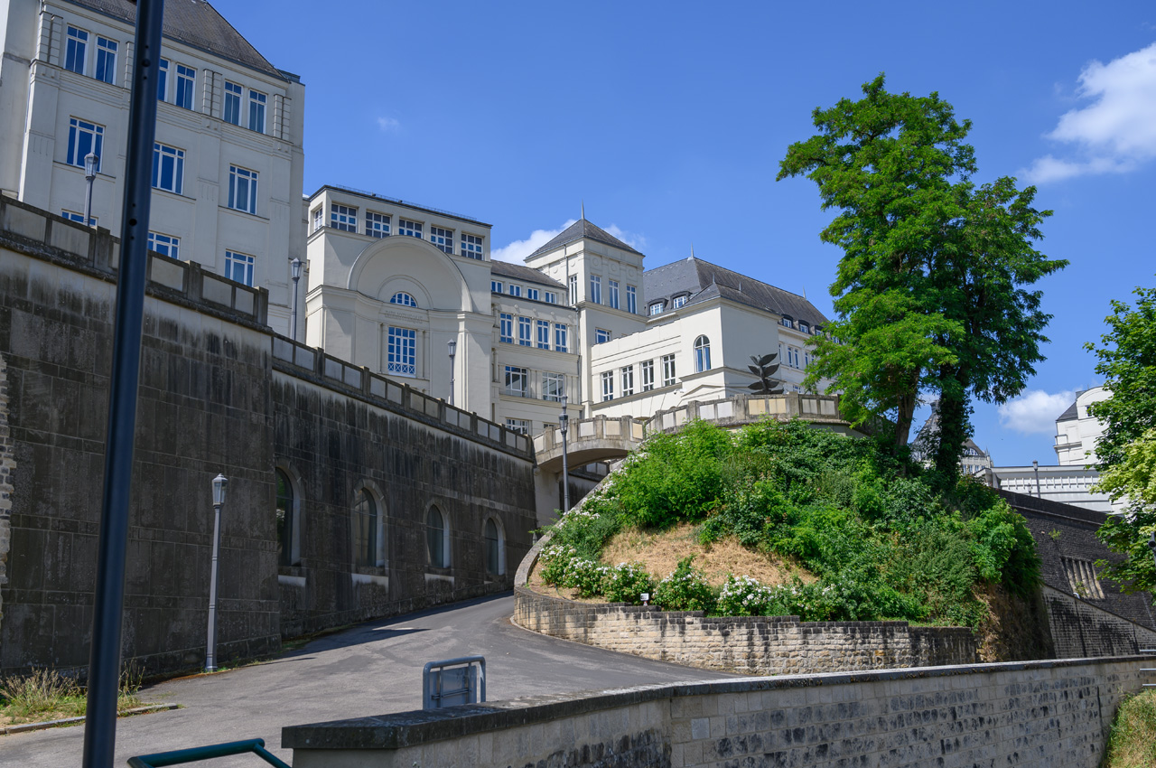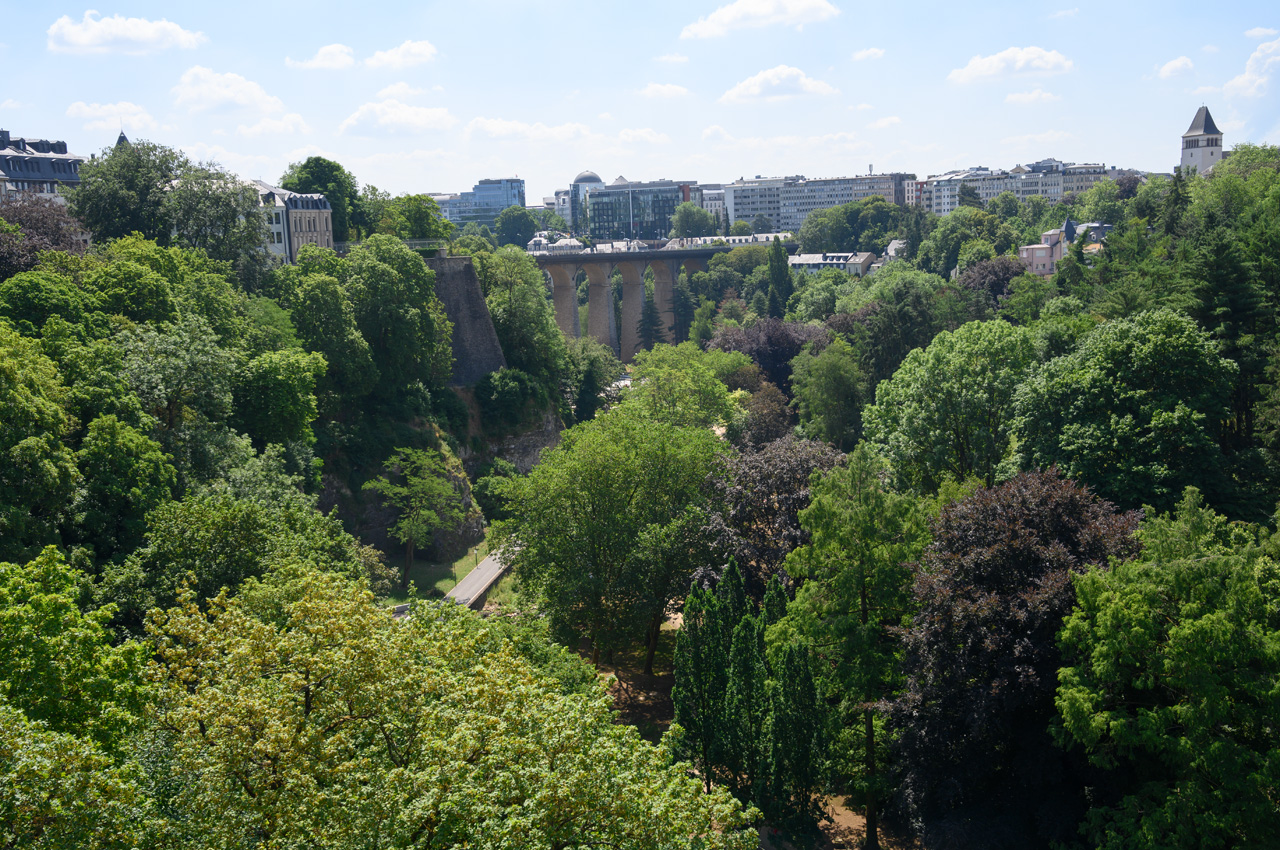 So etwas darf eigentlich nicht passieren. Beim Bäcker gab es um 09:00 Uhr schon keine Brötchen mehr. Baguett, was sie noch im Angebot hatten, hatten wir aber selbst noch im Womo. Also bin ich heute ohne Brötchen zurückgekehrt. Das Frühstück war trotzdem sehr gut. Über Nacht hat es sich merklich abgekühlt und es wehte ein schon fast kühler Wind. Das war sehr angenehm und gut für unsere nächste Stadtrunde. Wir sind wieder mit Bus und Straßenbahn in die Oberstadt gefahren, dieses mal mit der GoPro-Ausstattung. Wir sind wieder über den Place Guillaume II gelaufen, vorbei am Rathaus und dem Reiterstandbild von Kaiser Wilhelm dem II. Danach waren wir am Palais Grand-Ducal, dem Großherzoglichen Palast, der Residenz und der Abgeordneten Kammer. Weiter ging es dann zur Michaelskirche, die wir auch bei der ersten Tour uns schon angesehen haben. Kurz dahinter haben wir die verschiedenen Ausblickmöglichkeiten auf den Stadtteil Grund und der Abtei Neumünster. Von hier aus sind wir in die Casemates du Bock, die Kasematten der Stadt Luxemburg gegangen. Das hat Susanne mir zur Liebe auf sich genommen, weil es schon wieder viele Treppen zu überwinden galt. War aber auch sehr interessant, hatte man doch von den vielen Öffnungen nach draußen nochmals andere Einblicke auf Grund und auf das Pfaffenthal. Wieder am Tageslicht angekommen sind wir nun zurück zum Großherzöglichen Palaise gelaufen, dieses mal von hinten durch die kleinen Gassen. Weiter ging es dann zur Michaelskirche, die wir auch bei der ersten Tour uns schon angesehen haben. Man durfte trotzdem in das Innere der Kirche, es war nur ein kleiner Bereich um den Chor abgesperrt. Der Pastor hätte sein Geld auch mit seinem Gesang verdienen können, er hatte eine ausgesprochen tolle Stimme. Dieses mal war ich auch in der Krypta dieser Kirche, die auch sehr sehenswert ist. Susanne hat vor der Kirche gewartet, weil es hier schon wieder viele Treppenstufen zu überwinden gab. Wenn man den Hinterausgang benutzt, ist man schon fast auf dem Place de la Constitution, Platz der Verfassung. Hier haben wir nochmals die Gëlle Fra bewundert und die Ausblicke in das Petrustal genossen. Hier haben wir eine längere Pause gemacht, weil wir mit Vivien-Sara telefoniert haben. Sie hat uns von der gestrigen Grundstücksbesichtigung mit Angelika und Andreas in Caputh berichtet und uns zu unserer Meinung über das Projekt gefragt. Weiter ging es nun zur Straßenbahnhaltestelle und zwar sind wir mit ihr mal in entgegengesetzte Richtung gefahren. Wir wollten Sightseeing mit der Straßenbahn machen. Wir haben dadurch mal den modernen Bereich von Luxemburg (Stadt) gesehen. Hier befinden sich ausschließlich moderne Gebäude wie die Universität, ein Europaparlementsgebäude und eine Philharmonie. Das war sehr bequem für uns und da das Straßenbahnfahren nichts kostet, auch noch sehr preiswert. Zurück sind wir dieses mal auch nicht am Bahnhof ausgestiegen, sondern an der Endhaltestelle der Straßenbahn, das ist auch nur zwei Haltestellen weiter. Hier konnten wir ganz bequem in den Bus 511 einsteigen, ohne den ganzen Bahnhof überqueren zu müssen. Das war ein schöner Abschiedstag von Luxemburg.