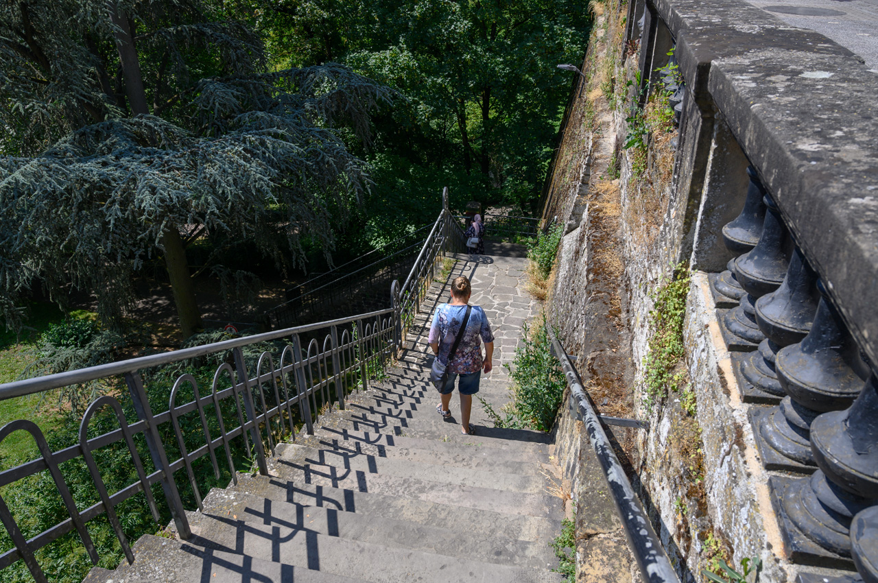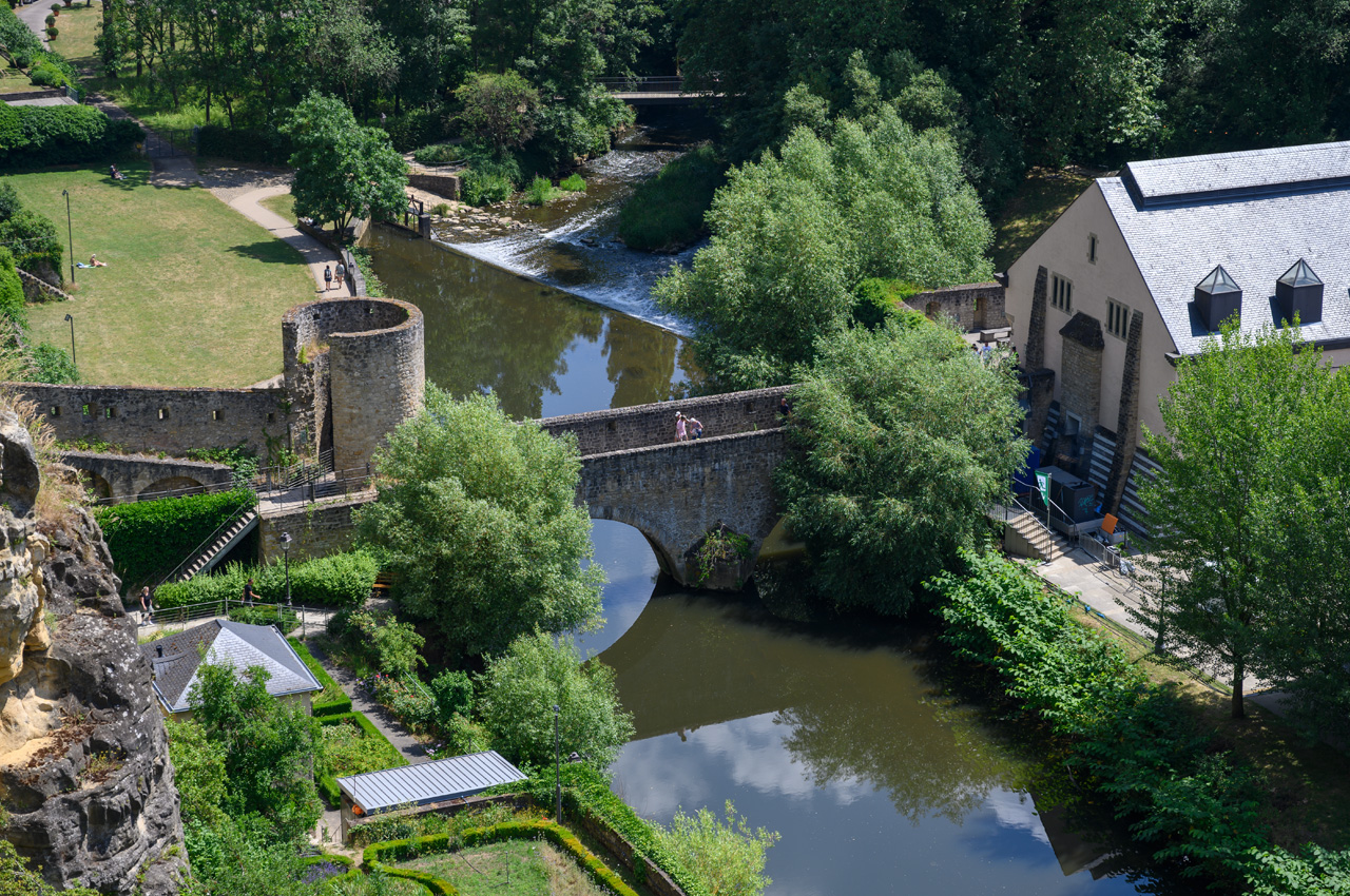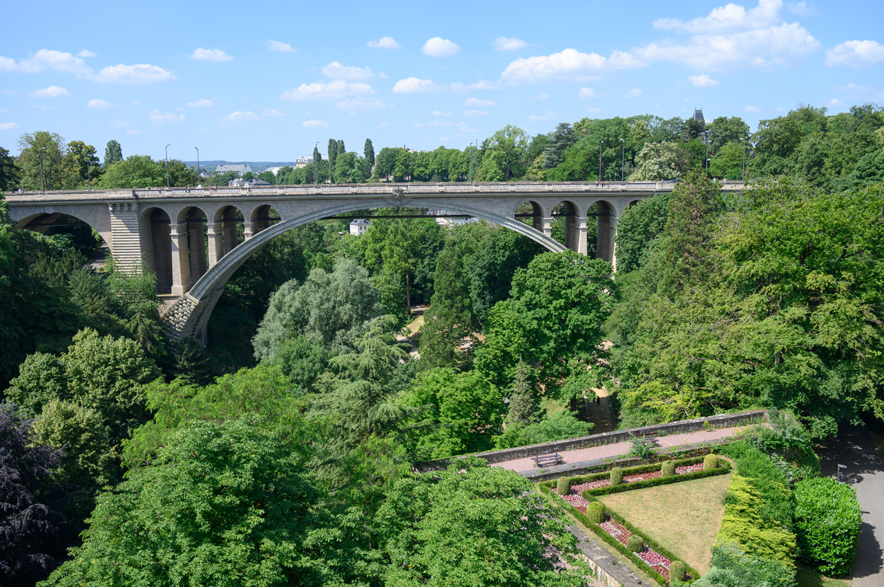 Die Antwort beim Bäcker auf meine Frage, können sie Deutsch, war, aber naklar. Also einfach mich zu artikulieren, was ich will. Kurioserweise sogar der Begriff Schrippen war geläufig. Ist ja fast wie zu Hause. Etwas anders sind allerdings die Preise. Das einfache Brötchen mit 0,65€ ist schon ganz schön heftig. Susanne hat sich ein Croissant gegönnt. So haben wir den Start in den Tag mit einem guten Frühstück und strahlend blauem Himmel bestens gestartet. Nach dem Frühstück sind wir zur Bushaltestelle gelaufen und mit dem Bus 511 zum Zentralbahnhof gefahren und dort in die Straßenbahn gestiegen, sie fahren alle durch die obere Stadt, wo wir ausgestiegen sind. Die Straßenbahnen sind hier sehr besonders. Sie haben nur außerhalb der engen Altstadt eine Oberleitung. Dort fahren sie offensichtlich mit Batterien, die außerhalb, wenn eine Oberleitung wieder vorhanden ist, aufgeladen werden. Wir sind am Boulevard Royal ausgesteiegen. Susanne hat auf ihrem Handy die Touristeninfo eingegeben. Sie zu finden, war gar nicht so einfach, weil sie wohl im Frühjar umgezogen ist. Hier haben wir uns mit Stadtplänen versorgt und Infos zu den Sehenswürdigkeiten bekommen. Wir haben einen Flyer bekommen, der einen Rundweg beschreibt über die Unesco Weltkulturerbe Stätten. Kurz hinter dem Place Gulliaume II, hier ist die neue Touristeninfo, kommt man durch eine kleine Querstraße zur Liebfrauen Kirche, eigentlich der letzte Punkt des Rundganges. Die Kirche selbst war aber bei unserem Eintreffen wegen eines Konzertes geschlossen. Etwa 100 Meter weiter, ist man auf dem PLace de la Constitution. Hier ist auch der offizielle Startpunkt der Tour. Hier steht das Monument Gëlle Fra (goldene Frau). Es wurde 1923, nach dem Ersten Weltkrieg, zum Gedenken an die Luxemburger errichtet, die freiwillig in den französischen und belgischen Armeen gedient hatten und im Ersten Weltkrieg gefallen waren. Sie glänzte heute in der Sonne besonders schön. Ansonsten hat man von dem Plateau des Platzes aus eine tolle Sicht in das Petrustal. Man sieht sehr gut von hier die Großherzog Adolf Brücke, die größte Steinbrücke der Welt, eines der monumentalsten Brückenbauwerke aus Stein der Vergangenheit. Sie ist komplett aus Feldsteinen und überspannt in Bögen das gesamte Petrustal. Der Weg führte uns dann weiter an der Mauerkante vom Petrustal mit sehr schönen Einblicken in das Tal und dabei vorbei am Heilig Geist Plateau und vielen historischen Gebäuden. Jetzt wurde auch der Blick frei auf die im Tal fließende Alzette und die Häuser von Grund. Was für ein herrlicher Anblick, die Natur und die Architektur der Häuser von Grund. Man blickt auch auf den großen Gebäudekomplex der Abtei Neumünster. An der Corniche (ehemalige Festungswälle) kehren wir wieder zurück in die Straßen der Oberstadt. Gleich am Anfang, am Fischmarkt, besichtigen wir die Sankt Michaelkirche. Etwas düster und mit einem eher bescheidenem Altar hat die Kirche uns nicht wirklich begeistert. Jetzt haben wir vorbei am Großherzöglichen Palast wieder die Liebfrauen Kathedrale angesteuert. Jetzt war der Zugang auch möglich. Eine sehr interessante Kirche mit einer historischen Ausstattung. Besonders bemerkenswert ist die Holzdecke der Vierung und die rings um das Querschiff verteilten Orgeln. Von der Kirche ging es zurück in eine der Fußgängerzonen auf der Suche nach einem Eiscafe. Das haben wir gefunden und wir haben geschlemmt. Die Pause tat gut. Nun ging es zurück zur Straßenbahn und mit dann zurück zum Zentralbahnhof. Hier begann nun das Suchen nach unserem Bus 511, der uns wieder zum Campingplatz zurückbringen soll. Nach dem wir etwas umherirrten haben wir zwei Info-Leute gefunden. Von denen haben wir erfahren, dass dieser Bus auf der anderen Seite des Bahnhofes fährt. Hört sich erstmal einfach an, es war aber gar nicht so einfach, auf die andere Seite des Bahnhofes zu kommen. Nach zwei Anläufen haben wir eine Fußgängerbrücke gefunden, die über den ganzen Bahnhof führt. Glück für Susanne, an beiden Enden gab es einen Aufzug. Tatsächlich haben wir dann auch auf der anderen Seite unseren 511´er Bus gefunden. Er hat hier auch Endstation. Der Bus war gut gekühlt, aber als wir am Campingplatz ausgestiegen sind, war das ein echter Temperaturschock. Das Außenthermometer zeigte nun auch schon glatte 30°C an.Am Womo angekommen, waren wir auch rechtschaffend breit. Unsere Fitnesuhren hatten schon wieder mehr als 12.000 Schritte auf der Anzeige. Es war nur noch faulenzen auf der Tagesordnung.