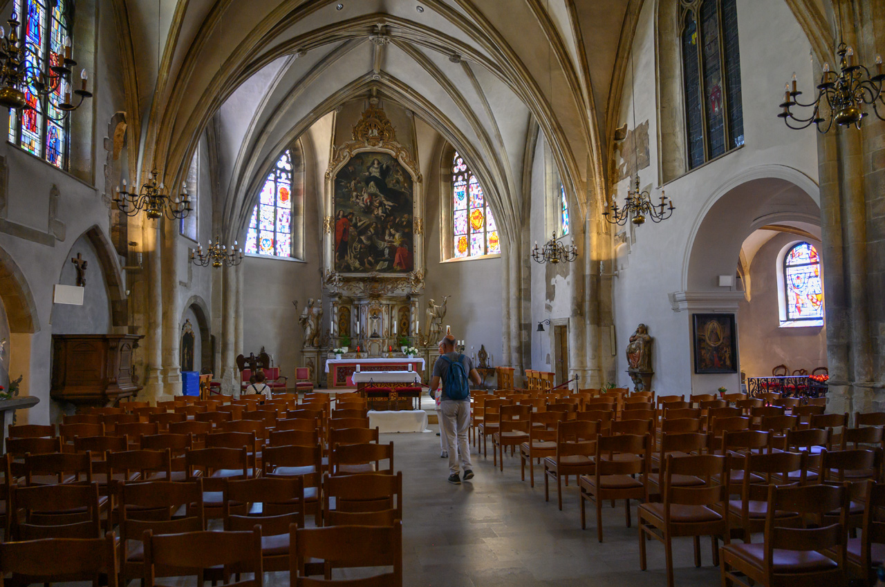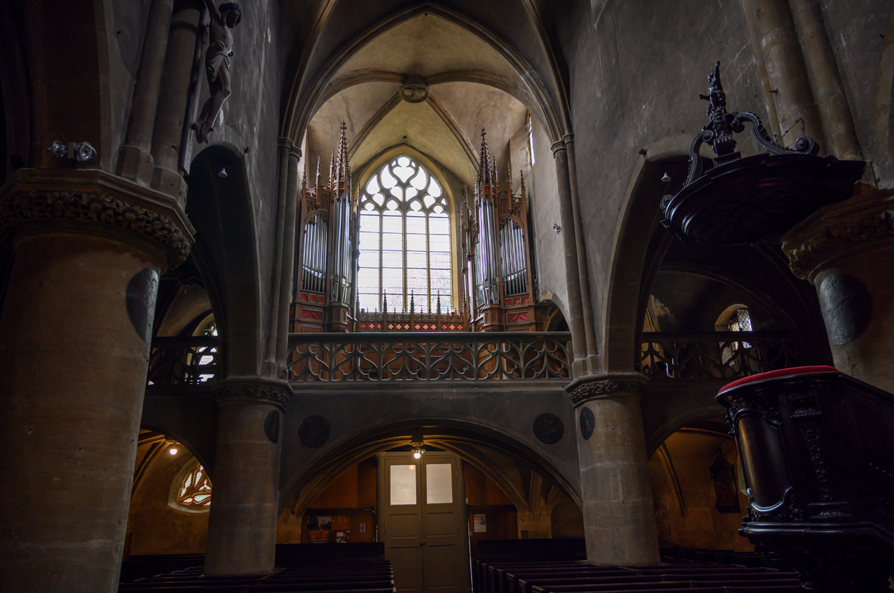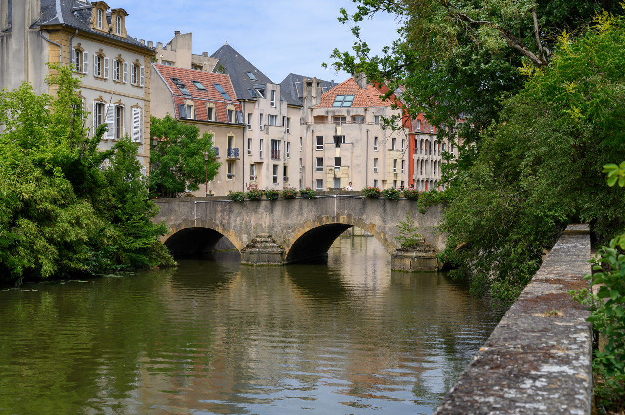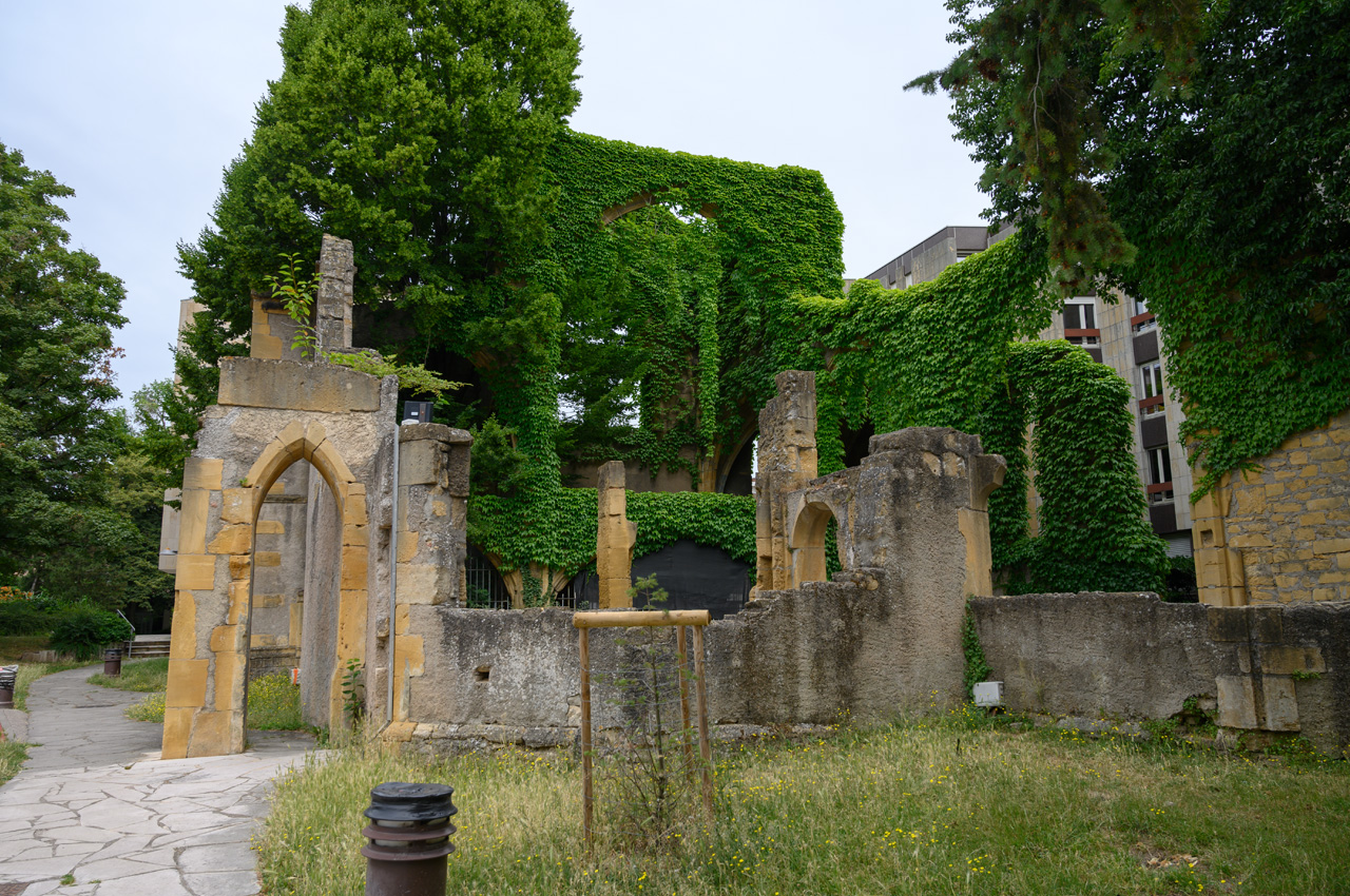 Gegen 11:30 Uhr sind wir in die Altstadt gelaufen, dieses mal in östlich Richtung. Die St. Vincent Basilica war verschlossen, genauso wie die Église Saint-Clément. Na wenigstens die Ruine der Eglise Saint Livier war zugänglich. Die Reste der Turmhalle sind schon komplett von Kletterpflanzen zugewachsen. Von hier aus sind wir entlang der Mosel zum Place d'Armes gelaufen, dem früheren Exerzierplatz. Hier steht die Kathedrale von Metz, die wir dann auch ausführlich besichtigt haben. Das Langhaus oder Mittelschiff ist mit seinen 42 Metern Raumhöhe, das höchste Kirchenschiff Europas. Generell aber ein sehr von den Regeln abweichender Baustil. Entsprechend ihres Alters, die ältesten Teile der Kirche gehen zurück bis in das 6. Jahrhundert, sind alle Baustile aus dieser Epoche vorhanden. Das Hauptzugangsportal führt direkt in das Langhaus und der Übergang von der Vierung zum Hochchor fehlt. Aber gerade vielleicht deswegen ein fesselndes Bauwerk. Von der Kathedrale aus sind wir durch die alten Gassen in Richtung Porte des Allemands (Deutsches Tor) gelaufen. Dabei ist uns aufgefallen, dass die eigentlich sehr schönen historischen Häuser, fast ausnahmslos in einem traurigen Zustand sind. Fenster, Türen und Fassaden, fehlt fast ausnahmslos ein Farbschutz. An ehemals kunstvoll verzierten Fassaden werden regellos Kabel angenagelt und diese dann herunterhängend einfach zusammengeführt, mir tut so etwas regelrecht weh. Eine Vergewaltigung und Respektlosigkeit den Erbauern und Handwerkern gegenüber. Alles schnell hingehauen, nichts gediegen und strukturiert. Ich kenne so etwas schon aus meinen Besuchen im Rahmen meiner Osramtätigkeit aus Italien. Zumindestens, die Stadt lebt und ist quirlig. Unterwegs hat Susanne bei einem der vielen Bäcker uns ein Brioche gekauft, eine absolut leckere Sache. Bevor wir das Porte des Allemands erreicht haben, konnten wir noch die kleine Kirche Église Saint-Maximin besichtigen, eine fast leere und schmucklose Kirche. Das Porte des Allemands ist ein bulliges Bauwerk, ein Stadttor mit Türmen und einer Brücke, die die Seille überspannt, ein kleiner Fluß, der schon ein paar hundert Meter weiter in die Mosel mündet. Erbaut wurde der Turm im 13. und 15. Jahrhundert als Bestandteil der Stadtbefestigung und einer großen Festungsanlage. Von hier aus ging es zur Église Saint-Eucaire, eine düstere Kirche, mit fast schwarzen Wänden, wobei uns nicht klar wurde, ob das Farbe oder Schmutz ist. Auf jeden Fall hatte sie noch einen Teil ihrer historischen Innenausstattung. Wieder zurück zum Place d'Armes sind wir jetzt auf dirktem Wege vorbei an Opéra-Théâtre de Metz zum Temple Neuf. Diese Kirche war allerdings verschlossen. Nun hatten wir nur noch wenige hundert Meter zum Womo. In der Zwischenzeit ist es auch schon wieder ziemlich warm geworden und so konnten wir die Luft und das bisschen Wind vor unserem Womo, unter der Markise, gut genießen.