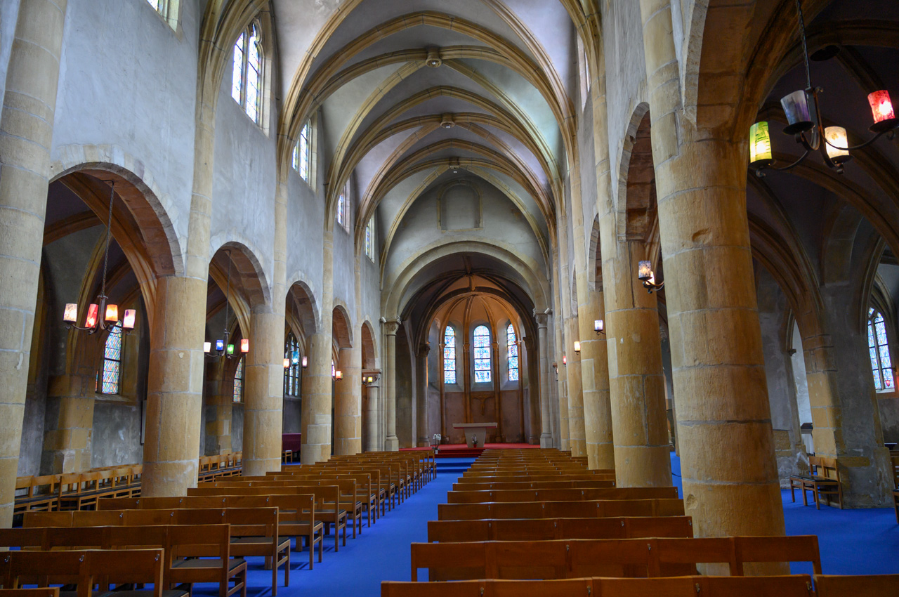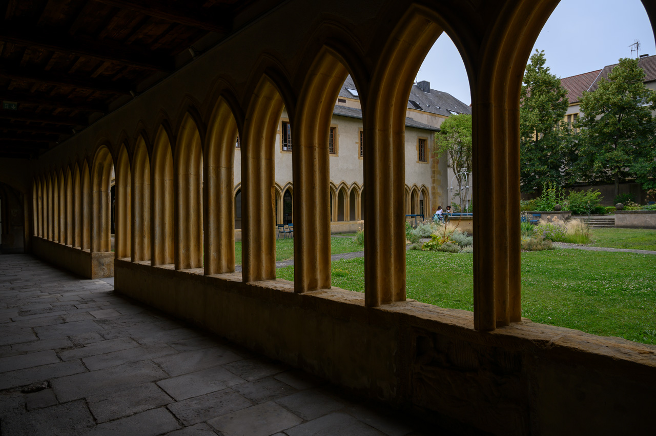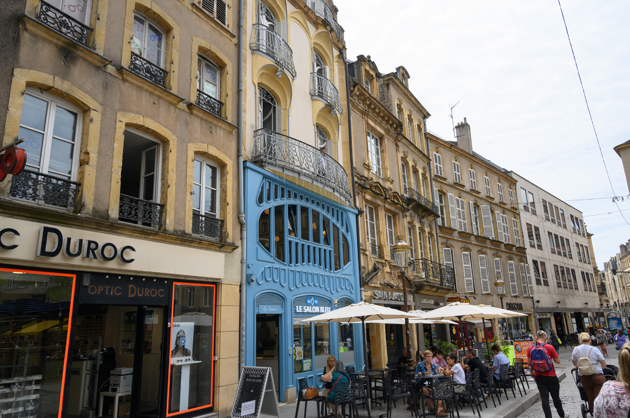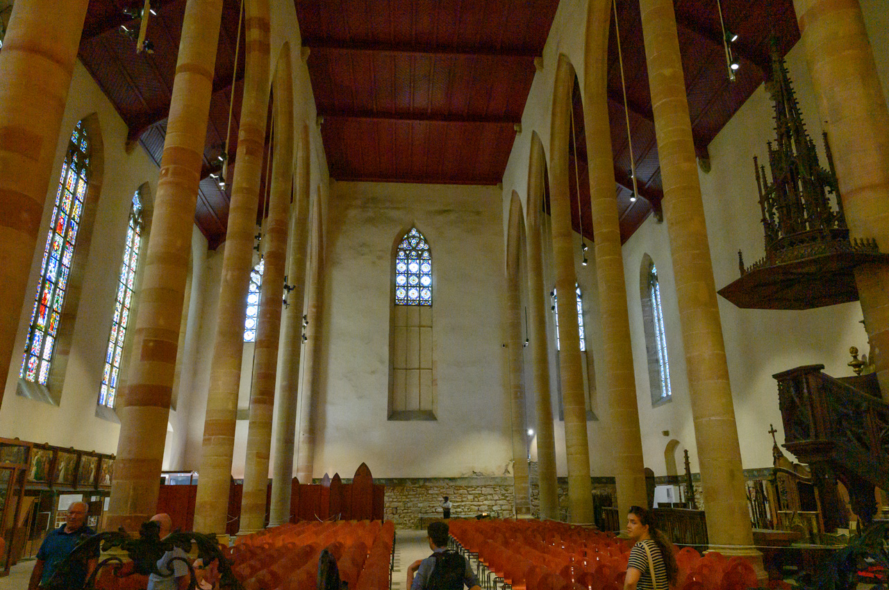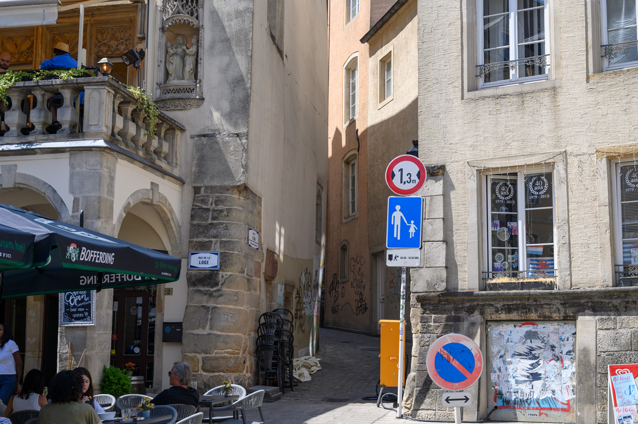 Gegen 11:30 Uhr sind wir in die Altstadt gelaufen, dieses mal in östlich Richtung. Die St. Vincent Basilica war verschlossen, genauso wie die Église Saint-Clément. Na wenigstens die Ruine der Eglise Saint Livier war zugänglich. Die Reste der Turmhalle sind schon komplett von Kletterpflanzen zugewachsen. Von hier aus sind wir entlang der Mosel zum Place d'Armes gelaufen, dem früheren Exerzierplatz. Hier steht die Kathedrale von Metz, die wir dann auch ausführlich besichtigt haben. Das Langhaus oder Mittelschiff ist mit seinen 42 Metern Raumhöhe, das höchste Kirchenschiff Europas. Generell aber ein sehr von den Regeln abweichender Baustil. Entsprechend ihres Alters, die ältesten Teile der Kirche gehen zurück bis in das 6. Jahrhundert, sind alle Baustile aus dieser Epoche vorhanden. Das Hauptzugangsportal führt direkt in das Langhaus und der Übergang von der Vierung zum Hochchor fehlt. Aber gerade vielleicht deswegen ein fesselndes Bauwerk. Von der Kathedrale aus sind wir durch die alten Gassen in Richtung Porte des Allemands (Deutsches Tor) gelaufen. Dabei ist uns aufgefallen, dass die eigentlich sehr schönen historischen Häuser, fast ausnahmslos in einem traurigen Zustand sind. Fenster, Türen und Fassaden, fehlt fast ausnahmslos ein Farbschutz. An ehemals kunstvoll verzierten Fassaden werden regellos Kabel angenagelt und diese dann herunterhängend einfach zusammengeführt, mir tut so etwas regelrecht weh. Eine Vergewaltigung und Respektlosigkeit den Erbauern und Handwerkern gegenüber. Alles schnell hingehauen, nichts gediegen und strukturiert. Ich kenne so etwas schon aus meinen Besuchen im Rahmen meiner Osramtätigkeit aus Italien. Zumindestens, die Stadt lebt und ist quirlig. Unterwegs hat Susanne bei einem der vielen Bäcker uns ein Brioche gekauft, eine absolut leckere Sache. Bevor wir das Porte des Allemands erreicht haben, konnten wir noch die kleine Kirche Église Saint-Maximin besichtigen, eine fast leere und schmucklose Kirche. Das Porte des Allemands ist ein bulliges Bauwerk, ein Stadttor mit Türmen und einer Brücke, die die Seille überspannt, ein kleiner Fluß, der schon ein paar hundert Meter weiter in die Mosel mündet. Erbaut wurde der Turm im 13. und 15. Jahrhundert als Bestandteil der Stadtbefestigung und einer großen Festungsanlage. Von hier aus ging es zur Église Saint-Eucaire, eine düstere Kirche, mit fast schwarzen Wänden, wobei uns nicht klar wurde, ob das Farbe oder Schmutz ist. Auf jeden Fall hatte sie noch einen Teil ihrer historischen Innenausstattung. Wieder zurück zum Place d'Armes sind wir jetzt auf dirktem Wege vorbei an Opéra-Théâtre de Metz zum Temple Neuf. Diese Kirche war allerdings verschlossen. Nun hatten wir nur noch wenige hundert Meter zum Womo. In der Zwischenzeit ist es auch schon wieder ziemlich warm geworden und so konnten wir die Luft und das bisschen Wind vor unserem Womo, unter der Markise, gut genießen.