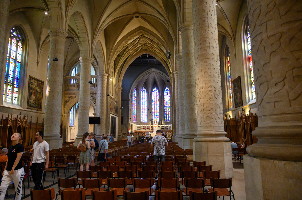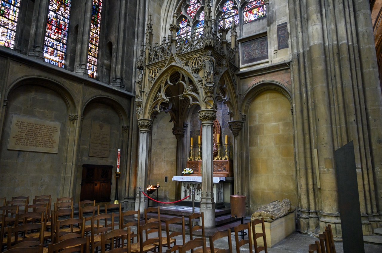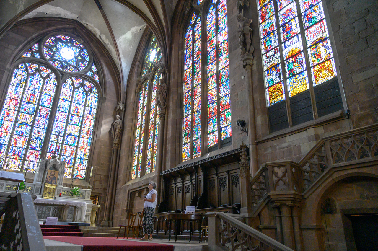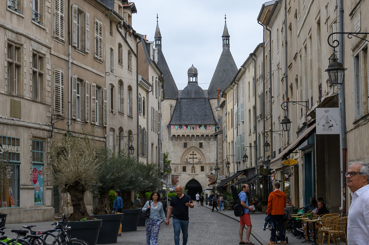 Gegen 11:30 Uhr sind wir in die Altstadt gelaufen, dieses mal in östlich Richtung. Die St. Vincent Basilica war verschlossen, genauso wie die Église Saint-Clément. Na wenigstens die Ruine der Eglise Saint Livier war zugänglich. Die Reste der Turmhalle sind schon komplett von Kletterpflanzen zugewachsen. Von hier aus sind wir entlang der Mosel zum Place d'Armes gelaufen, dem früheren Exerzierplatz. Hier steht die Kathedrale von Metz, die wir dann auch ausführlich besichtigt haben. Das Langhaus oder Mittelschiff ist mit seinen 42 Metern Raumhöhe, das höchste Kirchenschiff Europas. Generell aber ein sehr von den Regeln abweichender Baustil. Entsprechend ihres Alters, die ältesten Teile der Kirche gehen zurück bis in das 6. Jahrhundert, sind alle Baustile aus dieser Epoche vorhanden. Das Hauptzugangsportal führt direkt in das Langhaus und der Übergang von der Vierung zum Hochchor fehlt. Aber gerade vielleicht deswegen ein fesselndes Bauwerk. Von der Kathedrale aus sind wir durch die alten Gassen in Richtung Porte des Allemands (Deutsches Tor) gelaufen. Dabei ist uns aufgefallen, dass die eigentlich sehr schönen historischen Häuser, fast ausnahmslos in einem traurigen Zustand sind. Fenster, Türen und Fassaden, fehlt fast ausnahmslos ein Farbschutz. An ehemals kunstvoll verzierten Fassaden werden regellos Kabel angenagelt und diese dann herunterhängend einfach zusammengeführt, mir tut so etwas regelrecht weh. Eine Vergewaltigung und Respektlosigkeit den Erbauern und Handwerkern gegenüber. Alles schnell hingehauen, nichts gediegen und strukturiert. Ich kenne so etwas schon aus meinen Besuchen im Rahmen meiner Osramtätigkeit aus Italien. Zumindestens, die Stadt lebt und ist quirlig. Unterwegs hat Susanne bei einem der vielen Bäcker uns ein Brioche gekauft, eine absolut leckere Sache. Bevor wir das Porte des Allemands erreicht haben, konnten wir noch die kleine Kirche Église Saint-Maximin besichtigen, eine fast leere und schmucklose Kirche. Das Porte des Allemands ist ein bulliges Bauwerk, ein Stadttor mit Türmen und einer Brücke, die die Seille überspannt, ein kleiner Fluß, der schon ein paar hundert Meter weiter in die Mosel mündet. Erbaut wurde der Turm im 13. und 15. Jahrhundert als Bestandteil der Stadtbefestigung und einer großen Festungsanlage. Von hier aus ging es zur Église Saint-Eucaire, eine düstere Kirche, mit fast schwarzen Wänden, wobei uns nicht klar wurde, ob das Farbe oder Schmutz ist. Auf jeden Fall hatte sie noch einen Teil ihrer historischen Innenausstattung. Wieder zurück zum Place d'Armes sind wir jetzt auf dirktem Wege vorbei an Opéra-Théâtre de Metz zum Temple Neuf. Diese Kirche war allerdings verschlossen. Nun hatten wir nur noch wenige hundert Meter zum Womo. In der Zwischenzeit ist es auch schon wieder ziemlich warm geworden und so konnten wir die Luft und das bisschen Wind vor unserem Womo, unter der Markise, gut genießen.
