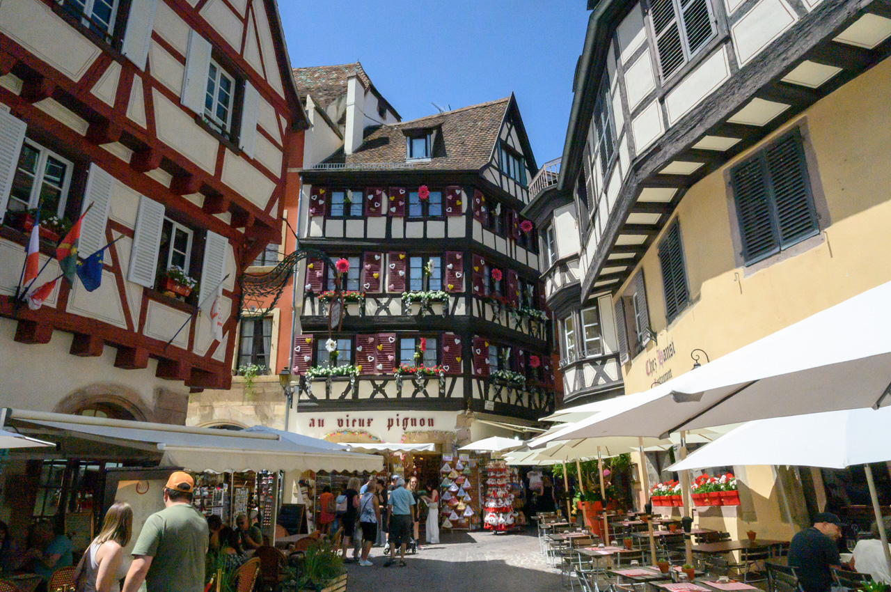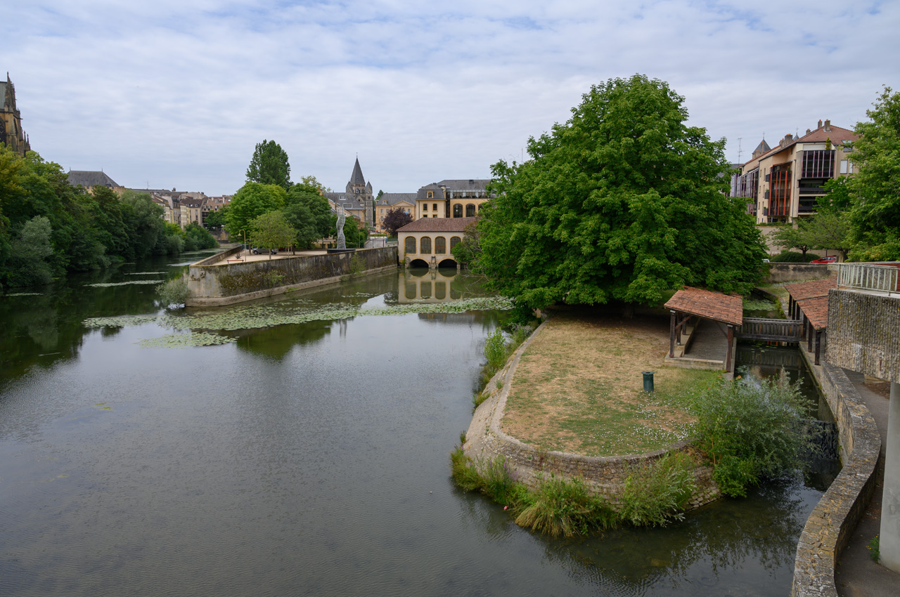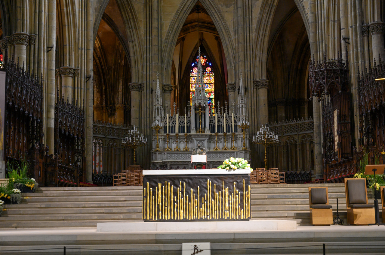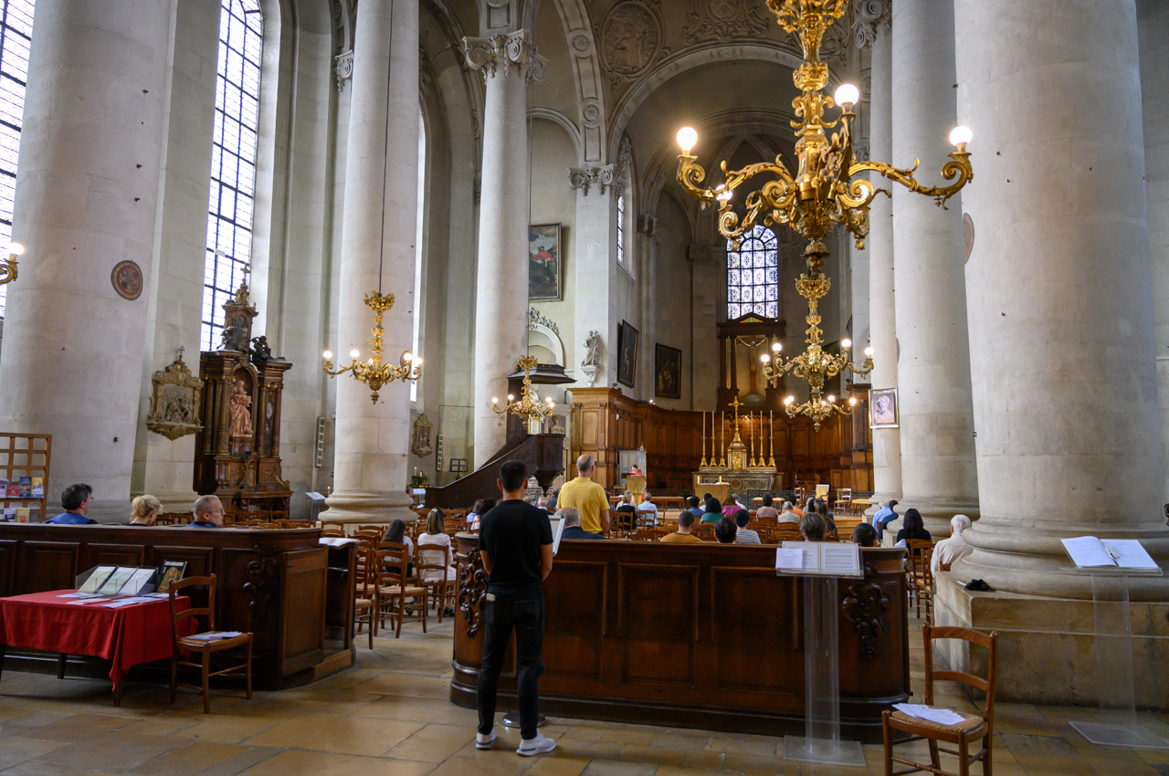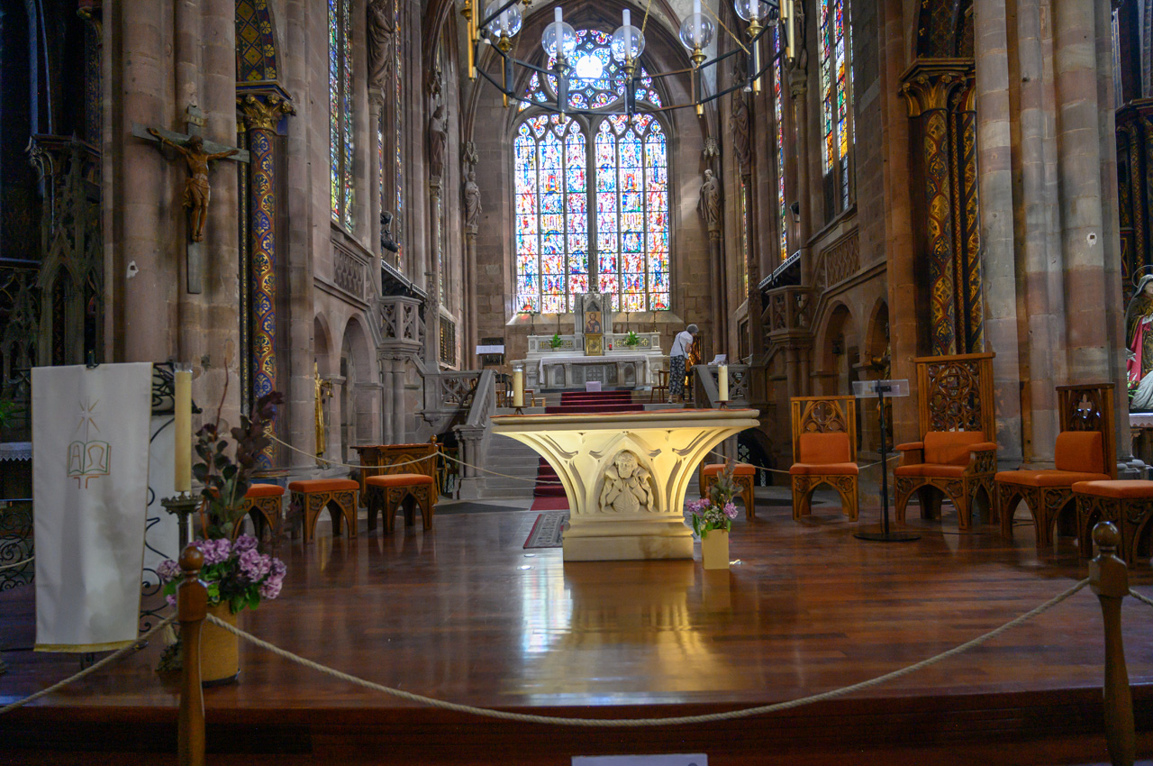 Gegen 11:30 Uhr sind wir in die Altstadt gelaufen, dieses mal in östlich Richtung. Die St. Vincent Basilica war verschlossen, genauso wie die Église Saint-Clément. Na wenigstens die Ruine der Eglise Saint Livier war zugänglich. Die Reste der Turmhalle sind schon komplett von Kletterpflanzen zugewachsen. Von hier aus sind wir entlang der Mosel zum Place d'Armes gelaufen, dem früheren Exerzierplatz. Hier steht die Kathedrale von Metz, die wir dann auch ausführlich besichtigt haben. Das Langhaus oder Mittelschiff ist mit seinen 42 Metern Raumhöhe, das höchste Kirchenschiff Europas. Generell aber ein sehr von den Regeln abweichender Baustil. Entsprechend ihres Alters, die ältesten Teile der Kirche gehen zurück bis in das 6. Jahrhundert, sind alle Baustile aus dieser Epoche vorhanden. Das Hauptzugangsportal führt direkt in das Langhaus und der Übergang von der Vierung zum Hochchor fehlt. Aber gerade vielleicht deswegen ein fesselndes Bauwerk. Von der Kathedrale aus sind wir durch die alten Gassen in Richtung Porte des Allemands (Deutsches Tor) gelaufen. Dabei ist uns aufgefallen, dass die eigentlich sehr schönen historischen Häuser, fast ausnahmslos in einem traurigen Zustand sind. Fenster, Türen und Fassaden, fehlt fast ausnahmslos ein Farbschutz. An ehemals kunstvoll verzierten Fassaden werden regellos Kabel angenagelt und diese dann herunterhängend einfach zusammengeführt, mir tut so etwas regelrecht weh. Eine Vergewaltigung und Respektlosigkeit den Erbauern und Handwerkern gegenüber. Alles schnell hingehauen, nichts gediegen und strukturiert. Ich kenne so etwas schon aus meinen Besuchen im Rahmen meiner Osramtätigkeit aus Italien. Zumindestens, die Stadt lebt und ist quirlig. Unterwegs hat Susanne bei einem der vielen Bäcker uns ein Brioche gekauft, eine absolut leckere Sache. Bevor wir das Porte des Allemands erreicht haben, konnten wir noch die kleine Kirche Église Saint-Maximin besichtigen, eine fast leere und schmucklose Kirche. Das Porte des Allemands ist ein bulliges Bauwerk, ein Stadttor mit Türmen und einer Brücke, die die Seille überspannt, ein kleiner Fluß, der schon ein paar hundert Meter weiter in die Mosel mündet. Erbaut wurde der Turm im 13. und 15. Jahrhundert als Bestandteil der Stadtbefestigung und einer großen Festungsanlage. Von hier aus ging es zur Église Saint-Eucaire, eine düstere Kirche, mit fast schwarzen Wänden, wobei uns nicht klar wurde, ob das Farbe oder Schmutz ist. Auf jeden Fall hatte sie noch einen Teil ihrer historischen Innenausstattung. Wieder zurück zum Place d'Armes sind wir jetzt auf dirktem Wege vorbei an Opéra-Théâtre de Metz zum Temple Neuf. Diese Kirche war allerdings verschlossen. Nun hatten wir nur noch wenige hundert Meter zum Womo. In der Zwischenzeit ist es auch schon wieder ziemlich warm geworden und so konnten wir die Luft und das bisschen Wind vor unserem Womo, unter der Markise, gut genießen.