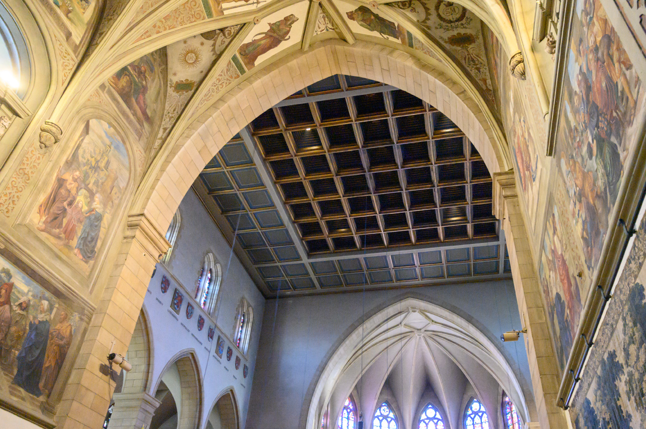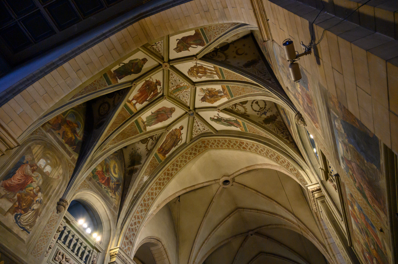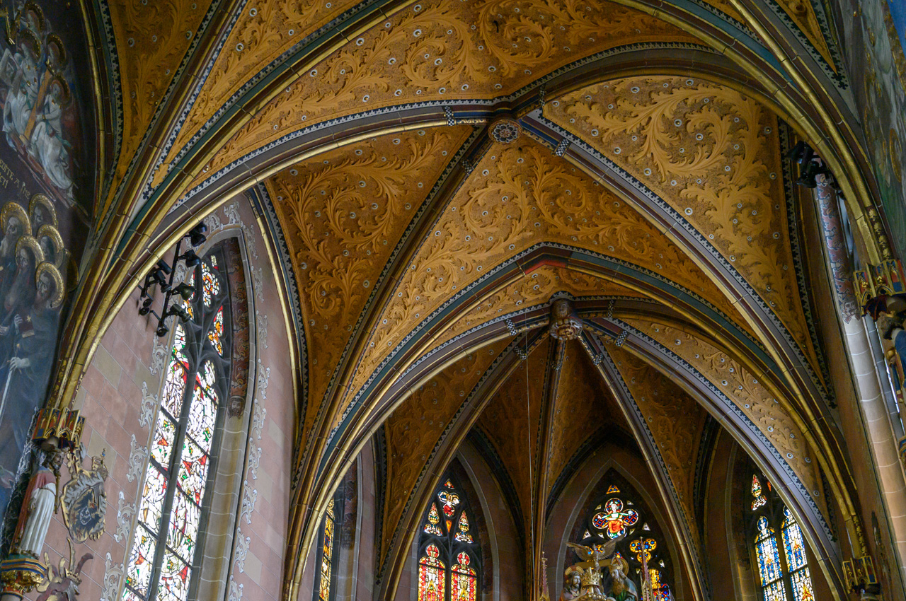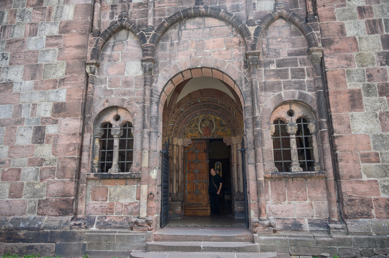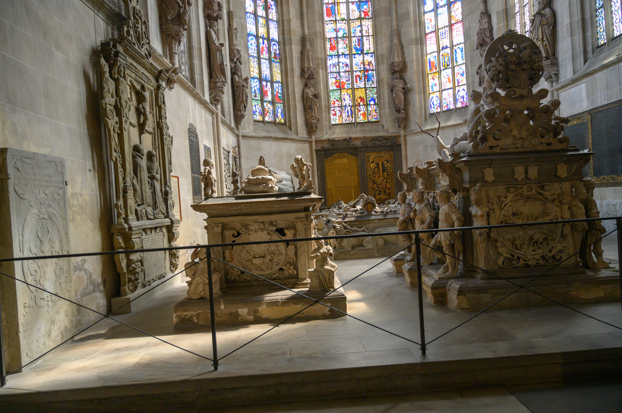 Da heute Sonntag war, war es zwecklos hier nach frischen Brötchen zu jagen. Sowohl der Fleischer wie auch das Edeka hatten geschlossen. Da war das aber schon wussten, hatte ich gestern schon vorgesorgt. Die aufgebackenen Brötchen waren fast leckerer als die frischen, weil sie richtig knusprig waren. Nach dem Frühstück hat Susanne wieder unser Tagesticket via Internet gebucht. Mit der Bahn nach Nürnberg zu fahren, da waren wir nun ja schon fast Profis. Susanne hatte auch schon recherchiert, wie wir mit Bus und Bahn möglichst nah an die Kaiserpfalz kommen. Vom Hauptbahnhof mit der U-Bahn nach Nürnberg Plärrer und von da aus mit dem Bus 36 zur Burgstraße. Das hat sogar heilwegs mit den Anschlüssen hingehauen. Von der Bushaltestelle ging es allerdings, sehr zum Vergnügen von Susanne, noch ca. 400 Meter steil bergauf zur Kaiserpfalz. Der Eintritt für die Burgbesichtigung hielt sich mit 7,-€ in Grenzen und wir haben durch unsere Behindertenausweise noch weniger bezahlt. Die Besichtigung der Burganlage war für Susanne eine weitere Herausforderung. Treppe hoch, Treppe runter und dann in eine kleine Wendeltreppe hinein. Aber die Neugierde hat überwogen. Obwohl es kein Mobilar mehr gibt, waren einige Räume noch sehr sehenswert. Deckenbemalung und Wandgestaltung waren dabei besonders Interessant. Sicherlich auch ein Highlight ist die Doppelkapelle in der Burganlage. Sie hat noch eine fast reine romanische Architektur mit wuchtigen Tragsäulen und Gewölbedecken. Während unseres Burgaufenthaltes hat es draußen kräftig geregnet. Das war für uns auch sehr günstig, weil kurz vor dem verlassen der Burgräume hörte es auf und die Sonne kam heraus. Nach einem kleinen Spaziergang durch die Vorburg sind wir wieder abgestiegen. Um Susannes Fuß möglichst zu schonen, haben wir nicht den direkten Weg genommen sondern sind mit einem kleinen Bogen zurück zur Burgstraße. Jetzt hatten wir hunger auf die Würstel. Wir haben uns schnell entschlossen, uns heute mal entgegen all unserer Gewohnheiten, ein komplettes Essen am Mittag zu gönnen. Währen ich in der Sebalduskirche die verpatzten Aufnahmen von gestern nachgeholt habe, hat uns Susanne in der Würstelbraterei einen Sitzplatz ergattern können. Wir haben geschlemmt und die leckeren Nürnberger Würste mit Sauerkraut genossen.