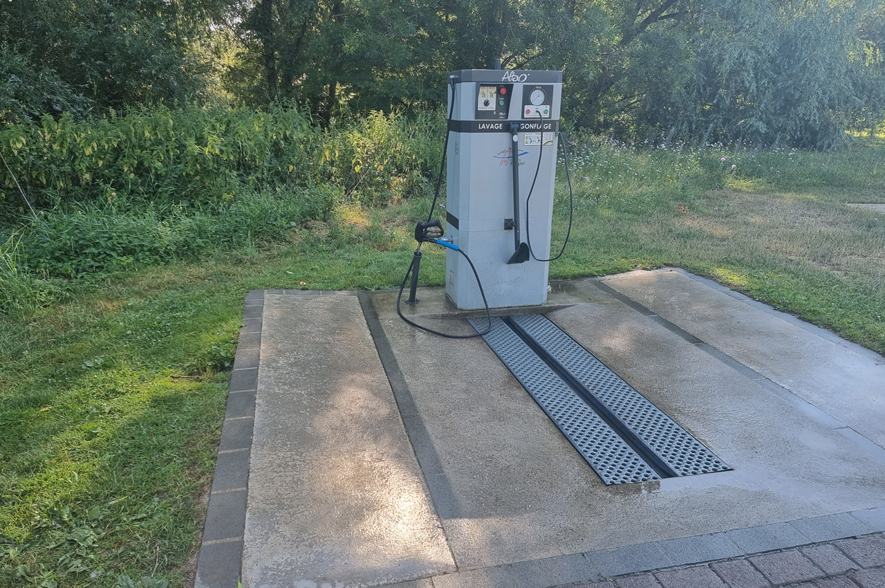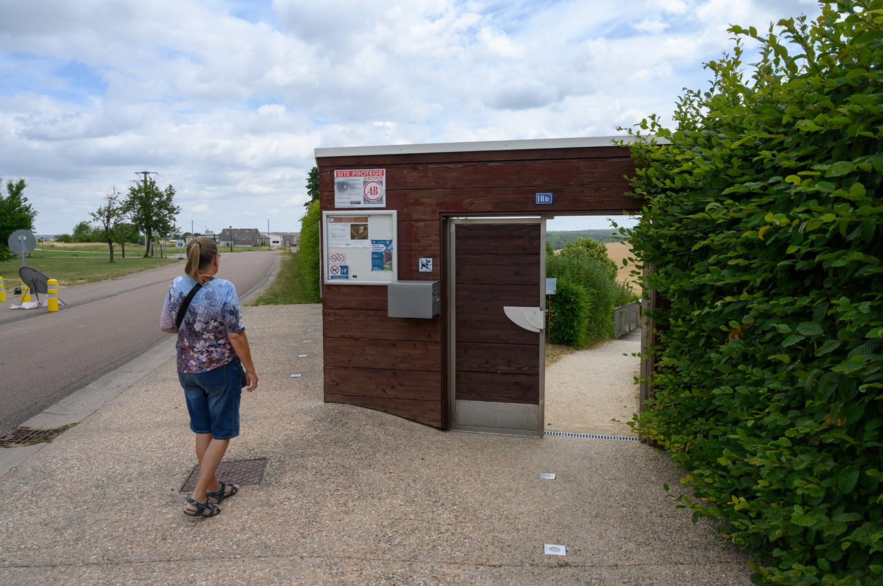 Heute gab es zum Frühstück die andere Hälfte des Baguettes von gestern. Susanne hat es aufgetoastet, da war es fast noch leckerer als frisch. Nach dem Frühstück habe ich an unserer Stellfläche das Frischwasser aufgefüllt. Die Toilettenkassete war auch gut gefüllt, die habe ich auch von der Stellfläche aus entsorgt. Das Anfahren der V+E zum Ablassen des Grauwassers war gar nicht so einfach. Dadurch, dass alle Wege Einbahnstraßen sind, muss man sehr merkwürdige Schlaufen fahren. Der Einlass selbst ist gut, wir konnten ihn gut anfahren. Susanne war in der Zwischenzeit in der Rezeption und hat unsere Standgebühren bezahlt.