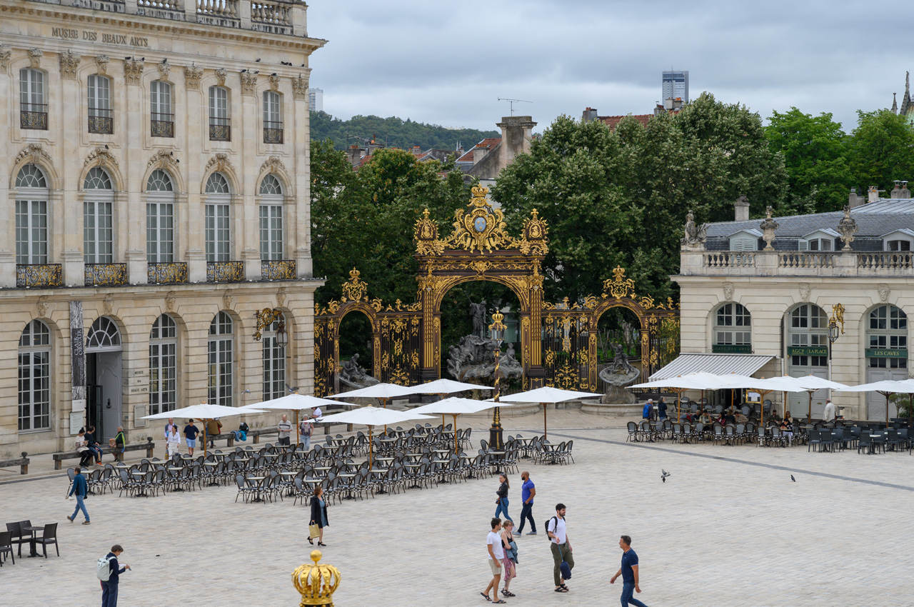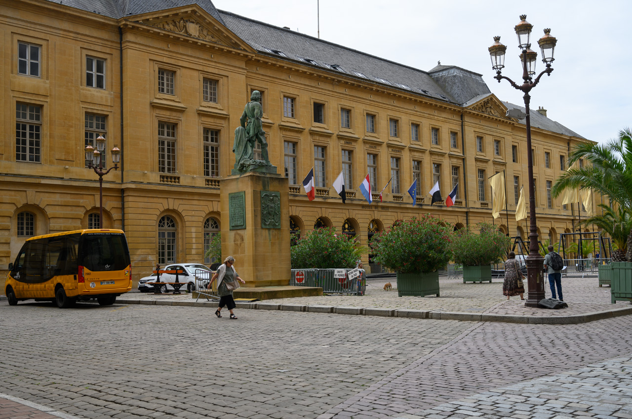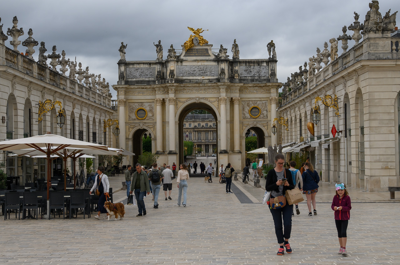Wir haben vom Stellplatz in Metz aus sehr schnell die Autobahn 31 erreicht. Auf der sind wir dann auch bis ca. 9 km vor Nancy geblieben. Von diesen 9 Kilometern gingen die letzten 5 km direkt durch die Altstadt. Teilweise sind die Fahrstreifen extrem schmal. Das verhalten der Autofahrer hier erscheint uns ziemlich rücksichtslos anderen Verkehrsteilnehmern und auch Fußgängern gegenüber. Verkehrsschilder muss man hier nicht unbedingt beachten, so erscheint es uns zumindestens. Aufgefallen ist uns beim Durchfahren der Altstadtstraßen, dass die meisten Wohnhäuser hier weitaus gepflegter sind als in Metz. Bevor wir auf den Stellplatz gefahren sind haben wir noch eine Ehrenrunde gedreht, weil wir die Einfahrt nicht gefunden haben. Erst beim zweiten Anlauf haben wir uns von dem Absperrgitter in der Zufahrt nicht irritieren lassen. Es kam dann auch sofort ein Hafenmitarbeiter, der die Absperrung beiseite nahm. Der Platz war wieder erstaunlich leer. Wir konnten uns wieder einen Stellfläche aussuchen. Susanne war gleich beim Hafenmeister und hat von ihm eine Einweisung inklusive Stadtplan erhalten und hat für die drei Tage die Standgebühren bezahlt. Nach unserem Zwischenkaffee sind wir zu einer ersten Besichtigung in die Innenstadt gelaufen und waren relativ schnell von dieser Stadt positiv angetan. Der Place Stanislas ist ganz offensichtlich das Schmuckstück der Stadt. Der Platz mit seinen Gebäuden ist auch von der Unesco zum Weltkulturerbe erklärt worden. Er gilt als einer der schönsten Plätze der Welt. Wir waren jedenfalls sehr beeindruckt ob des Prunkes den man ringsherum sieht. Hier tobt auch das Leben. In dem Rathaus, was an der Südfront des Platzes steht befindet sich die Touristeninfo. Dort konnten wir uns noch mit weiterem Info-Material ausstatten. Wir sind danach noch durch das Arc Héré zum Place de la Carrière, dann vorbei an der Basilika Saint-Epvre um dann über kleine Gassen wieder zurück zum Place Stanislas. Unterwegs haben wir einen kleinen Bäcker entdeckt, bei dem wir uns noch ein Baguette gekauft haben. Das roch so gut und fühlte sich so cross an, dass wir nicht widerstehen konnten. Bis wir am Womo ankamen, war die Hälfte des Baguetts schon weg. Das war so super lecker, dass wir uns ganz schön zusammenreißen mussten, nicht auch den Rest noch auf zu essen. Auf der Suche nach einem Bäcker in der Nähe des Stellplatzes haben wir zwar keinen Bäcker gefunden, aber dafür einen Werksverkauf von einer Schokoladenfabrik. Offensichtlich alles handgemacht, sind auch die Preise entsprechend. Eine kostenlose Kostprobe hat das auch bestätigt. Wir haben uns aber beherrscht.