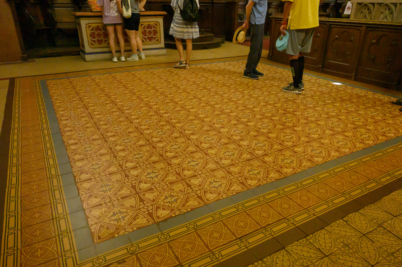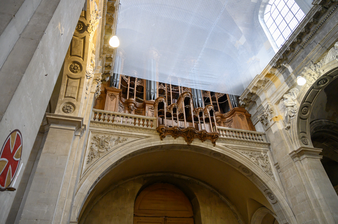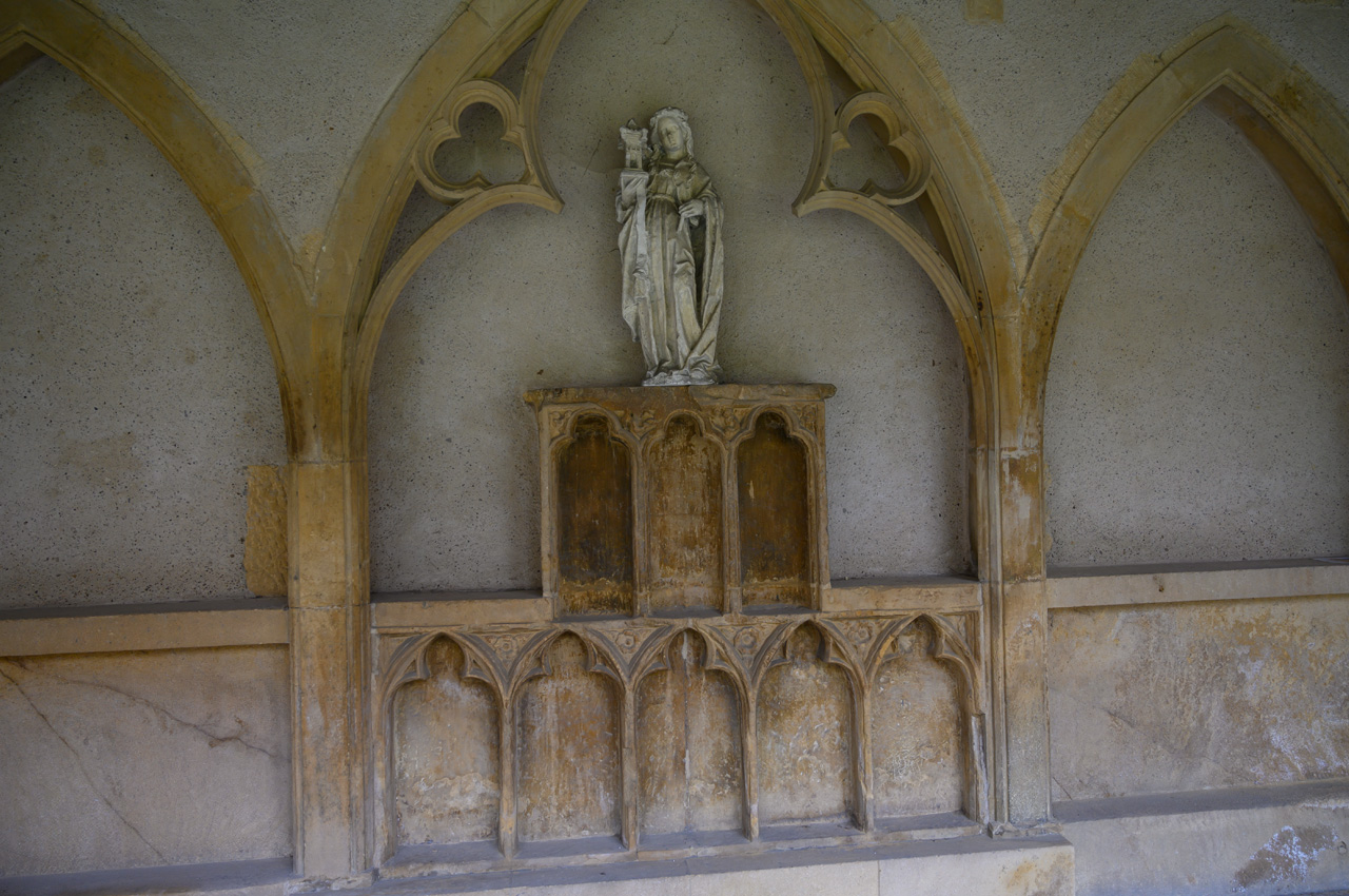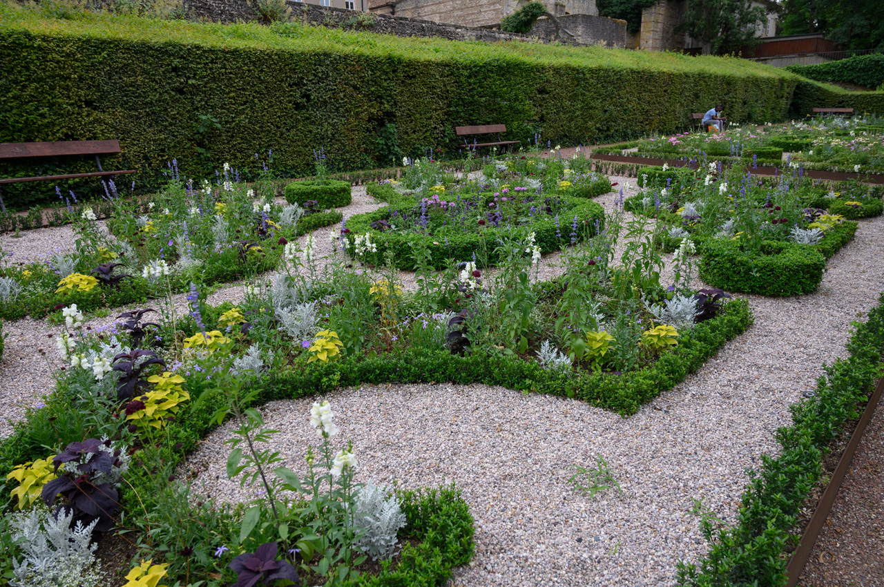 Auch heute lag das Baguett in der Gaststätte schon wieder für uns bereit und damit war das Frühstück schon mal gesichert. Wieder gegen 11:30 Uhr sind wir zur nächsten Stadtrunde aufgebrochen. Leider hatte ich gestern die Runde nicht so gut vorbereitet. So mussten wir heute noch mals mit dem gleichen Weg starten. Hinter der Moselüberquerung ging es dann aber nicht rechts herum sondern geradewegs auf den Berg. Nämlich ganz auf dem Berg steht die zweitgrößte Kirche von Metz, die Ste-Ségolène. Sie war sogar geöffnet, also stand einer Besichtigung nichts im Wege. Auch sie ist im Inneren extrem düster, lediglich der Chor ist durch die Buntglasfenster relativ hell. Sie hat auch über der Westempore ein großes Fenster was auch die Orgel teilt, was wir gestern schon mal in der Église Saint-Eucaire gesehen haben. Die Decken- und Stützpfeilerbemalung lässt darauf schließen, dass die Wände und Rippengewölbe der Kirche nicht immer fast schwarz waren, sondern wesentlich heller. Ansonsten hat die Kirche einen sehr schönen Chor mit sehenswertem Hauptaltar. Die Vierung hebt sich kaum vom Längs- bzw. Querschiff ab. Weiter ging es nun zum ehemaligen Kloster der Rekollekten in Metz (Cloître des Récollets). Hier gibt es noch den Kreuzgang und einen intakten Kräutergarten. Von hier aus ging es nun quer durch die Altstadt vorbei am Pl. Saint-Jacques zum Place de la République de Metz. Vorher hat uns Susanne aber noch bei dem Bäcker den wir schon gestern genutzt haben, zwei Brioches besorgt. Das von gestern war so lecker, dass wir heute für jeden von uns ein Brioche gekauft haben. Gleich neben dem Place de la République de Metz, gibt es eine Parkanlage mit Springbrunnen. Dort haben wir uns eine freie Bank im Schatten gekapert und haben unseren Brioch genossen. Das ist wirklich ein extrem leckeres Gebäck. Susanne will das mal zu Hause selber machen. Am westlichen Ende des Parkes fällt das Gelände zur Mosel hin stark ab. Auf einer ersten Zwischenetage gibt es eine Grottenanlage mit Wasserfontänen davor. Ein sehr schöner Anblick, eine romantische Ecke. Etwas bergauf ging es nun weiter zur St-Pierre-aux-Nonnains, eine ehemalige Abteikirche. Leider ist die Kirche vom 27. bis 30.06. geschlossen, also für uns keine Innenbesichtigung möglich. Schade, die Kirche soll sehr schön sein. Jetzt sind wir wieder zurück zum Pl. Saint-Jacques gelaufen, durch Teile der Fußgängerzone, weil an diesem Platz der Bäcker mit dem leckeren Kuchen ist, den wir uns da schon beim ersten Stadtspaziergang gekauft hatten. Als wir vorhin hier vorbei kamen, stand draußen eine lange Schlange an. Jetzt waren nur zwei Leute vor uns. Wir sind quer über den Platz gelaufen mit unserem Kuchen und sind noch einmal in die Markthalle gegangen. Da wir heute Abend noch einmal grillen wollen, haben wir uns noch frische Sachen für den Salat dazu geholt. Da gibt es einen Obst- und Gemüsestand, der seine ausgelegte Ware bedampft, damit sie frisch bleibt. Das sieht auch alles richtig appetitlich aus. Von hier aus ging es nun ohne schuldhaftes Verzögern zurück zum Womo. Dort haben wir wieder die Markise ausgefahren und es uns vor dem Womo gemütlich gemacht. Obwohl der Himmel bewölkt war, hatten wir schon wieder 25°C. Wir haben ein Stück von dem leckeren Kuchen gegessen, ein Eclair, gefüllt mit Moccacreme und oben drauf noch Cremetupfer und Verzierung. Ausgesprochen lecker, das ist wirklich etwa Besonderes.