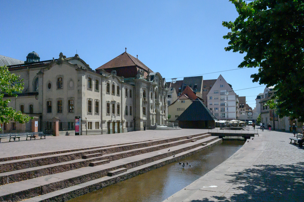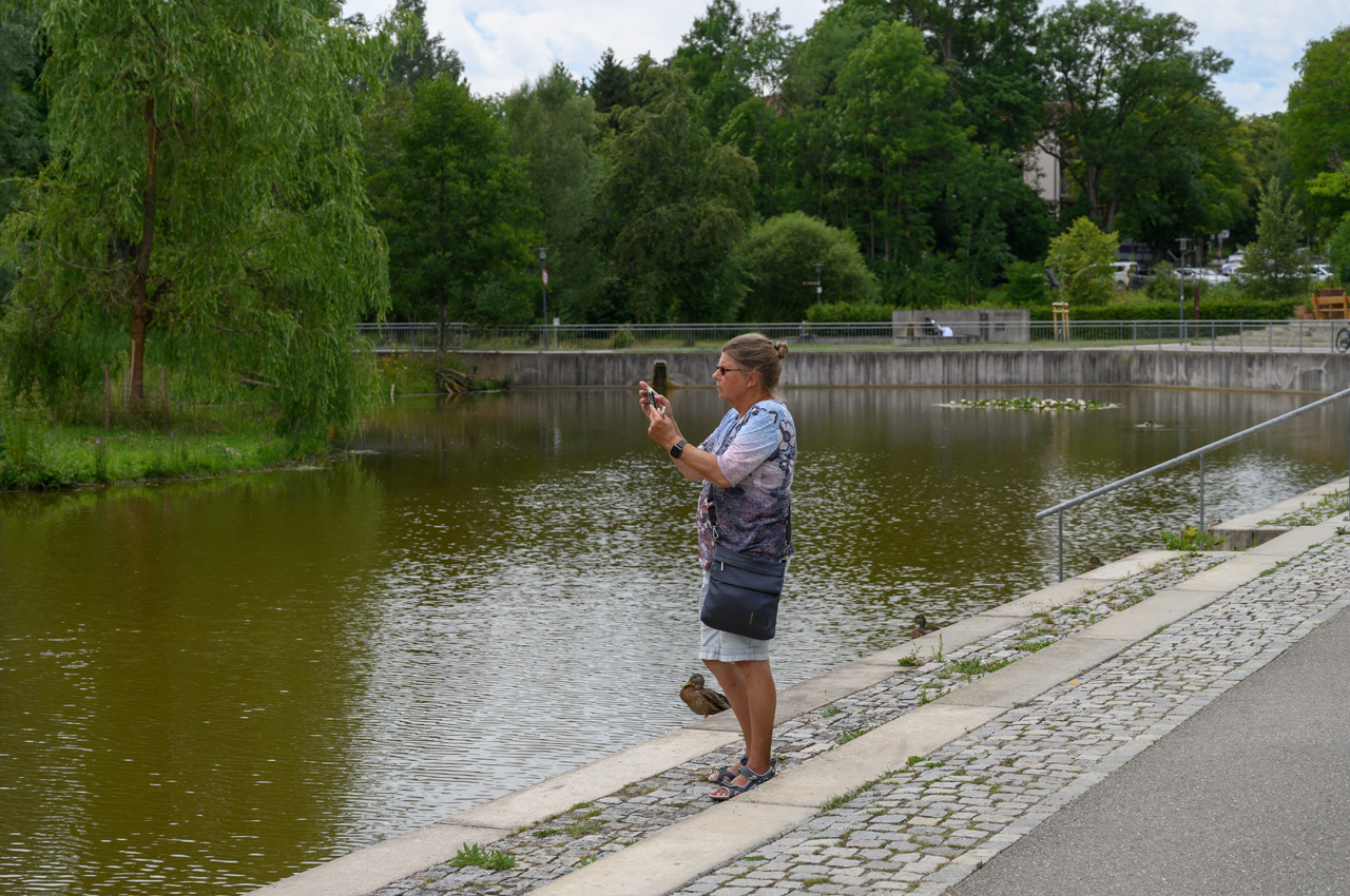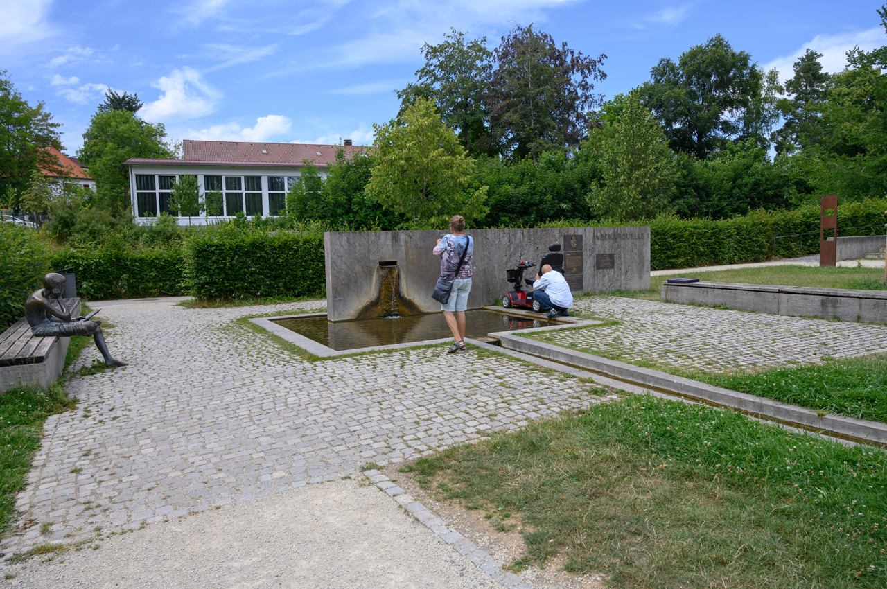 Der Weg zum Bäcker, Rezeption vom Stellplatz, war schnell erledigt und schon konnten wir zum Frühstück die frischen Brötchen genießen. Heute stand der Besuch von Schwenningen auf dem Programm. Ich habe dieses mal in das Navi nicht Schwenningen selbst, sondern die Neckarquelle als Ziel eingegeben, in der Hoffnung nicht die stark befahrene Landstraße fahren zu müssen. Hat leider nicht funktioniert, bis auf die letzten 500 Meter. Unser Navi hat uns auf den Parkplatz eines großen Waldfriedhofes geführt. Von Neckarquelle nichts sehen. Jetzt haben wir Zentrum von Schwenningen eingegeben und landeten auf dem Rathausplatz. Von hier aus haben wir einen Spaziergang gemacht, auf der Suche nach der Touristeninfo, weil wir unseren Stadtplan vergessen haben. Unsere Begeisterung hielt sich in Grenzen. Selbst die meisten Bereiche der Fußgängerzonen sind leer und besonders auffällig ist hier der Leerstand ehemaliger Ladengeschäfte. Die meisten Gebäude stammen aus der Zeit nach dem zweiten Weltkrieg. Die Touristeninfo haben wir dann am Bahnhof, direkt im Bahnhofsgebäude gefunden. Wir sind dann aber auch auf direktem Wege zurück zum NIU. Susanne hat auf ihrem Handy die Neckarquelle eingegeben und die dort aufgeführte Adresse habe ich dann in unser Navi eingegeben. Jetzt landeten wir auf einem Parkplatz von einem Sportzentrum. Aber von hier aus ging ein Weg direkt in das Schwenninger Moos. Das war jetzt schon eher ein Highlight. Hier schwirrten die unterschiedlichsten Libellenarten umher, teilweise sehr farbenprächtig. Wir waren an der europäischen Wasserscheide. Wirft man hier eine Flasche ins Wasser, kann die sich entscheiden, ob sie zum schwarzen Meer will oder in die Nordsee. Nach dem kleinen Spaziergang durch das Schwenninger Moos sind wir mit dem NIU noch zu der symbolischen Quelle des Neckars gefahren. Hier wurde im Rahmen der Landesgartenschau ein Platz eingerichtet, mit einer Steinwand, aus der Quellwasser austritt. Daneben, auf einer Bank, sitzt eine bronzene Frau, die die Quelle bestaunt. Von hier aus sind wir wieder zurück zum Womo.