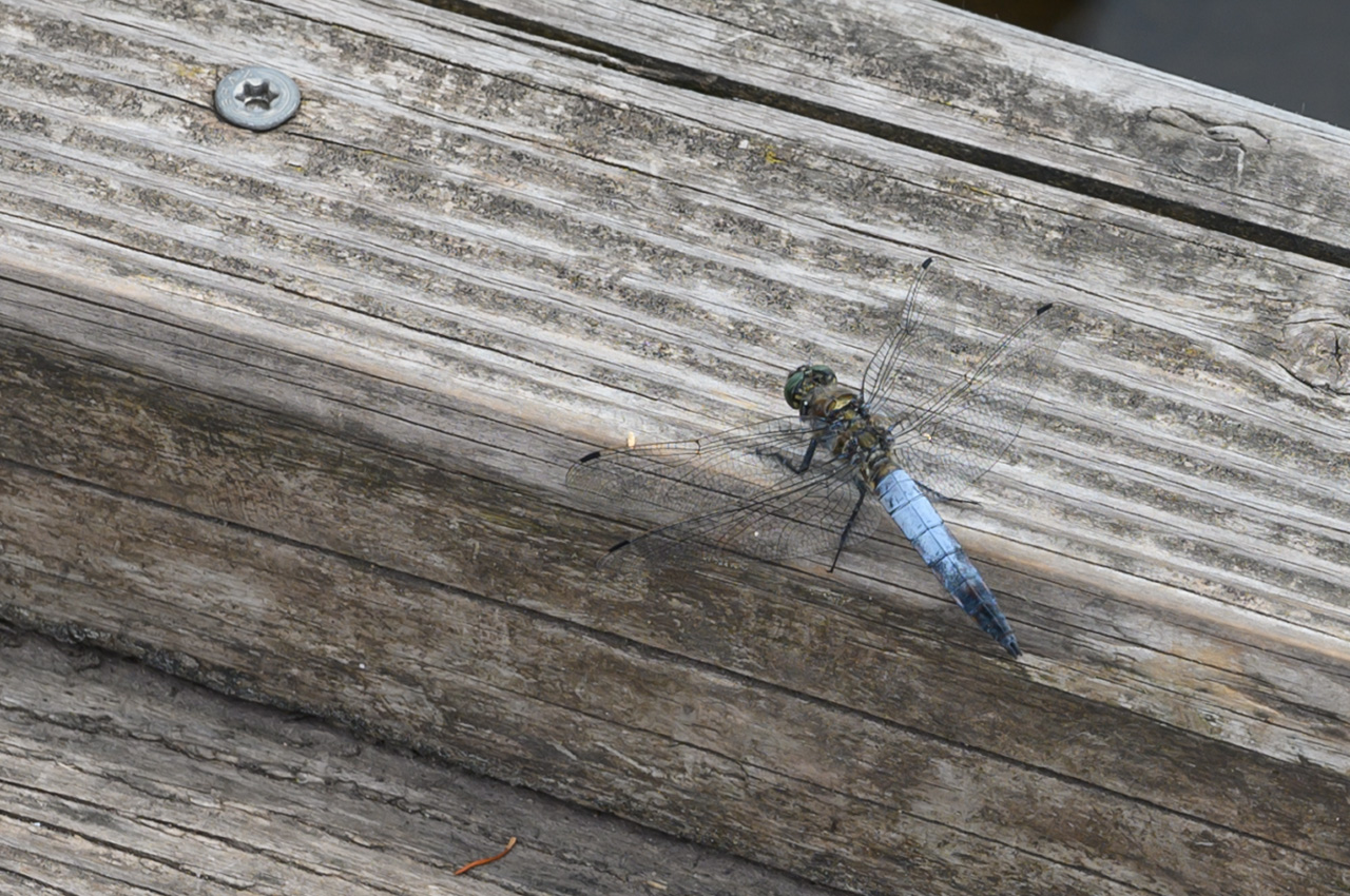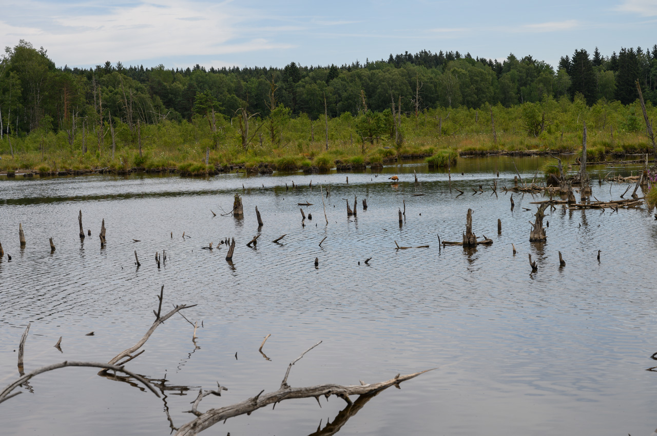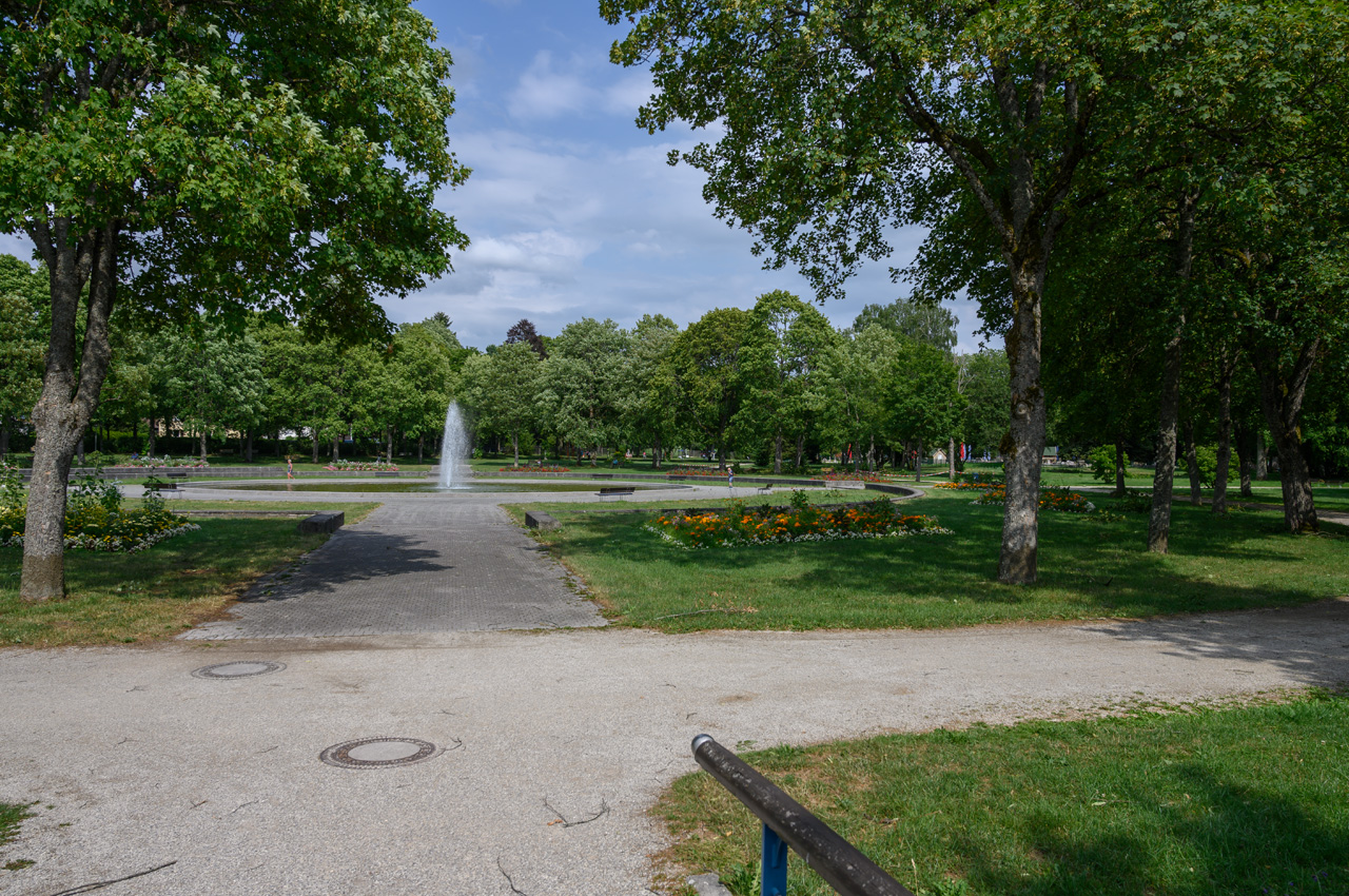 Der Weg zum Bäcker, Rezeption vom Stellplatz, war schnell erledigt und schon konnten wir zum Frühstück die frischen Brötchen genießen. Heute stand der Besuch von Schwenningen auf dem Programm. Ich habe dieses mal in das Navi nicht Schwenningen selbst, sondern die Neckarquelle als Ziel eingegeben, in der Hoffnung nicht die stark befahrene Landstraße fahren zu müssen. Hat leider nicht funktioniert, bis auf die letzten 500 Meter. Unser Navi hat uns auf den Parkplatz eines großen Waldfriedhofes geführt. Von Neckarquelle nichts sehen. Jetzt haben wir Zentrum von Schwenningen eingegeben und landeten auf dem Rathausplatz. Von hier aus haben wir einen Spaziergang gemacht, auf der Suche nach der Touristeninfo, weil wir unseren Stadtplan vergessen haben. Unsere Begeisterung hielt sich in Grenzen. Selbst die meisten Bereiche der Fußgängerzonen sind leer und besonders auffällig ist hier der Leerstand ehemaliger Ladengeschäfte. Die meisten Gebäude stammen aus der Zeit nach dem zweiten Weltkrieg. Die Touristeninfo haben wir dann am Bahnhof, direkt im Bahnhofsgebäude gefunden. Wir sind dann aber auch auf direktem Wege zurück zum NIU. Susanne hat auf ihrem Handy die Neckarquelle eingegeben und die dort aufgeführte Adresse habe ich dann in unser Navi eingegeben. Jetzt landeten wir auf einem Parkplatz von einem Sportzentrum. Aber von hier aus ging ein Weg direkt in das Schwenninger Moos. Das war jetzt schon eher ein Highlight. Hier schwirrten die unterschiedlichsten Libellenarten umher, teilweise sehr farbenprächtig. Wir waren an der europäischen Wasserscheide. Wirft man hier eine Flasche ins Wasser, kann die sich entscheiden, ob sie zum schwarzen Meer will oder in die Nordsee. Nach dem kleinen Spaziergang durch das Schwenninger Moos sind wir mit dem NIU noch zu der symbolischen Quelle des Neckars gefahren. Hier wurde im Rahmen der Landesgartenschau ein Platz eingerichtet, mit einer Steinwand, aus der Quellwasser austritt. Daneben, auf einer Bank, sitzt eine bronzene Frau, die die Quelle bestaunt. Von hier aus sind wir wieder zurück zum Womo.