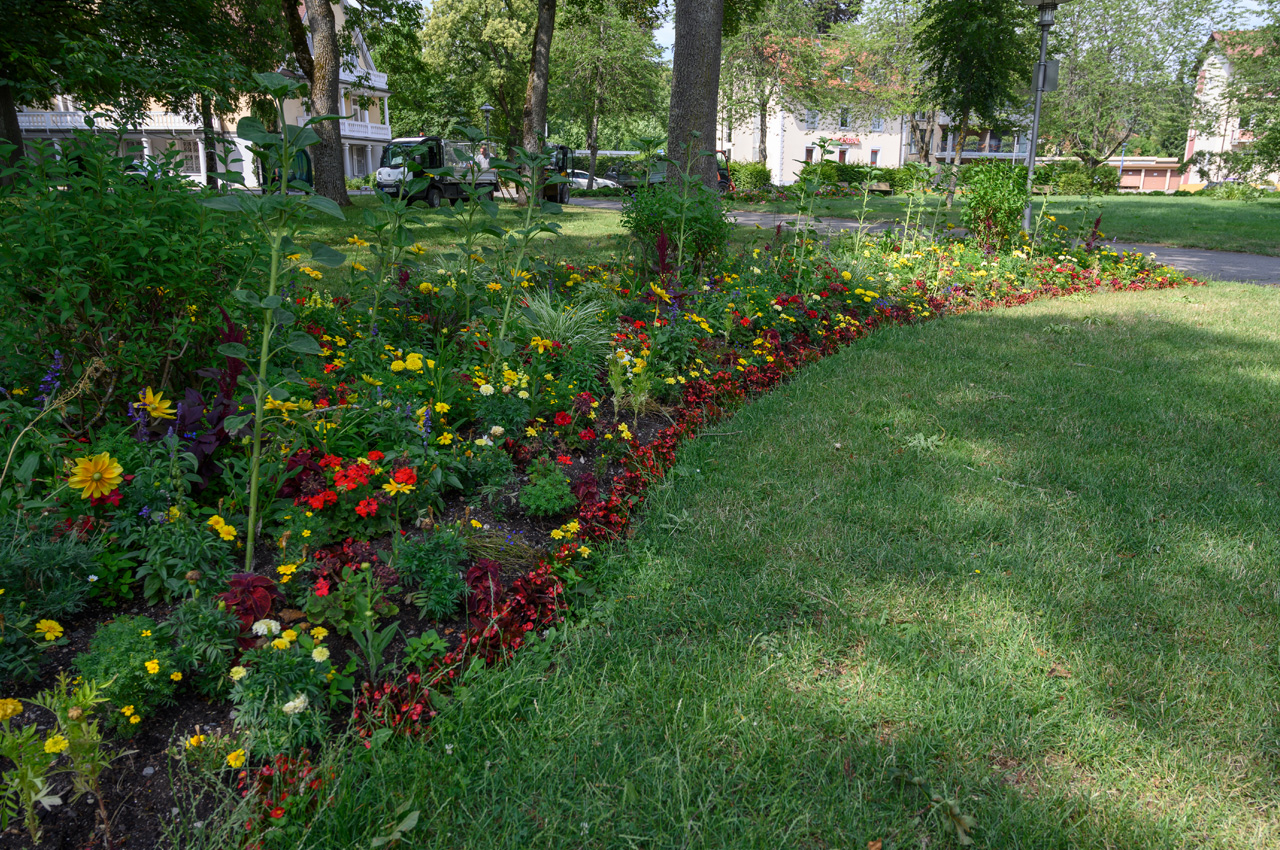 An der Rezeption haben wir erfahren, dass in Luxemburg heute Nationalfeiertag ist. Bei unserem ersten Spaziergang durch den kleinen Ort, der fast nur aus sehr modernen Neubauten besteht, stießen wir dann auch auf einen kleinen Festbereich wo eine Kapelle gespielt hat. Der Park hinter dem Rathaus hätte in so manchen Bäderorten jeweils den Kurpark in den Schtten gestellt. Sehr schön mit üppiger Blumenbepflanzung. Zur Zeit blühen dort die Rosen, was durch die Farbenpracht ein schönes Bild ergibt. An der Bushaltestelle haben wir erfahren, das alle Nahverkehrsmittel wie Bus und Straßenbahn in Luxemburg kostenlos benutzt werden können. Daraufhin haben wir beschlossen, morgen mit dem Bus in die Altstadt zu fahren. Der Bus fährt alle halbe Stunde.