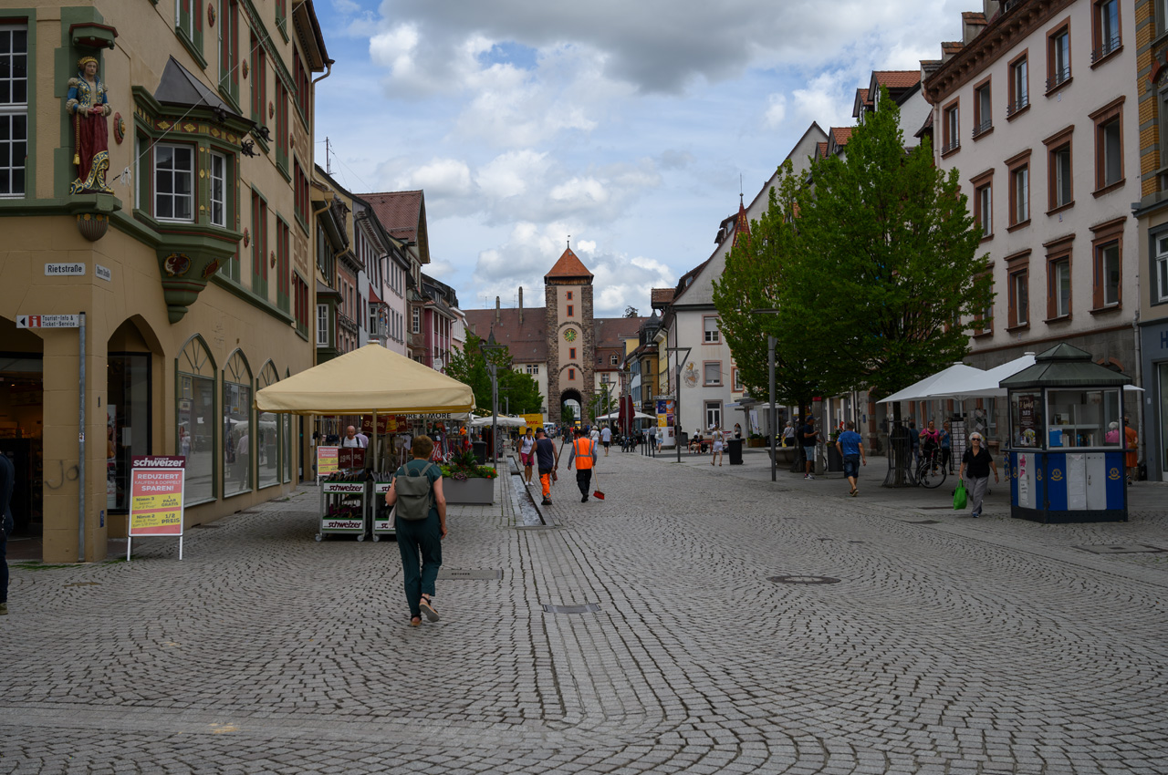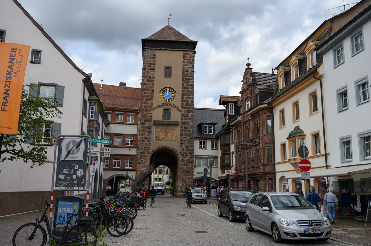 Heute war Brötchentest für die vom Stellplatz gelieferten Brötchen, von denen wir bewusst erst mal nur für einen Tag bestellt haben. Test bestanden, sie sind nicht der Renner, aber schmecken ganz gut und sind cross. Susanne hat für die nächsten drei Tage gleich nachgeordert. Über nacht hat es sich merklich abgekühlt, die tiefste der Nacht war 10°C. Was für ein krasser Gegensatz zu den letzten Nächten bis zu dem großen Gewitter. Nach dem Frühstück sind wir zeitnah auf unseren NIU gestiegen. Auf dem NAVI habe ich Schwenningen eingegeben. Warum uns dieses intelligente Gerät in einem weiten Bogen erst nach Villingen geführt hat blieb uns ein Rätsel. Als wir aber an einem der Stadttore vorbeifuhren, haben wir uns kurze Hand entschlossen, uns erst Villingen anzusehen. Die Stadt innerhalb der ehemaligen Stadtmauer hat uns sehr schnell positiv beeindruckt. Sie ist relativ klein, aber sehenswert. Es gibt neben den beiden Kirchen Villinger Münster und St. Georg diverse historische Gebäude, die sehr sehenswert sind. Die Fußgängerzonen leben und bieten mit ihren offensichtlich florierenden Geschäften gute Einkaufsmöglichkeiten. Die haben wir dann auch genutzt, ich wollte noch eine einfarbige kurze Hose haben. Dass daraus dann gleich zwei wurden, lag unter anderem auch an dem Rabattsystem des Ladens. Nach unserem Rundgang durch die Altstadt ging es mit dem NIU wieder zurück zum Womo.