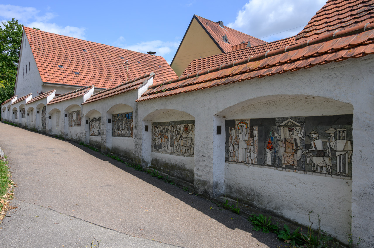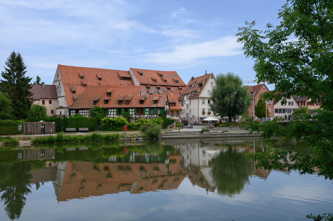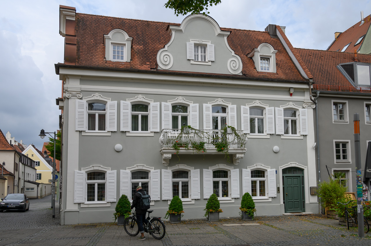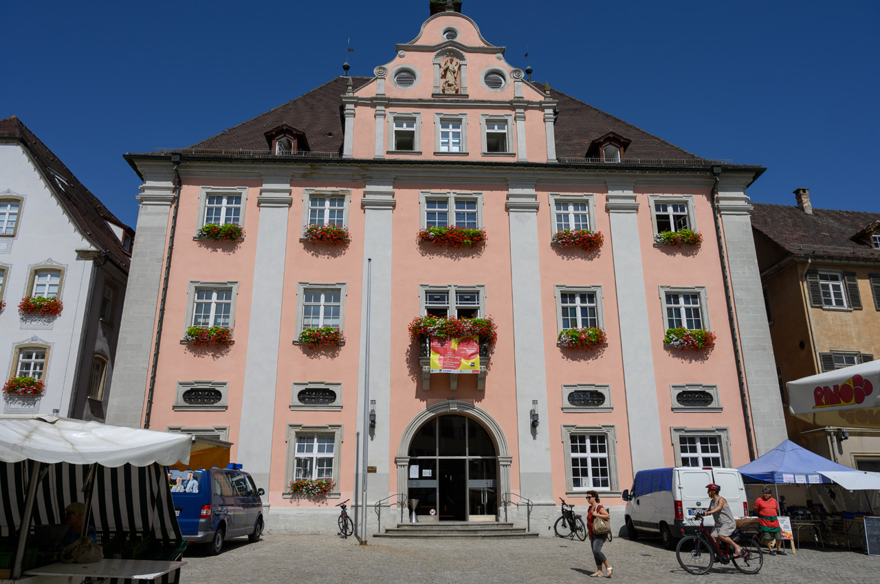 Nach dem Frühstück sind wir in die Innenstadt von Wertingen gelaufen. Das ist eine relativ kleine Stadt, aber mit einem schön gestaltetem Zentrum. Auf dem Marktplatz haben wir einen Stand der AFD vorgefunden, die sehr aktiv mit den Leuten diskutiert haben. Von allen anderen Parteien war nichts. Wieso überlässt man denen so kampflos das Feld und das, wo im Herbst hier doch Landtagswahlen sind. Das ehemalige Schloss sieht von außen sehr gepflegt aus, beherbergt jetzt aber die Gemeindevertretung. Die Kirche St. Martin am Markt ist sehr sehenswert. Sie hat einen Barockaltar und eine extrem ausgeprägte Stuckdecke. Die gesamte Ausstattung ist sehr prunktvoll. Eine besonders schöner Bereich ist bei der ehemaligen Getreide- und Ölmühle. Das ehemalige Wasserrad dreht sich heute noch. Es ist mit hölzernen Schöpfbechern ausgestattet, die ein kleines Rinnsal versorgen, was ein Stück weiter wieder ein kleines Rad antrieb. Parallel zu diesen auschmückenden Dingen wird aber über den alten Mühlkanal auch eine Turbine angetrieben, die Strom erzeugt.