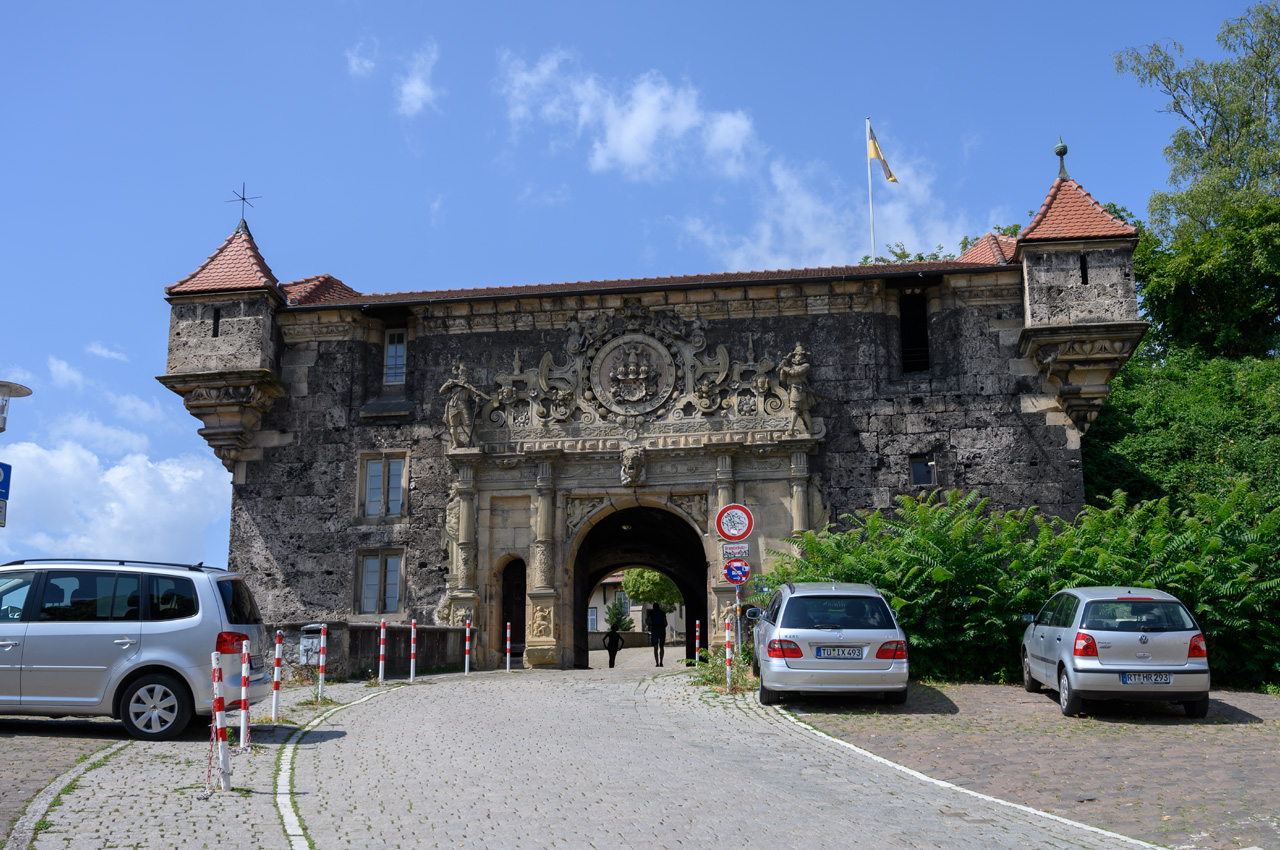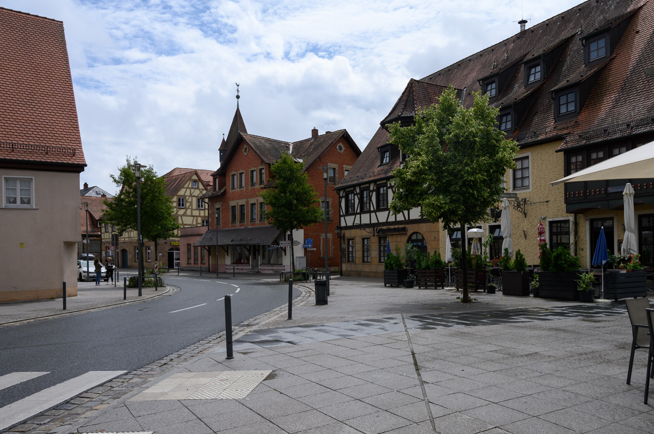 Es hat nicht nur die ganze Nacht geregnet, nein auch als wir heute aufgestanden sind hat es noch geregnet. Susanne hatte mit mir Mitleid und hatte alles an Brötchenresten zusmmengekramt und nachdem sie aufgetoastet waren, waren sie auch wieder lecker. Der Regen hielt bis fast 12:00 Uhr durch. Ich habe mich dann mit der GoPro und der Drohne im Gepäck auf den Weg gemacht. Ich bin im wesentlichen den empfohlenen Rundweg gelaufen, vorbei an allen POI´s, die wir schon 2018 aufgesucht hatten. Ich bin auch vorbei an dem großen Bierzelt, wo heute eine geschlossene Gesellschaft feierte, die bayrische Sparkasse. Obwohl es zwischendurch sogar etwas zu nieseln anfing, habe ich tapfer durchgehalten, weil ich unbedingt mein Video von Kulmbach haben wollte. Um eine Luftaufnahme von der Burg zu bekommen, bin ich auch nochmal zur Plattenburg aufgestiegen. Auf etwa halber Höhe habe ich dann die Drohne gestartet. Das Problem ist, dass die Burg auf ca. 120 Meter Höhe steht. Ich darf mit der Drohne aber offiziell nur 100 Meter hoch steigen. Das bedeutet, um die Burg aus der Vogelperspektive aufnehmen zu können, wäre es am besten gewesen, sie vom Niveau der Burg aus aufsteigen zu lassen. Dazu hatte ich aber nicht so wirklich Lust. In der Zwischenzeit hat der Wind auch ziemlich aufgefrischt und das Sicherheitssystem der Drohne maulte ständig, zu starker Wind. Der Wind hat offensichtlich die Regenwolken vertrieben, denn auf dem Rest meiner Tour blieb es trocken.