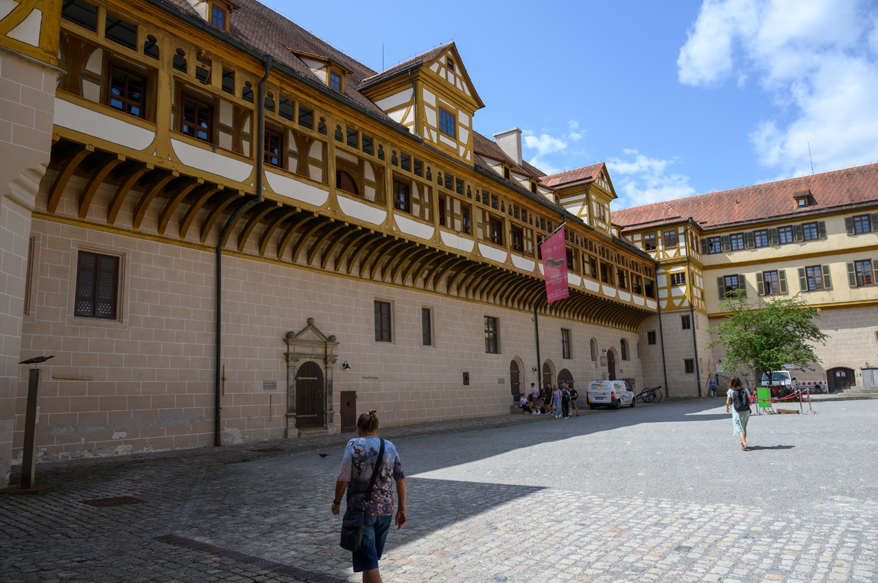 Von Feucht waren wir schnell auf der A9, die wir störungsfrei fast bis Kulmbach durchfahren konnten. Ca. 18 km vor Kulmbach haben wir dann die A9 verlassen. Den Platz haben wir schnell wieder gefunden und es war auch noch genügend frei. Nachdem unser Womo fertig war für den Aufebthalt, gab es unseren üblichen Zwischenkaffee und danach sind wir in Richtung Altstadt gelaufen. Unterwegs haben wir schon gemerkt, dass in Kulmbach z. Zt. die Kulmbacher Bierwoche läuft. Auf dem Festplatz steht ein riesiges Bierzelt mit Bühne und außenherum Ausschank- und Küchenbereiche. Die Kapelle hat man bis zum Stellplatz gehört. Unser Ziel war der Marktplatz, wor wir uns bei dem guten Metzger mit frischer Wurst versorgen wollen. Auf dem Marktplatz angekommen sind wir erstmal hin und her geirrt, bis uns bewußt wurde, den Metzger gibt es nicht mehr. Auch die dazugehörige Würstlebude gibt es auch nicht mehr. Beim weiteren Spaziergang viel uns auch ein ziemlich hoher Leerstand an Gewerberäumen auf. Hier scheint einiges den Bach herunterzugehen. Für unser Abendbrot haben wir uns beim Bäcker ein frisches Brot gekauft.