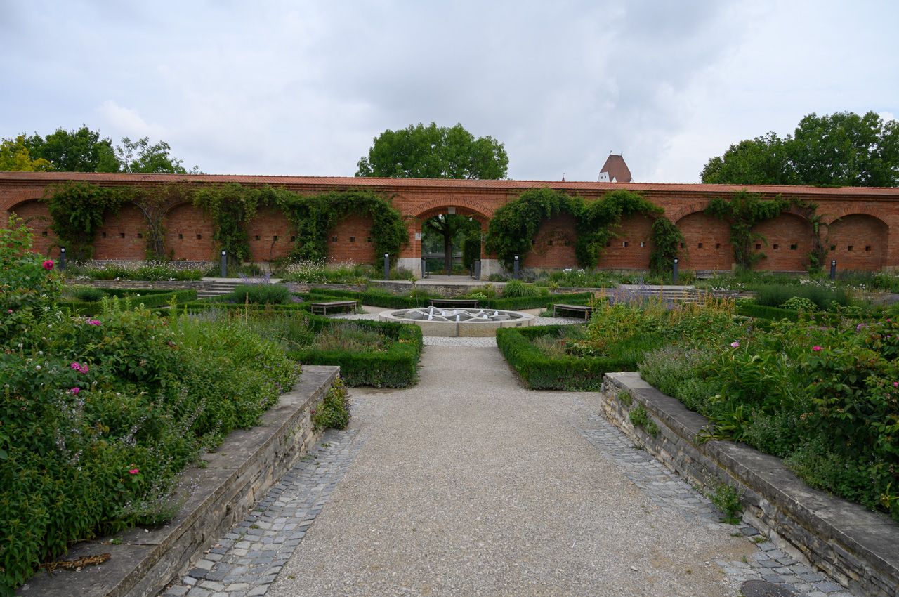 Susanne war erstaunt, als ich nach wenigen Minuten mit frischen Brötchen wieder vor der Tür stand. Ja der Weg zum Bäcker ist hier recht kurz. Das Frühstück versprach einen guten Start in den Tag. Der Himmel sah schon mal nicht danach aus. Komplett bewölkt und es hatte sich merklich abgekühlt. Draußen waren nur noch 17°C. Der Wetterbericht versprach auch nicht unbedingt schönes Wetter für den Rest des Tages. Die höchste Tagestemperatur war für 19°C prognostiziert. Bis ca. 11:30 Uhr haben wir uns im Womo beschäftigt. Es hat erfolgreich so alle 10 Minuten geschüttet und dazwischen genieselt, bzw. geregnet. Endlich gegen ca. 12:00 Uhr haben wir uns dann angezogen, weil es am Himmel etwas heller wurde. Als wir fertig waren und starten wollten, begann der nächste Wolkenbruch, der dann in Regen überging. So gegen 13:00 Uhr wurde es wieder etwas heller, also sind wir schnell gestartet. Der Himmel riss jetzt zu unserem Erstaunen immer weiter auf und es kam sogar die Sonne heraus. Ich hatte dieses mal die GoPro im Einsatz und darum haben wir einige Stationen, die wir schon gestern aufgesucht haben, nochmals besucht. Die Ausbeute in der heute offenen Touristeninfo beschränkte sich auf ein Blatt mit einem Altstadtplan. Ein Büchlein, Ingolstadt an einem Tag, sollten wir in einer Buchhandlung kaufen, was wir dann auch getan haben. Sich in Ingolstadt zu orientieren ist nicht ganz so einfach. Es gibt keinerlei Hinweisschilder auf POI`s. An manchen Sehenswürdigkeiten stehen Tafeln mit einer Altstadtkarte in der die POI`s verzeichnet sind. Das ist wenig hilfreich, man muss die Karte im Kopf speichern und man muss sich die Straßennamen merken. Das ist sehr schwach. Touristen stehen hier offensichtlich nicht im Fokus. Die Franziskanerkirche ist zur Zeit geschlossen. Ein Schild neben der Tür informierte, dass ab September wieder mit Gottesdiensten zu rechnen ist. Vorbei am Tilly-Haus sind wir zu der Asamkirche Maria de Victoria gelaufen. Um diese Kirche besichtigen zu können, muss man Eintritt bezahlen. Die Kirche wird nur noch für Konzerte und als Museum genutzt. Das Schiff dieser Kirche ist ein einziges Kunstwerk. Man weiß gar nicht, wo man zuerst hinsehen soll. Die Decke ziert ein riesiges Fresco. Es gibt keinen Chor. Der Hochaltar steht in einer eingesetzten Apsis. In einem kleinen Nebenraum befindet sich eine kleine Ausstellung wertvoller Kirchengegenständen. Bevor wir zurück zum Womo gegengen sind, waren wir in dem Garten der alten Pathologie. In dem Garten werden Kräuter und Pflanzen angebaut, die eine pathologische Relevanz haben. Darunter auch eine ganze Abteilung giftiger Pflanzen. Der Garten ist sehr schön gestaltet. Auf das Museum hatten wir keine Lust.