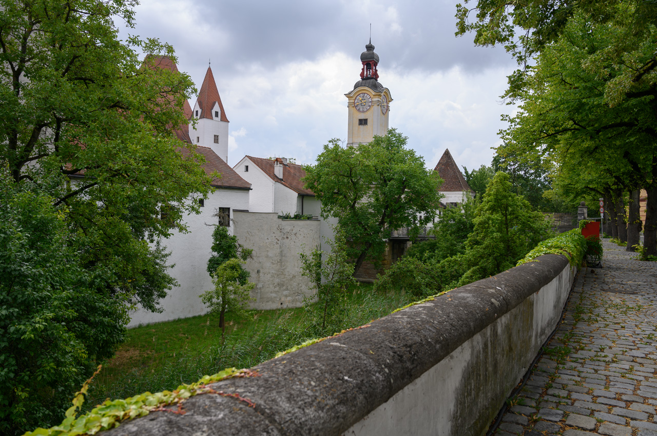 Wir haben Kaffee getrunken und den restlichen Kuchen aus der Bäckerei Ihlau in Wertingen, von gestern, geschlemmt. Der war wirklich gut. Nach dem Kaffeetrinken bin ich nochmal alleine losgegangen, Susannes Fuß wird schon wieder schlimmer, um heraus zu finden, wo ich morgen in der Früh Brötchen herbekomme. In meinen Unterlagen war ein EDEKA in 550 Meter Entfernung aufgeführt. Ich habe aber schon nach 350 Meter einen in Google gefunden. Auf den bin ich zielstrebig zugegangen und der hat tatsächlich sogar offen. Das könnte dann gut klappen. Ich habe noch eine kleine Runde entlang der ehemaligen Stadtmauer gemacht und bin dann zurück zum Womo. Jetzt fing es auch schon wieder an zu regnen.