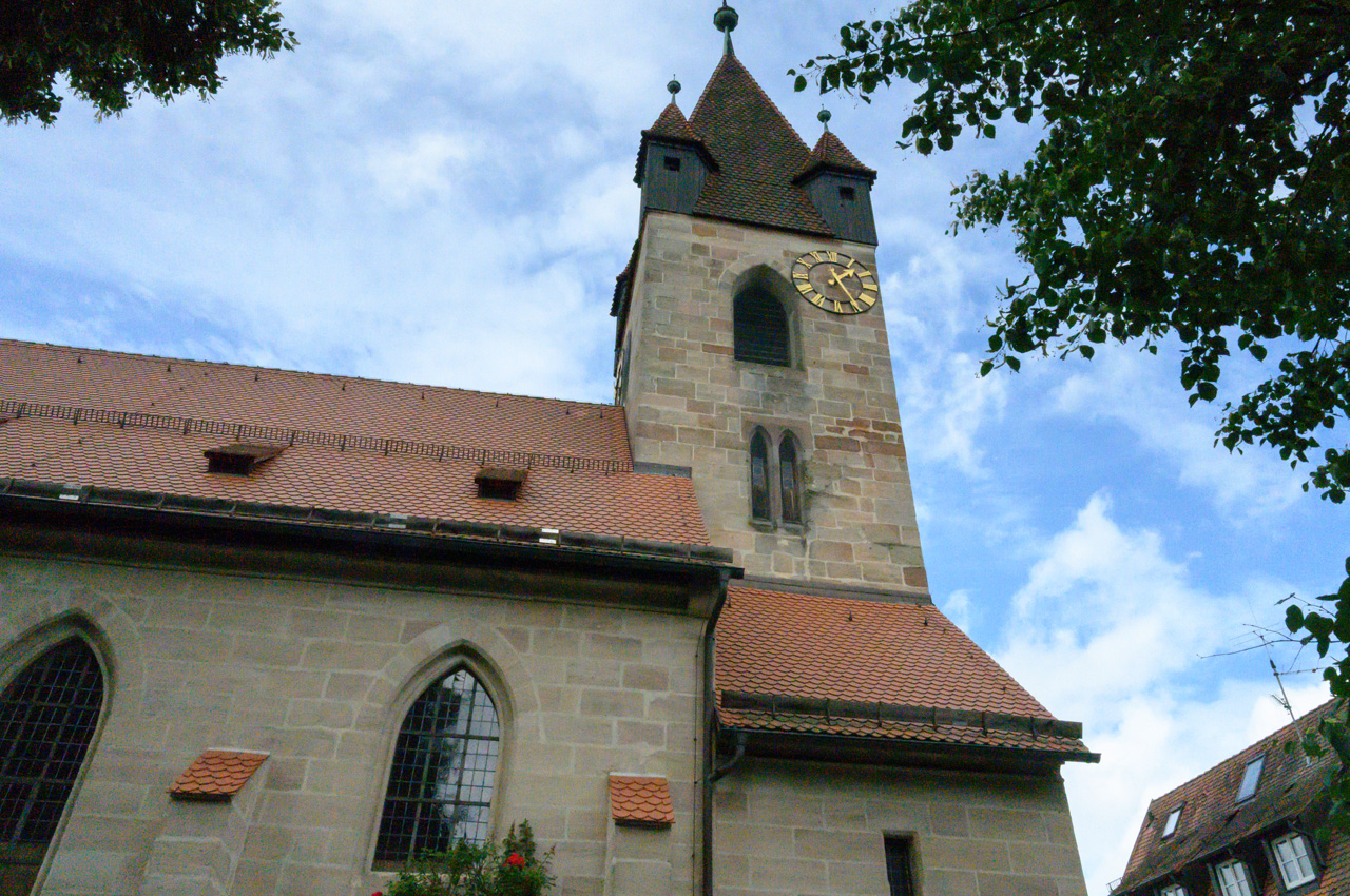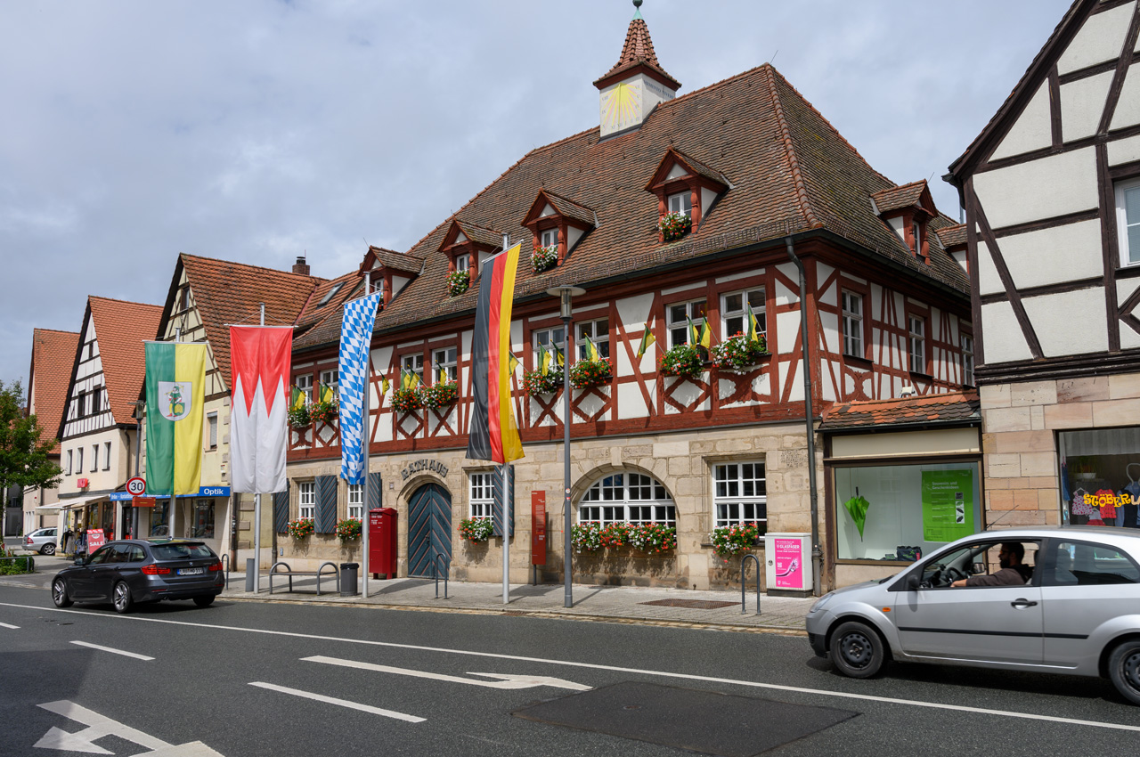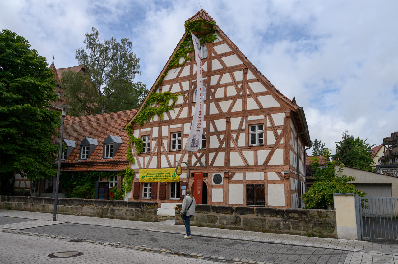 Heute Nacht, wann immer wir wach waren, hat es geregnet und der Wetterbericht lässt für heute nicht gerade einen trockenen Tag erwarten. Mit diesen Aussichten hatten wir schon gestern beschlossen, unseren zweiten Besuchstag von Nürnberg auf den Sonntag zu legen. Das war ganz offensichtlich auch richtig so. Ich hatte zwar zum Brötchen holen eine kurze Regenpause erwischt, aber bis ca. 12:30 Uhr hat es mehr oder weniger ununterbrochen geregnet. Von 13:00 Uhr bis ca 16:00 Uhr prognostizierte der Wetterbericht nur 30% bzw. kurzzeitig mal 40% Regenwahrscheinlichkeit. Wir sind mit zwei Regenschirmen aufgebrochen in Richtung Innenstadt. Das der Ort Feucht nicht der Renner ist, war uns bewusst, umso positiver erstaunt waren wir über die schöne, kleine Innenstadt, rings um das Rathaus und zwei Kirchen, won nur die katholische zugänglich war. Interessant, das hier relativ eng beieinander drei Schlösser sind. Allerdings sind alle drei nicht zu besichtigen, sie werden von der Gemeinde für unterschiedliche Zwecke genutzt sind aber ausnahmslos in gutem Zustand.