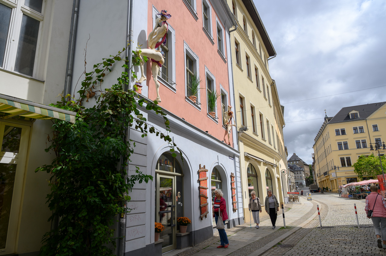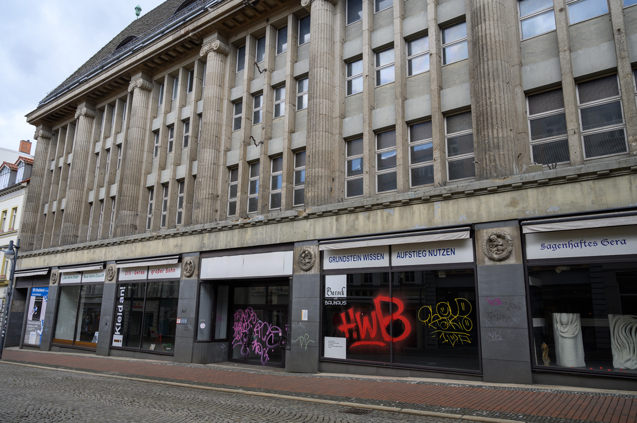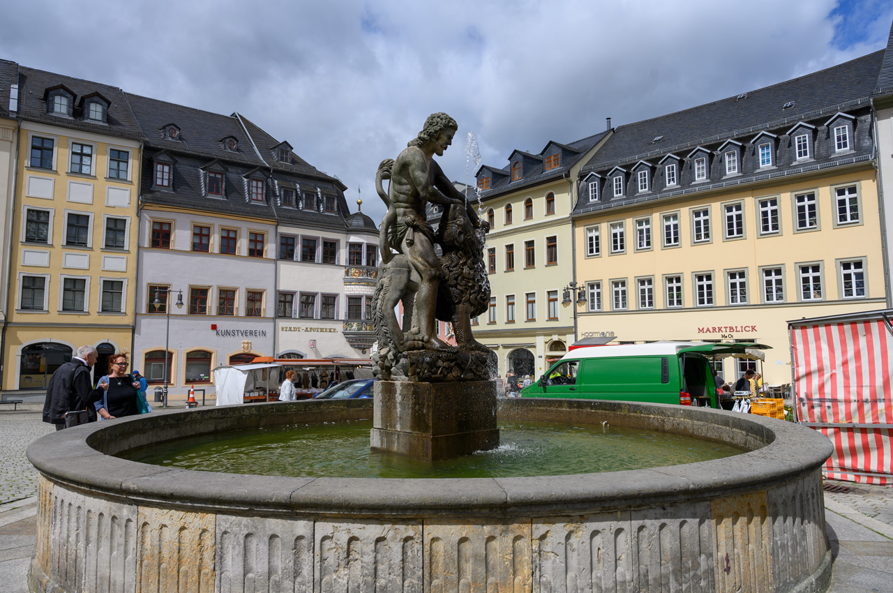 Laut Eigentümerin des Stellplatzes sollte heute gegen 09:00 Uhr ein Bäckerwagen kommen. Darauf haben wir uns verlassen und ich habe schon ca. 10 Minuten vor dem Termin vor dem Platz gestanden und auf den Bäcker gewartet. 10 Minuten nach 09:00 Uhr habe ich das Unterfangen abgebrochen. Susanne hatte in der Zwischenzeit noch Toasties ausgebuddelt. Mal abgesehen von dem Ärgernis mit dem Ausbleiben des Bäckers haben wir dann trotzdem gut gefrühstückt. Nach dem Frühstück habe ich unseren NIU startklar für einen Innenstadtbesuch von Gera gemacht. Am Morgen hatte der Wind kräftig aufgefrischt und blies in Böen schon ziemlich heftig. Wir haben unseren NIU am Rutheneum abgestellt. Von da aus waren wir schnell am Marktplatz mit der Touristeninformation. Hier haben wir uns mit entsprechendem Infomaterial über Gera ausgestattet. Der Marktplatz ist sehr schön. Er hat ringsherum noch historische Bebauung, die nach der Wende wieder ihren alten Glanz zurückbekommen hat. Ein besonderes Juwel ist dabei das Rathausgebäude mit seinem markantem Turm. Von hier aus sind wir auf den Nikolaiberg gestiegen, um der Salvatorkirche einen Besuch abzustatten, was leider nur von außen möglich ist. Die Kirche war verschlossen und es gab auch keine Infos zu Öffnungszeiten. Von da aus sind wir vorbei am Museum für Naturkunde, hier sind auch die Höhlergänge, wieder zurück in die Fußgängerzone gelaufen. Die Höhlergänge haben wir nicht besucht, nachdem wir hörten, dass darin mehr als 164 Stufen zu überwinden sind. Außerdem kann man sie nur in Verbindung mit einer Führung besichtigen. Die Fußgängerzone macht einen eher traurigen Eindruck. Es gibt hier sehr viel Leerstand an Einzelhandelsgeschäftsräumen. Die Fußgängerzone endet in einem Bereich der sehr stark von der DDR-Zeit geprägt wurde. Hier steht das ebenfalls noch aus der DDR-Zeit stammende Kongresszentrum mit den typischen Kupferblendscheiben. Aber auch die riesig breiten Straßenflächen und Freiplätze. Man merkt, dass Land hier keinen Marktwert hatte. Wir sind mit dem NIU dann weiter zur Orangerie gefahren. Die Orangerie ist heute Kunstmuseum und sehr schön anzusehen. Auch der Park der zwischen ihr und dem Theater liegt macht einen sehr gepflegten Eindruck. Von der Orangerie sind wir in Richtung weiße Elster gelaufen und dort über die Brücke zur St. Marienkirche. Rechts und links der Allee, die dort hinführt, stehen viele sehenswerte Villen aus der Hochblüte Geras in dem beginnenden Industriezeitalter. Das Schloss Osterstein was einst hoch über der weißen Elster thronte existiert nicht mehr, aber einige der Wirtschaftsgebäude und der dazugehörige Gutshof sind noch vorhanden. Die Gebäude des ehemaligen Gutshofes vom Schloss sind in einem äußerst maroden Zustand, trotzdem sind offensichtlich einige Wohnungen darin noch vermietet. Die St. Marienkirche hätten wir uns gerne auch von innen angesehen, sie ist aber nur an einigen Tagen und dann nur an Nachmittagen für 1,5 Stunden geöffnet. Neben der Kirche steht das Haus in dem Otto Dix geboren wurde. Das Haus beherbergt heute auch ein Otto-Dix-Museum. Wir sind über den Hofwiesenpark wieder zurück zur Orangerie gelaufen und auf unseren NIU gestiegen. Mit einem Zwischenstopp bei einem Bäcker sind wir wieder bei unserem Womo gelandet. Bei dem Bäcker haben wir uns mit Brötchen für morgen Früh versorgt. Auf den blöden Bäckerwagen fallen wir nicht nochmal herein.