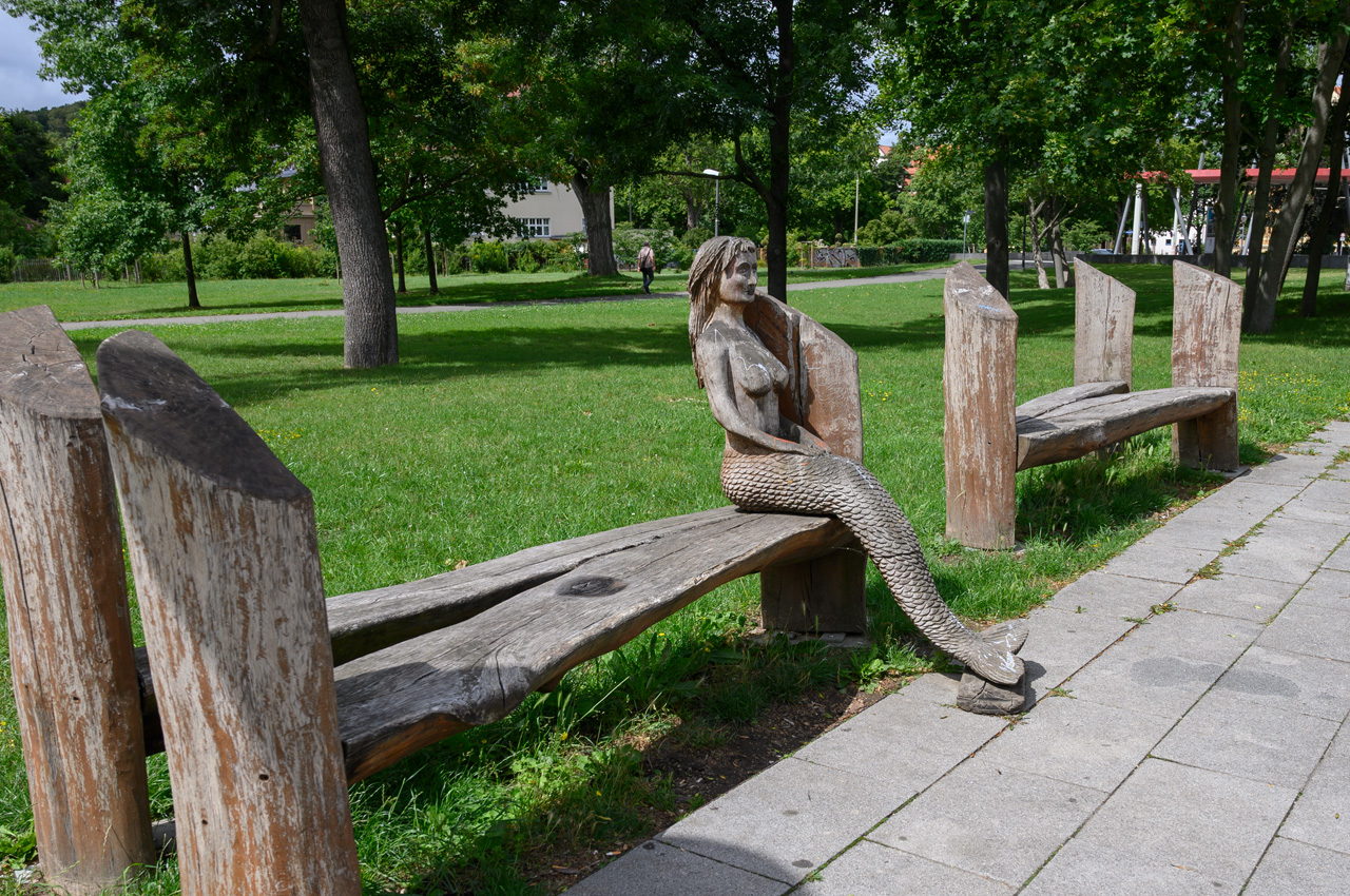 Trotz der hohen Temperatur, wir hatten 29°C, sind wir in die Innenstadt gelaufen. Mal abgesehen von dem leckeren Eis was wir am Marktplatz genossen haben, war unser erster Eindruck eher negativ. Viele ungepflegte Häuser und Einrichtungen. Keinerlei Infoschilder, keine Papierkörbe und dementsprechend liegt auch überall Müll und Unrat herum. Die Stadt macht als Bäderstadt einen heruntergekommenen Eindruck. Dem gegenüber, sind aber die Gaststättenpreise relativ hoch. Da war es in Marburg preiswerter. Den Rest des Tages haben wir vor bzw. in dem Womo verbracht.