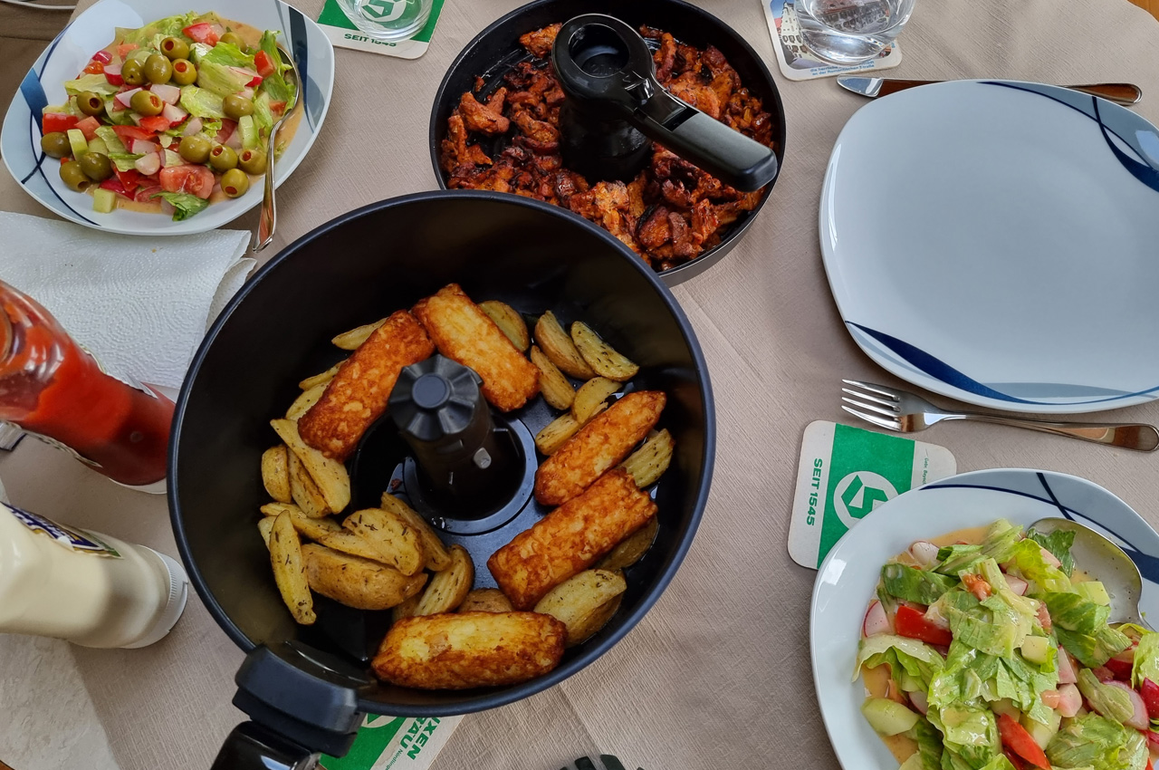 Zum Abendbrot haben wir gegrillt und unsere Heißluftfriteuse eingesetzt. Dieses mal waren die Kartoffelecken richtig Spitze. Besonders die gefüllten Kartoffeltaschen waren sehr lecker. Was für ein tolles Essen.
