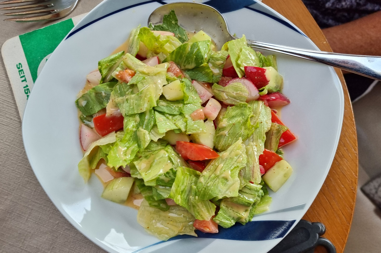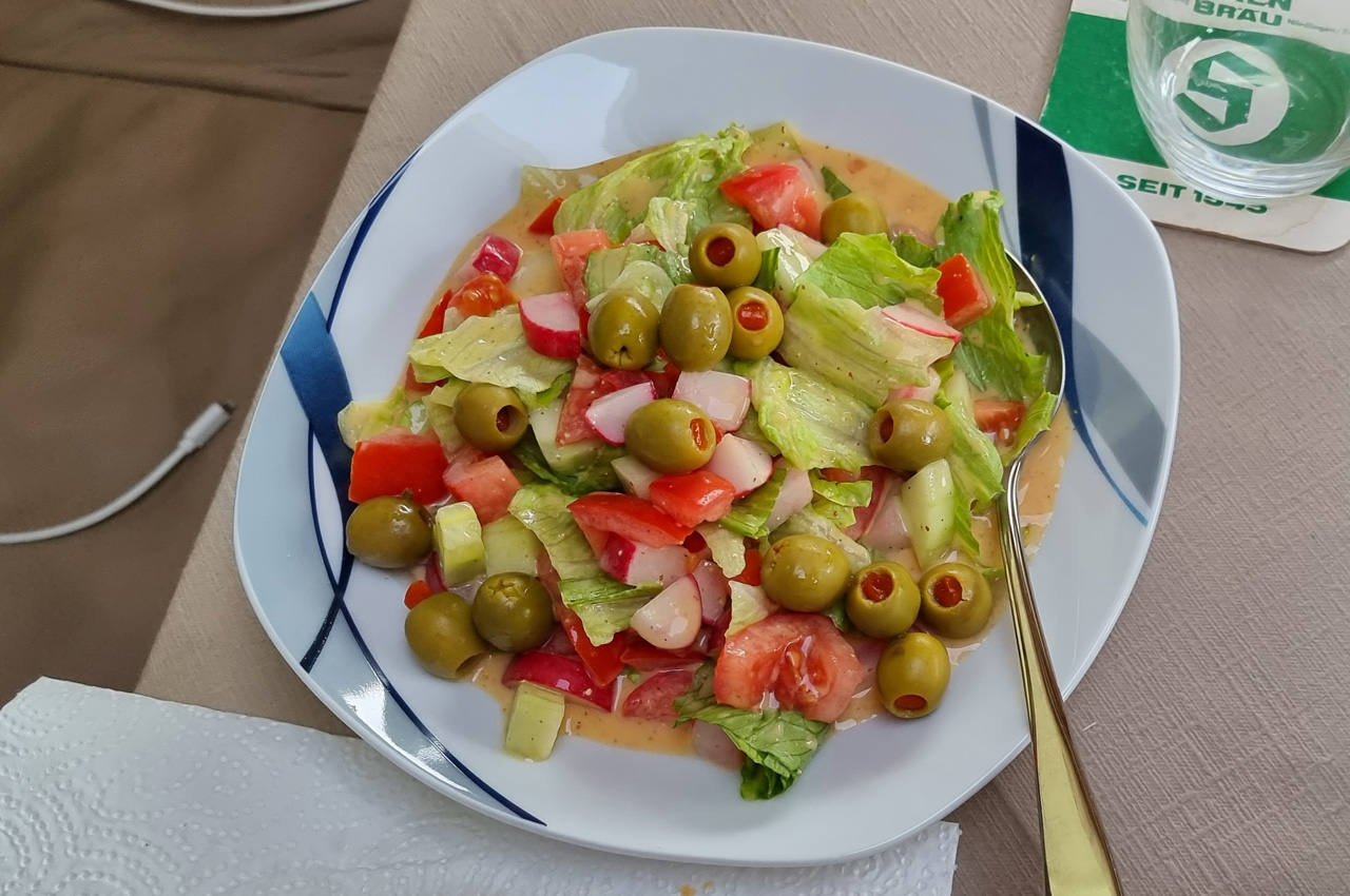 Gegen 18:00 Uhr sind wir in die Gaststätte an unserem Platz gegangen und haben dort gegessen, unter Einlösung unserer Platzgutscheine. Das Essen ist nicht das Gelbe vom Ei, aber man kommt bequem dazu und preiswert ist es auch.