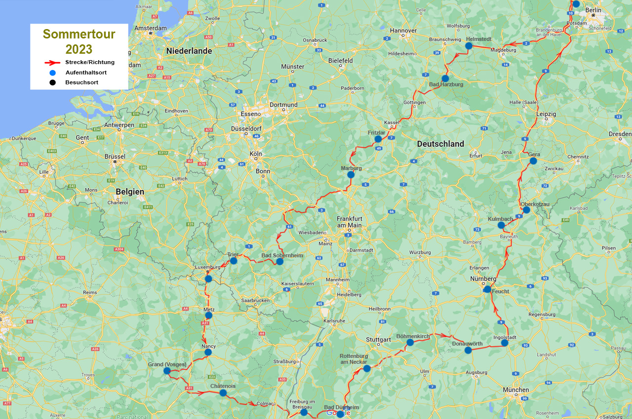 Start der Tour am Donnerstag, den 08.06.2023 und Ende am Samstag, den 05.08.2023