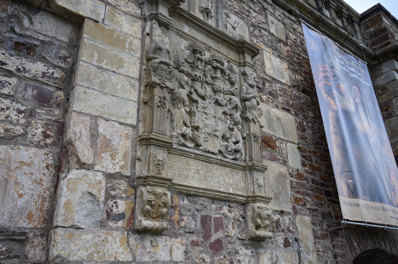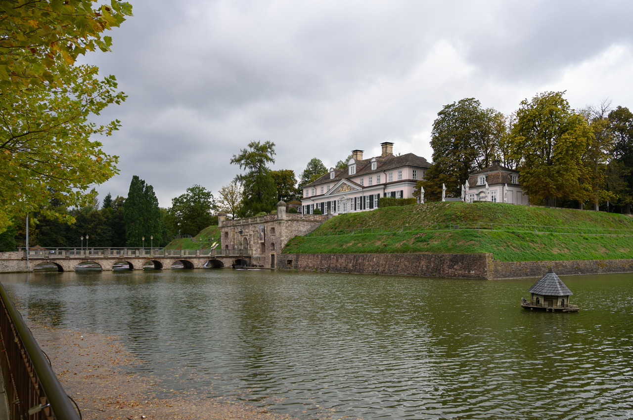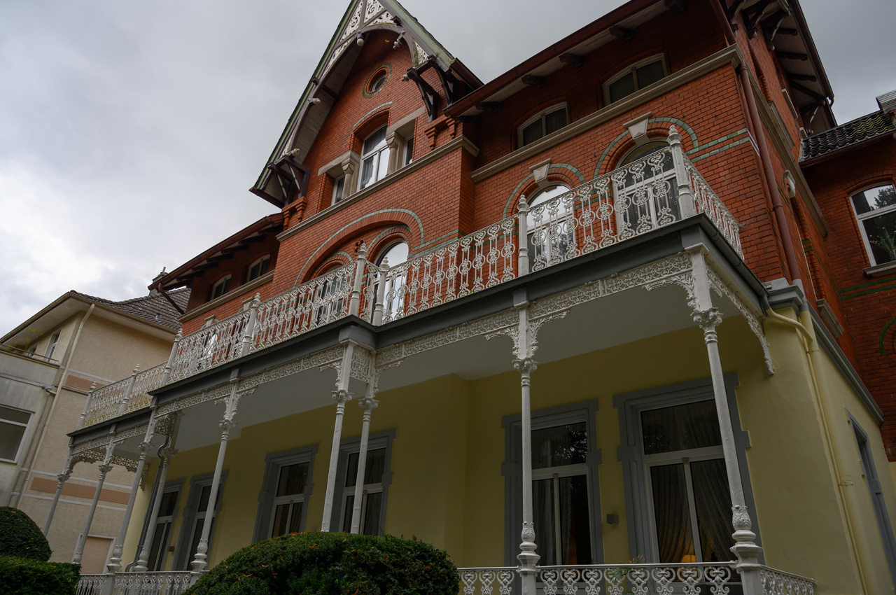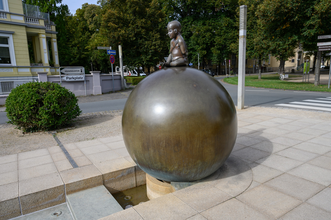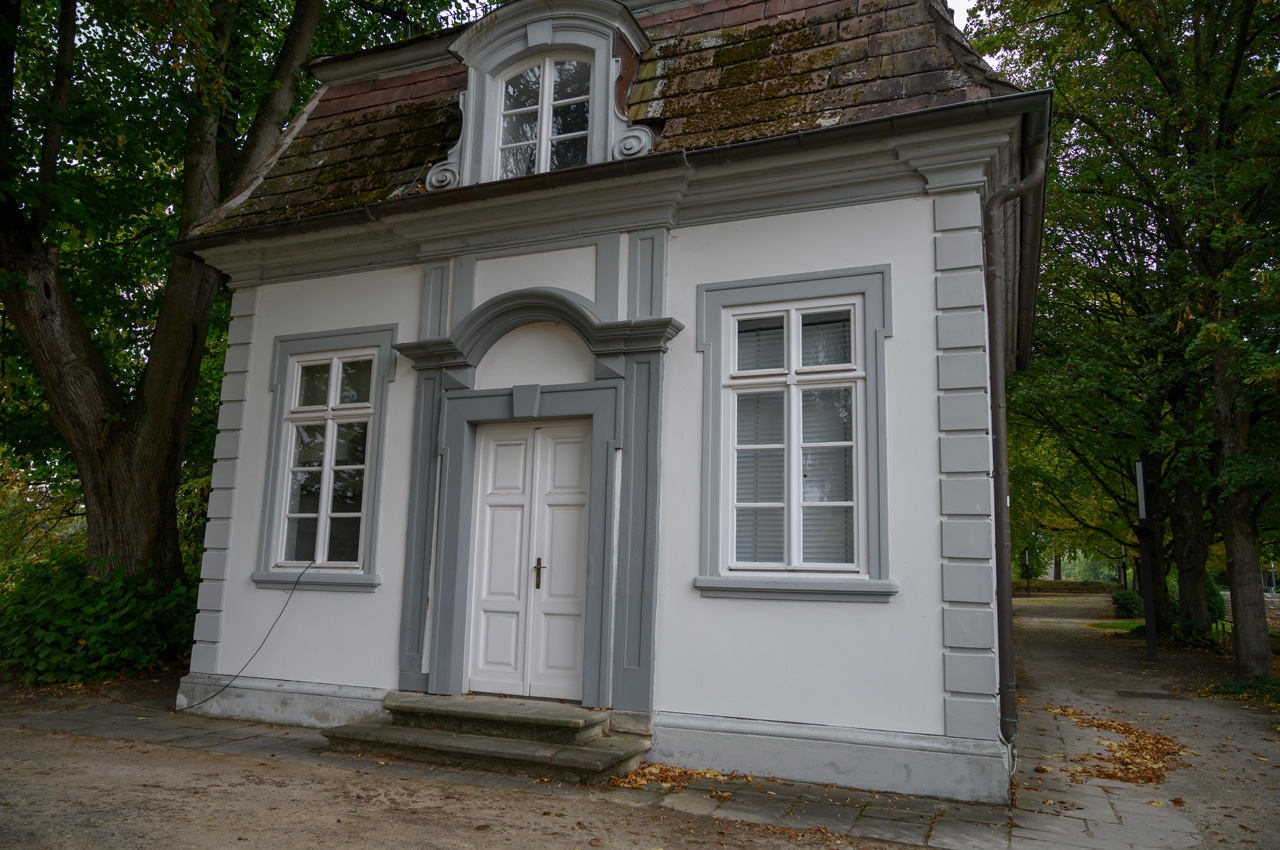 Gegen 13:00 Uhr habe ich mich dann nicht mehr von dem Wetterbericht und dem düsteren Himmel beirren lassen. Ich habe mich einfach auf den Weg gemacht, mit einem Regenschirm bewaffnet. Mein erstes Ziel war das Schloss. Auf dem Weg dahin bin ich an vielen Villen vorbeigekommen, die mal im wilhelminischen Stil erbaut wurden und die ich eher von der Ostseeküste her kenne. Das Problem, die Villen, alles ehemalige Pensionen mit hochtrabenden Namen, stehen leer. Sieht so aus, als ob sie dem Verfall preisgegeben sind. Dieser Anblick hat meinen Eindruck vom Verfall dieses Ortes nur noch verstärkt. Das Schloss oder besser die Festungsanlage ist von der Lage und dem Äußeren sehr eindrucksvoll, aber es gibt nicht mehr wirklich viel zu sehen, weil die Gebäude vordergründig für Veranstaltungen genutzt werden und das Museum hauptsächlich von wechselnden Ausstellungen gefüllt wird. In dem Festungsgraben der Anlage wimmelt es nur so von richtig dicken Karpfen. Man könnte fast vermuten, da sind ein paar zu viel drinnen. Das Wasser ist auch eine ziemlich trübe Suppe. Nach dem Verlassen der Festungsanlage, habe ich in einem großen Bogen den Kurpark umrundet durch das nördliche Parkgelände der großen Reha-Kliniken. Hier sieht es schon alles etwas lebendiger aus, obwohl auch hier eine Klinikruine vor sich hin rottet. Am Brunnenplatz in der Wandelhalle, hatte ich gestern leckere Torten in dem Cafe gesehen. Da habe ich drei Stück gekauft, für unseren Nachmittagskaffee. Als ich die Wandelhalle verlassen habe, fing es ziemlich kräftig an zu regnen. Gut, dass ich den Schirm dabei hatte. Jedenfalls habe ich die Tortenstücke trocken und weitestgehend unbeschadet zum Womo gebracht. Hat sich gelohnt, denn die waren richtig lecker.