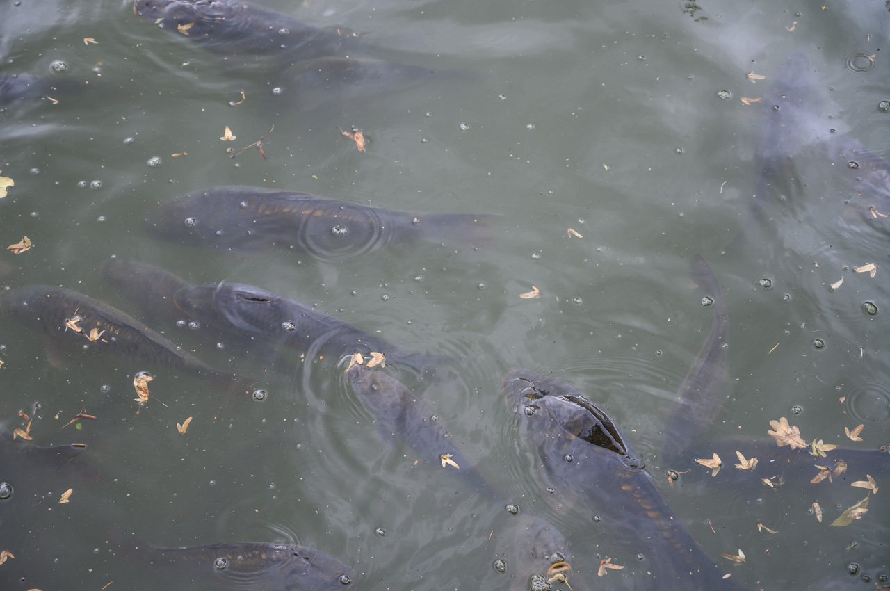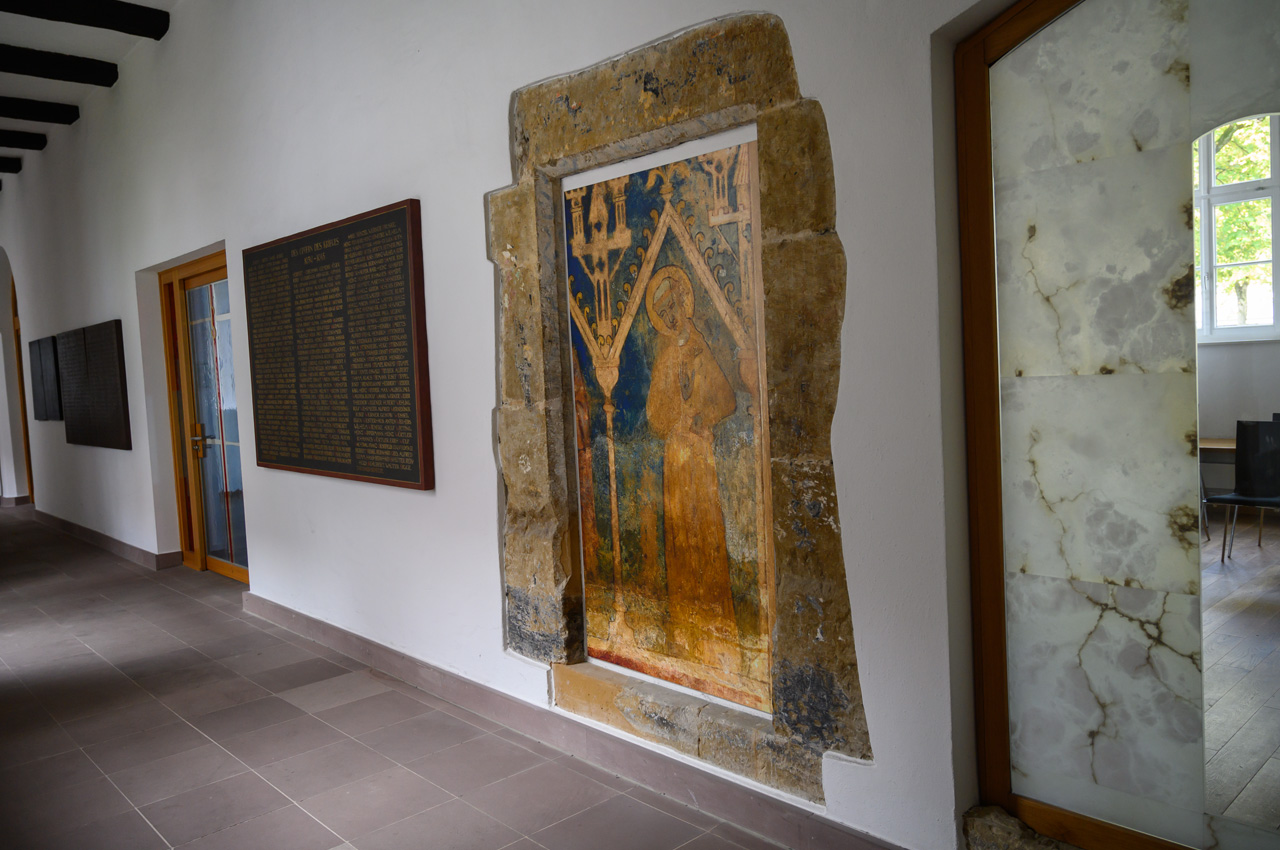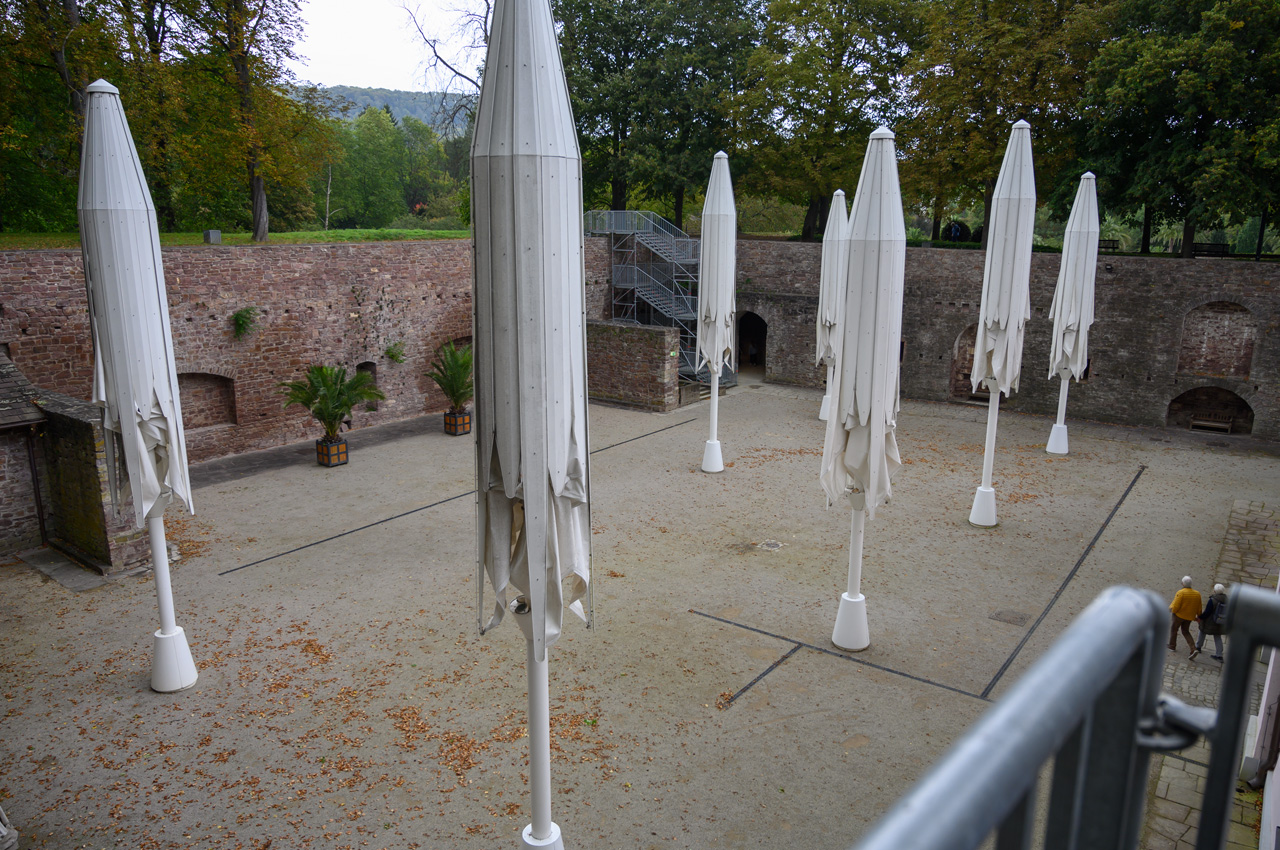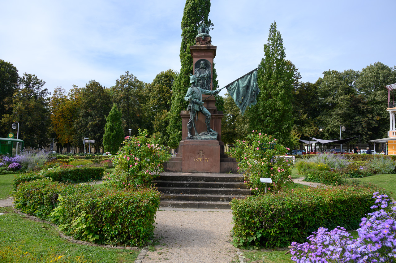Gegen 13:00 Uhr habe ich mich dann nicht mehr von dem Wetterbericht und dem düsteren Himmel beirren lassen. Ich habe mich einfach auf den Weg gemacht, mit einem Regenschirm bewaffnet. Mein erstes Ziel war das Schloss. Auf dem Weg dahin bin ich an vielen Villen vorbeigekommen, die mal im wilhelminischen Stil erbaut wurden und die ich eher von der Ostseeküste her kenne. Das Problem, die Villen, alles ehemalige Pensionen mit hochtrabenden Namen, stehen leer. Sieht so aus, als ob sie dem Verfall preisgegeben sind. Dieser Anblick hat meinen Eindruck vom Verfall dieses Ortes nur noch verstärkt. Das Schloss oder besser die Festungsanlage ist von der Lage und dem Äußeren sehr eindrucksvoll, aber es gibt nicht mehr wirklich viel zu sehen, weil die Gebäude vordergründig für Veranstaltungen genutzt werden und das Museum hauptsächlich von wechselnden Ausstellungen gefüllt wird. In dem Festungsgraben der Anlage wimmelt es nur so von richtig dicken Karpfen. Man könnte fast vermuten, da sind ein paar zu viel drinnen. Das Wasser ist auch eine ziemlich trübe Suppe. Nach dem Verlassen der Festungsanlage, habe ich in einem großen Bogen den Kurpark umrundet durch das nördliche Parkgelände der großen Reha-Kliniken. Hier sieht es schon alles etwas lebendiger aus, obwohl auch hier eine Klinikruine vor sich hin rottet. Am Brunnenplatz in der Wandelhalle, hatte ich gestern leckere Torten in dem Cafe gesehen. Da habe ich drei Stück gekauft, für unseren Nachmittagskaffee. Als ich die Wandelhalle verlassen habe, fing es ziemlich kräftig an zu regnen. Gut, dass ich den Schirm dabei hatte. Jedenfalls habe ich die Tortenstücke trocken und weitestgehend unbeschadet zum Womo gebracht. Hat sich gelohnt, denn die waren richtig lecker.