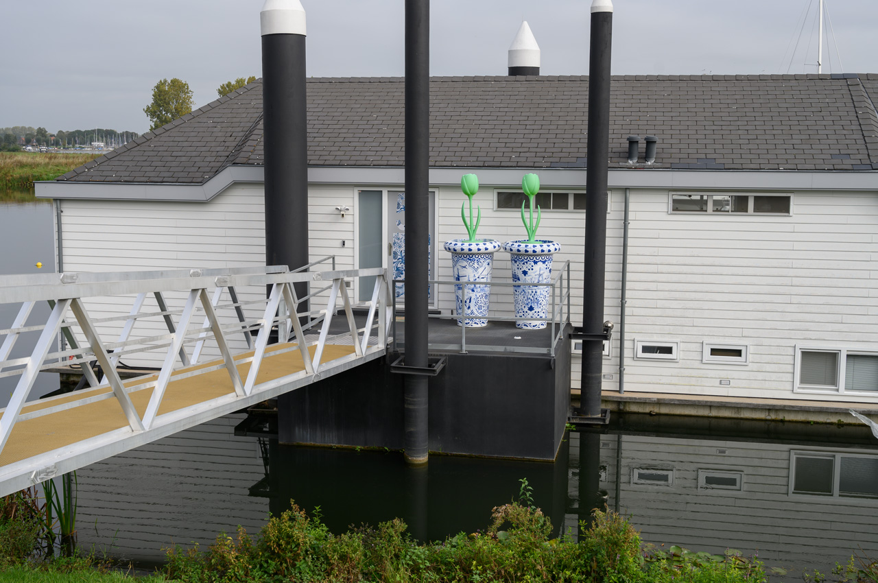 So gegen 12:00 Uhr habe ich den NIU aus der Garage geholt und wir sind zu einem Spaziergang in der Altstadt von Middelburg gestartet. Das Fahren mit dem NIU ist hier in den Niederlanden völlig anders als in Deutschland. Auf vielen Radwegen ist das Fahren mit einem Moped erlaubt, dafür gibt es Straßen, die für Fahrräder und Mopeds nicht erlaubt sind. Davon weiß aber unser Navi am NIU nichts. Außerdem muss man sich daran gewöhnen, dass Fahrräder fast ausnahmslos und Mopeds sehr häufig entgegen einer Einbahnstraße fahren dürfen. Das wird durch entsprechende Verkehrszeichen dann aber angezeigt. Wir haben unseren NIU an der Rückfront des Rathauses abgestellt und sind über den großen Markt in die Altstadt abgetaucht. Das Rathaus ist ein völlig mit Schnörkeln überladenes Gebäude, aber dadurch auch etwas besonderes. Mit Kirchenbesichtigung ist es hier in den Niederlanden nicht so ganz einfach, entweder kostet die Besichtigung Eintritt oder sie sind geschlossen. Offensichtlich gibt es hier nicht so viele ehrenamtliche Helfer. Der Bereich der ehemaligen Abtei ist sehr geschichtsträchtig, ringsherum Gebäude, die mehrere Jahrhunderte auf den Buckel haben. Das Mittelalter ist hier allgegenwärtig. Wir haben einen Schlächter am Damplein entdeckt mit typischen Zeelandspezialitäten. da man dort kosten konnte, habe ich schnell herausgefunden, dass es dort für mich leckere Wurstsorten gibt. Sie hatten aber auch riesige Knochen für Hunde. Da viel uns sofort Nala ein, die gestern ja Geburtstag hatte. Also haben wir Wurst und so einen Knochen gekauft. Nach einem Spaziergang durch die Fußgängerzone sind wir zurück zum NIU gelaufen. Susanne hatte heute ihre Kniebandage um und ist wieder tapfer gelaufen. Es scheint doch aufwärtszugehen. Mit dem NIU haben wir den Blumenladen gesucht und gefunden, bei dem ich gestern die lustigen Vogelhäuschen gesehen habe. Sie bestehen aus einer Holzplatte mit Satteldach. Eine Kaffeekanne ist mit dem Boden auf die Holzplatte als Vogelhaus montiert. Unten gibt es noch eine Fußplatte, auf der eine Kaffeetasse mit Untertasse montiert ist. Wir fanden das toll und haben für Gisela und Jochen als Mitbringsel eins gekauft. Nachdem wir das gute Stück zum Womo gebracht haben, sind wir nochmal gestartet, dieses Mal mit Ziel zum nächsten ALDI. Das löste sich aber als Irrfahrt auf, den ALDI gibt es offensichtlich nicht mehr. Also, auf zum nächsten. Wir wollten, nachdem wir gestern einen Eimer mit 50 Kaffeekapseln für 4,59€ gekauft hatten und die genauso gut waren wie die anderen im Karton, Nachschub holen. Erst erklärte uns eine ALDI-Mitarbeiterin, dass die Eimer alle sind. Sie hat dann aber nochmals bei den Restposten nachgesehen und welche entdeckt. Zur gleichen Zeit hatte Susanne die aber auch entdeckt. Wir haben alle genommen, die noch da waren. Das waren 9 solche Eimer. Erst als wir sie schon gekauft hatten, fingen wir an zu überlegen, wie wir die jetzt transportiert bekommen. Einen Eimer haben wir ausgeschüttet, die anderen haben wir in den Givi hineinbekommen. Nach dem Entladen im Womo bin ich nochmals alleine in die Altstadt gestartet und habe die beiden Mühlen noch gefilmt und die alte Schleuse.