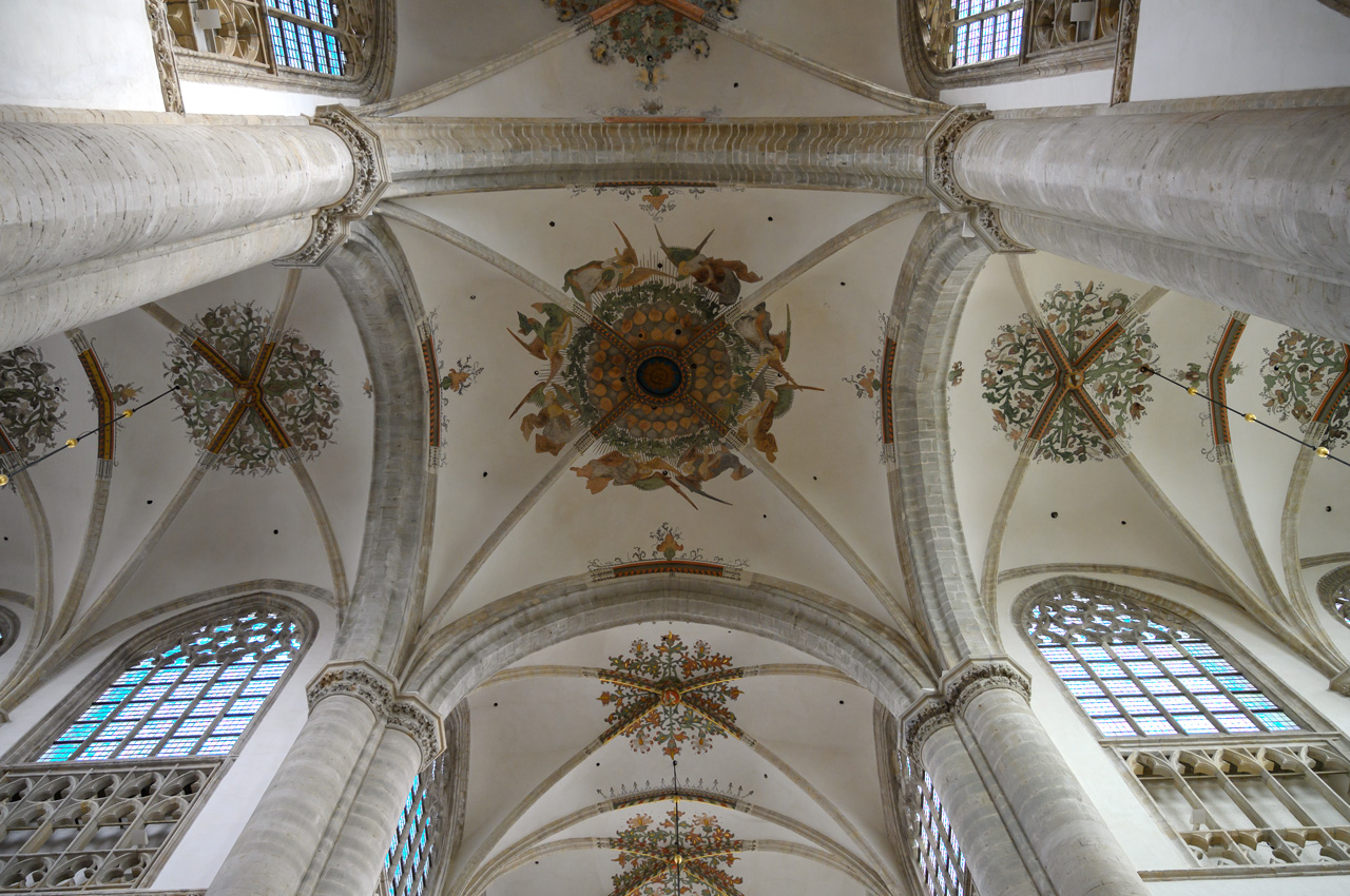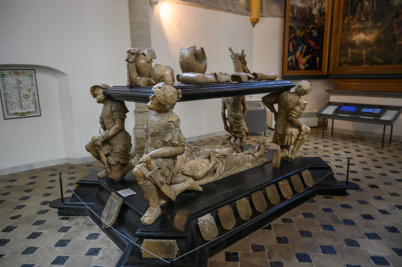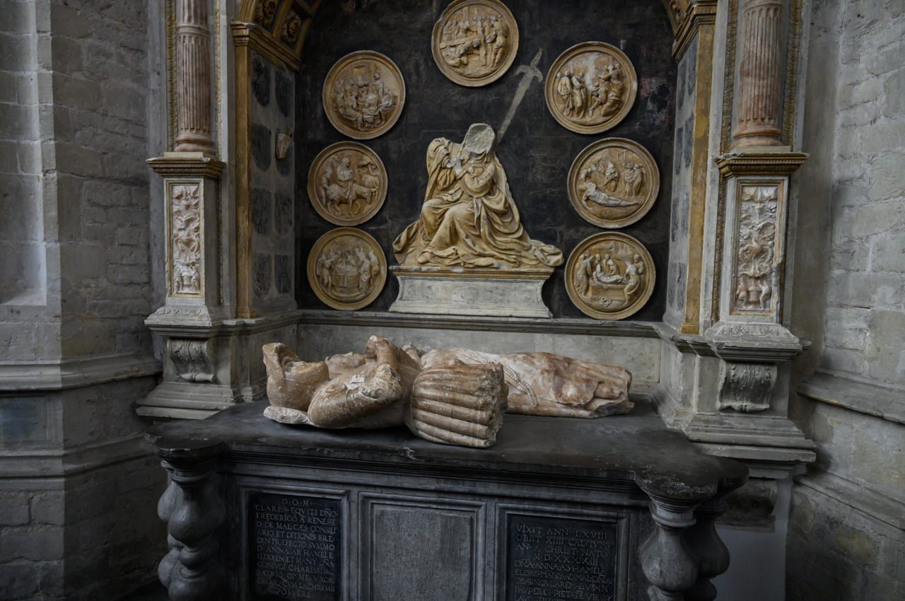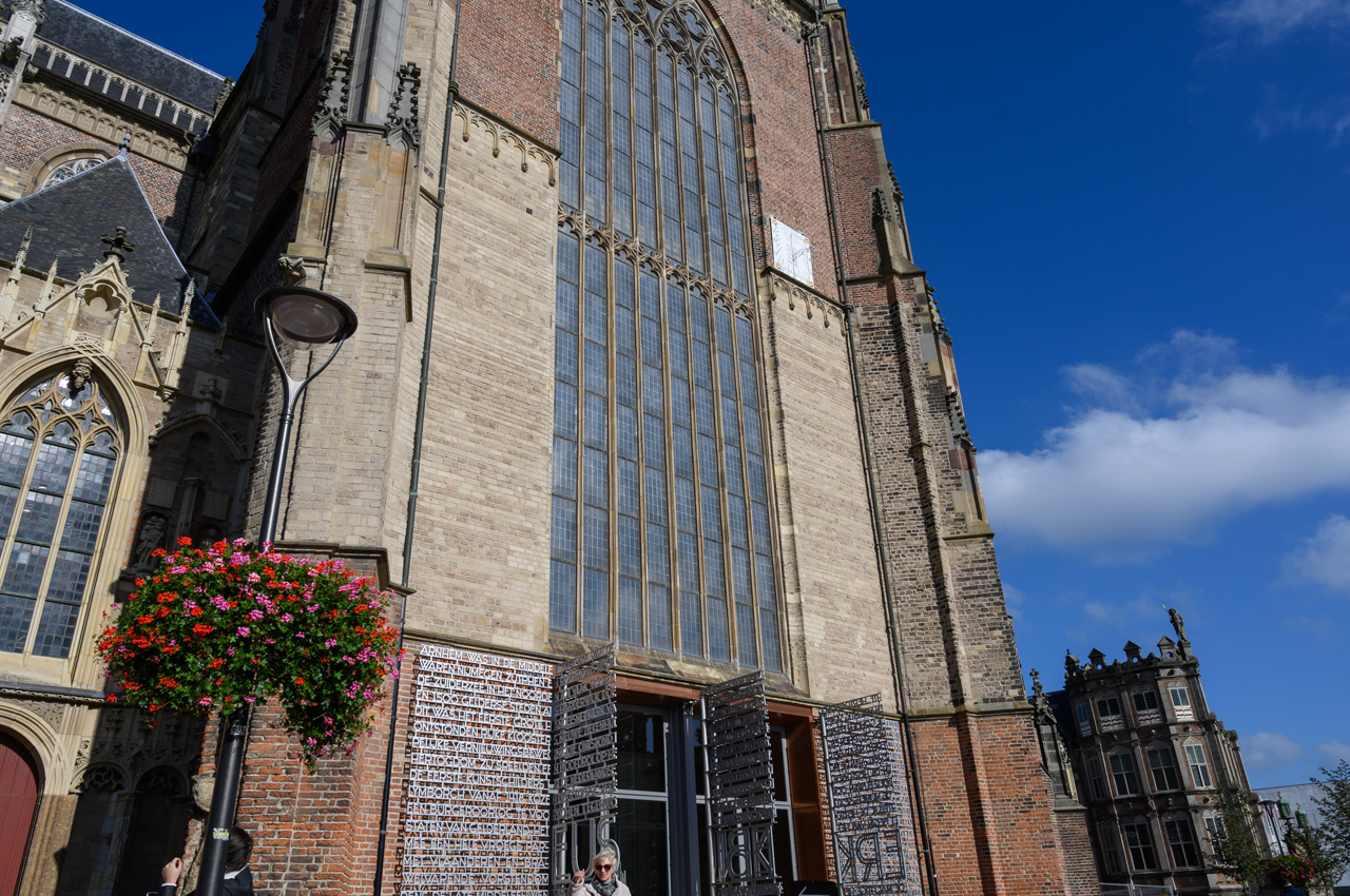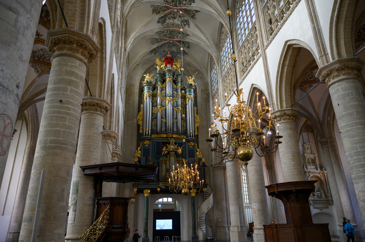 Gegen 12:00 Uhr sind wir auf unseren NIU gestiegen und Richtung Breda gestartet. Als Ziel habe ich Ginneken Stadshus eingegeben, in dem guten Glauben, dass das das Rathaus von Breda ist. Wir waren ziemlich enttäuscht, weil wir dort glaubten am Marktplatz zu sein und fanden das alles ziemlich mager für die gelobte Stadt Breda. Unser Navi hat uns ein Wasserschloss angeboten. Da ich nichts besseres wusste, habe ich das gewählt. Wir landeten beim Franse Tuin - Landgoed Bouvigne. Das Schloss kann man nicht besichtigen, aber den schönen Garten kann man ansehen. Der Zugang ist über ein modernes Gebäude der Waterschap Brabantse Delta, eine Unternehmung, die für Schmutzwasserregenerierung in Brabant zuständig ist. Der Park war sehr schön, aber auch nicht unbedingt die Lösung für Susannes kaputten Fuß. Als wir wieder mit dem NIU weiter wollten, habe ich auf dem Navi das eigentliche Rathaus von Breda entdeckt. Jetzt erst habe ich realisiert, das wir bis jetzt gar nicht im Zentrum bzw. der Altstadt von Breda waren. Die liegt mehr als 2 km nördlich von dem Stadtteil Ginneken, wo wir uns herumgetrieben haben. Jetzt führte uns das Navi endlich zum großen Markt und der ist der Mittelpunkt der Altstadt von Breda. Dort haben wir unseren NIU stehen lassen und haben als erstes die Onze-Lieve-Vrouwekerk besichtigt. Dafür mussten wir 4,-€ Eintritt pro Person zahlen. Die Kirche wir dals Kirche nur noch im Chor betrieben, der Rest ist Ausstellungsraum. Die Kirche enthält viele Grabgelege unter anderem die der Grafen zu Nassau. Nach der Kirchenbesichtigung haben wir noch eine Runde um den Kirchplatz und den Marktplatz gedreht. In der Kirche hatten wir erfahren, dass Breda keine Touristeninfo mehr hat. Einen Stadtplan haben wir in der Kirche erhalten. Susanne hat wieder tapfer durchgehalten.