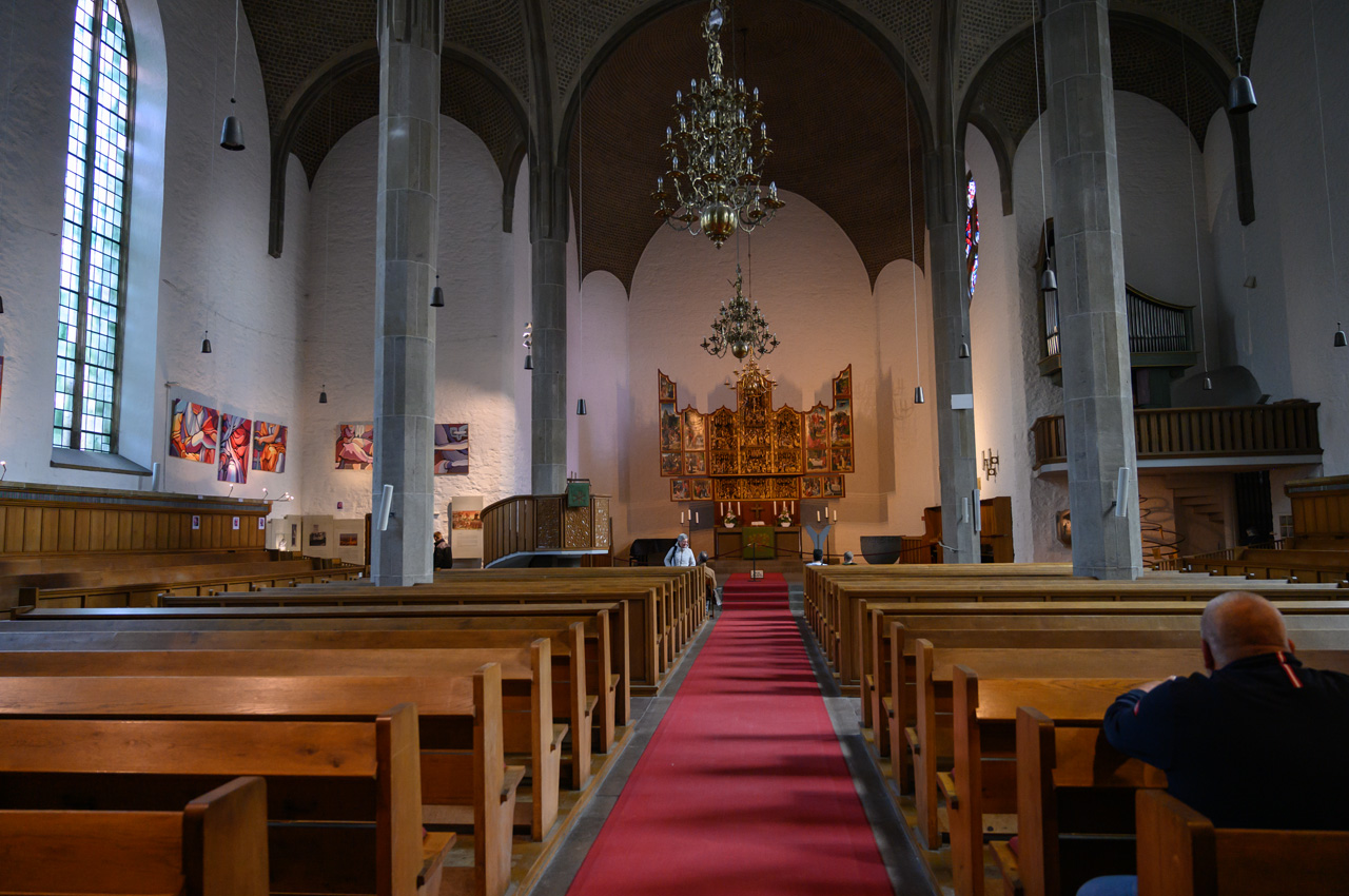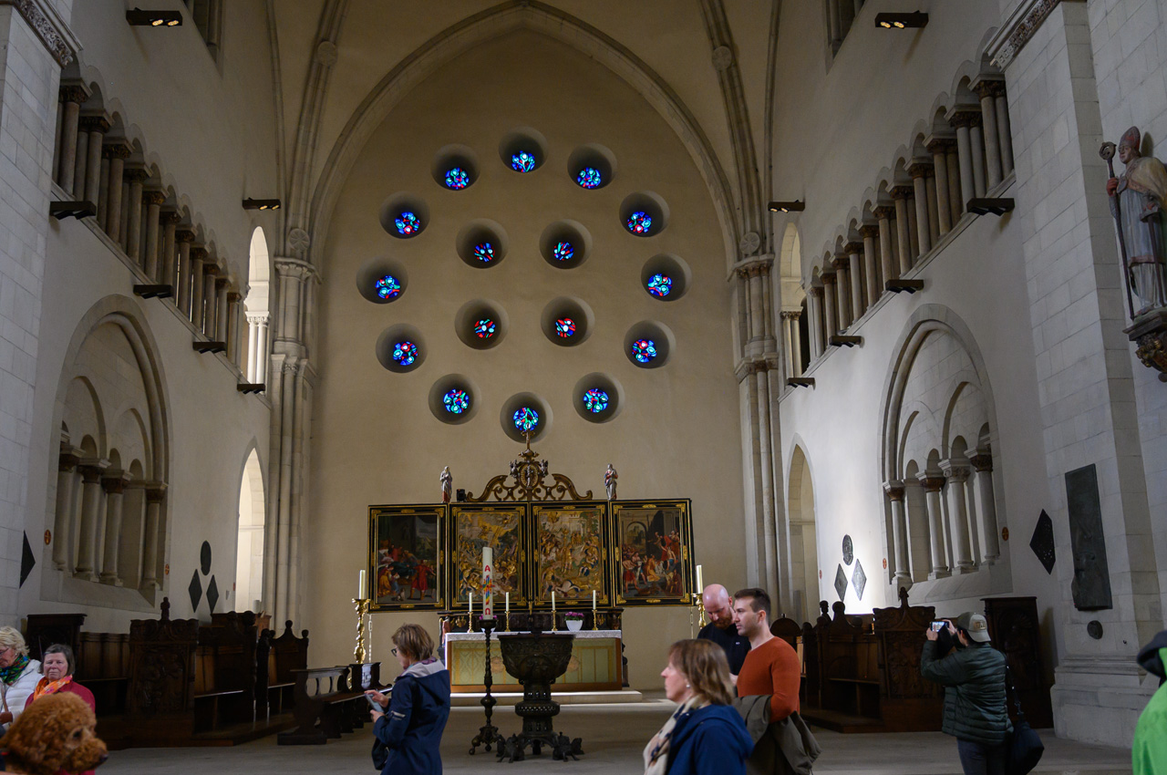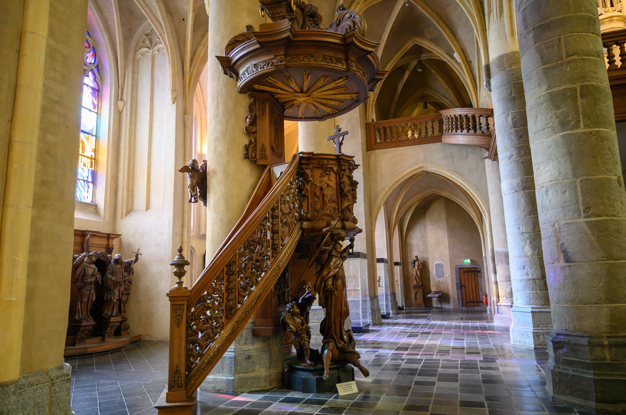 Wir sind mit dem NIU in das Altstadtzentrum von Roermond gefahren und haben unseren NIU bei der Kathedrale von Roermond abgestellt. Die Kirche haben wir uns gemeinsam nur von außen angesehen, da sie erst um 14:00 Uhr für Besuche öffnet. Ich bin etwas später alleine nochmal hier gewesen. Eine sehr interessante Kirche mit einem Architekturmix zwischen romanisch und gothisch. Beginnend mit dem Marktplatz und dem imposanten Rathaus, sind wir im Wesentlichen der Monumentenroute gefolgt. Susanne war ausgesprochen Lauflustig und bis auf wenige Abkürzungen haben wir tatsächlich die gesamte Route mit fast 3 km Länge geschafft. Am Marktplatz angekommen, hat Susanne eine kleine Pause eingelegt. Ich bin noch mals zurück zur Münsterkirche gelaufen, weil bei unserem Rundgang die Kirche noch nicht geöffnet hatte. Diese Kirche ist sehr sehenswert, ist sie doch vordergündig noch im romanischen Stil erbaut. Im Inneren gibt es aber auch gothische Züge und reichlich historische Ausstattung. Zurück am Marktplatz bin ich dann zusammen mit Susanne in die Kathedrale gegangen, auch diese Kirche ist sehr sehenswert. Es ist eine Basilika mit einem Querschiff und mehreren großen Altären. Die Stadt selbst ist genau unsere Kragenweite mit den vielen historischen Gebäuden mit dem typischen niederländischen Baustil des ausgehenden Mittelalters.