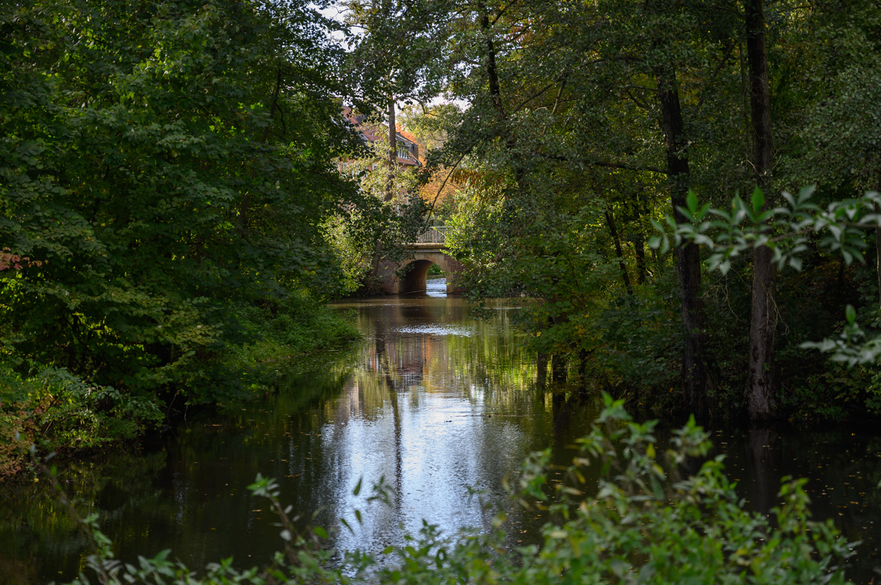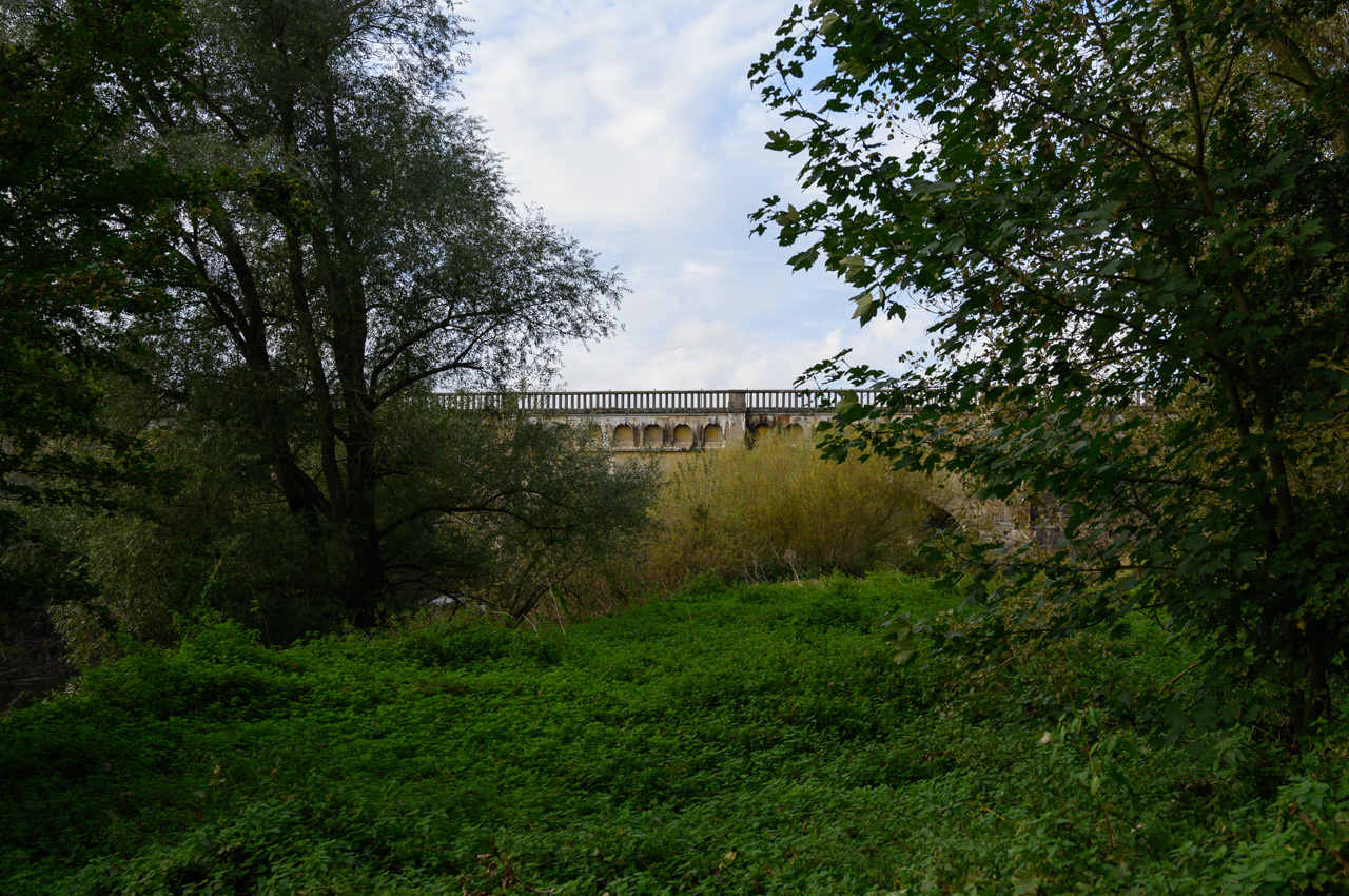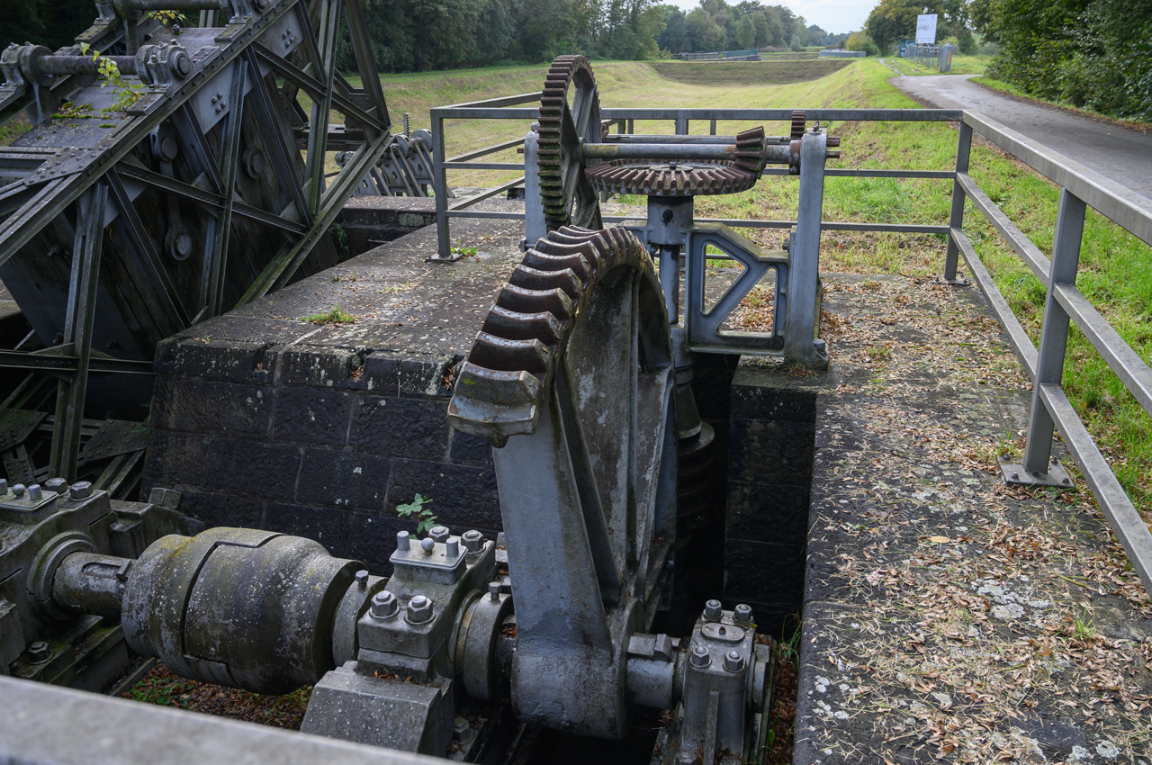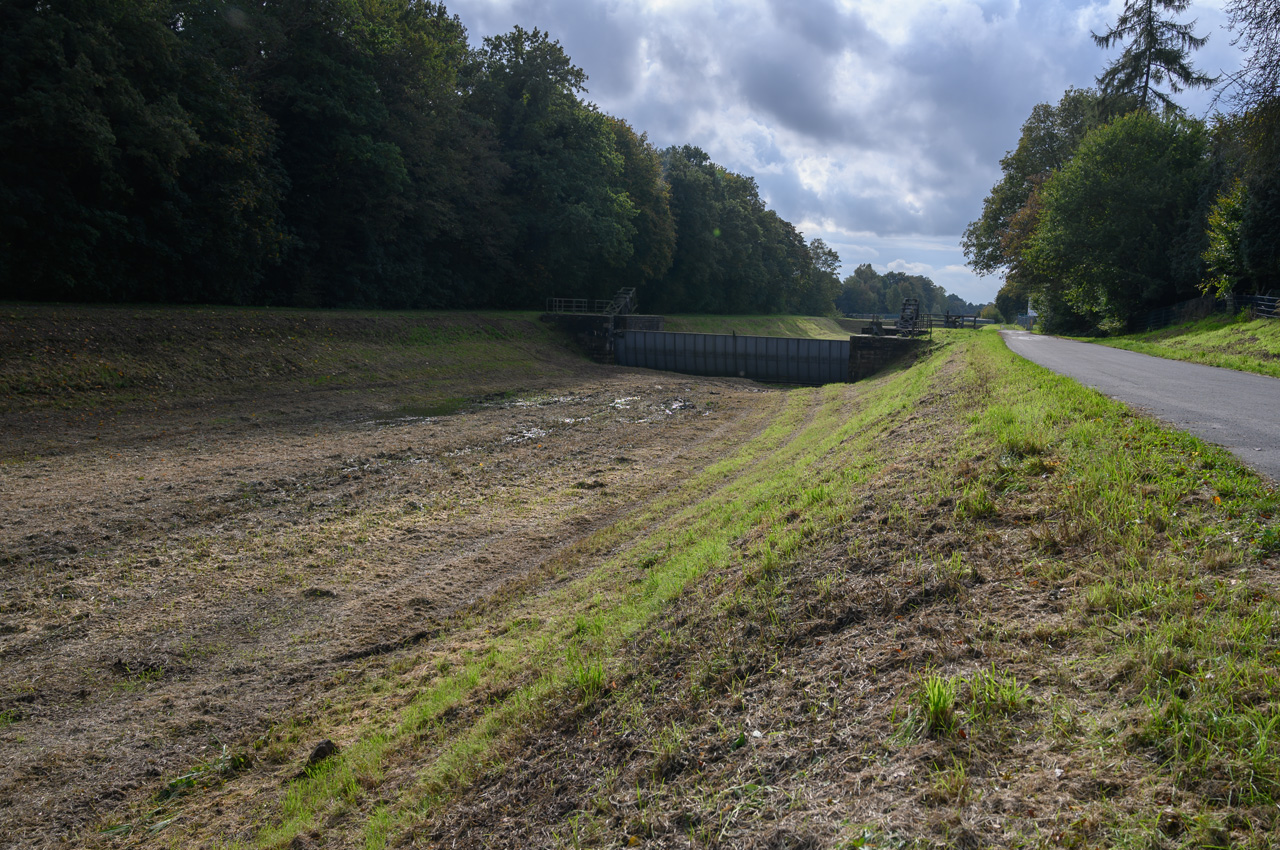 Ich habe am Nachmittag noch einen Spaziergang gemacht zu dem großen Wasserbauprojekt, was in der Nähe des Stellplatzes sich gerade abspielt. Der Dortmund-Ems-Kanal überquert hier in ca. 15 Meter Höhe die Ems in einer Trogbrücke. Die erste Fahrt ist schon seit 1936 außer Betrieb. Ein Teil davon ist der heutige Yachthafen. Für moderne Großraumbinnenschiffe ist aber jetzt auch die 1936 in Betrieb gegangene neue Trogbrücke zu klein. Bis 2030 soll nun eine neue Kanalbrücke mit zwei Trögen erbaut werden. Dazu hat man in diesem Jahr eine Umfahrung in Betrieb genommen. Ich war natürlich neugierig wie das alles vor Ort aussieht. Das Fotografieren der ersten Trogbrücke, eine absolute Top Ingenieursleistung, war gar nicht so einfach. Ich musste einen steilen Hang runter zur Ems klettern. Die historische Brücke ist eine Viaduktbauweise und steht unter Denkmalschutz. Leider hat sie die Natur schon ganz schön zurück erobert. Sträucher und Bäume verdecken die Sicht.